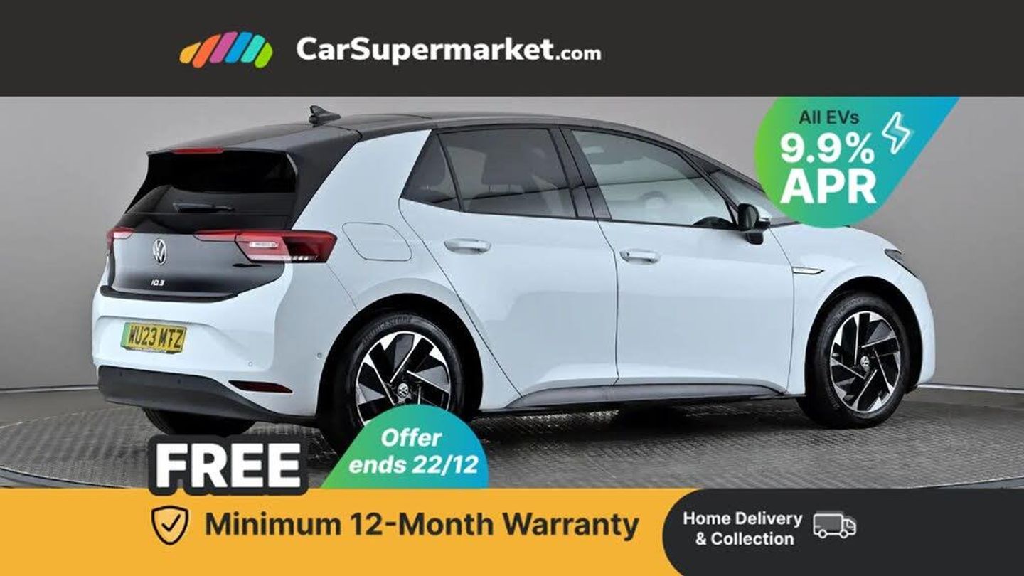 Adaptive Cruise Control, Blind Spot Monitoring, Bluetooth, Parking Sensors, Wireless Phone Charging, Digital Radio;This 2023 Volkswagen ID.3 Pro Performance Family boasts exceptionally low mileage for its age, having covered just 13,884 miles. This electric hatchback, presented in the Family trim, features a 62 kWh battery offering a maximum range of 257 miles when new. Its MOT is valid until March 2026, and it benefits from a full dealership service history, with the last service completed on 2025-04-14 at 11,686 miles.