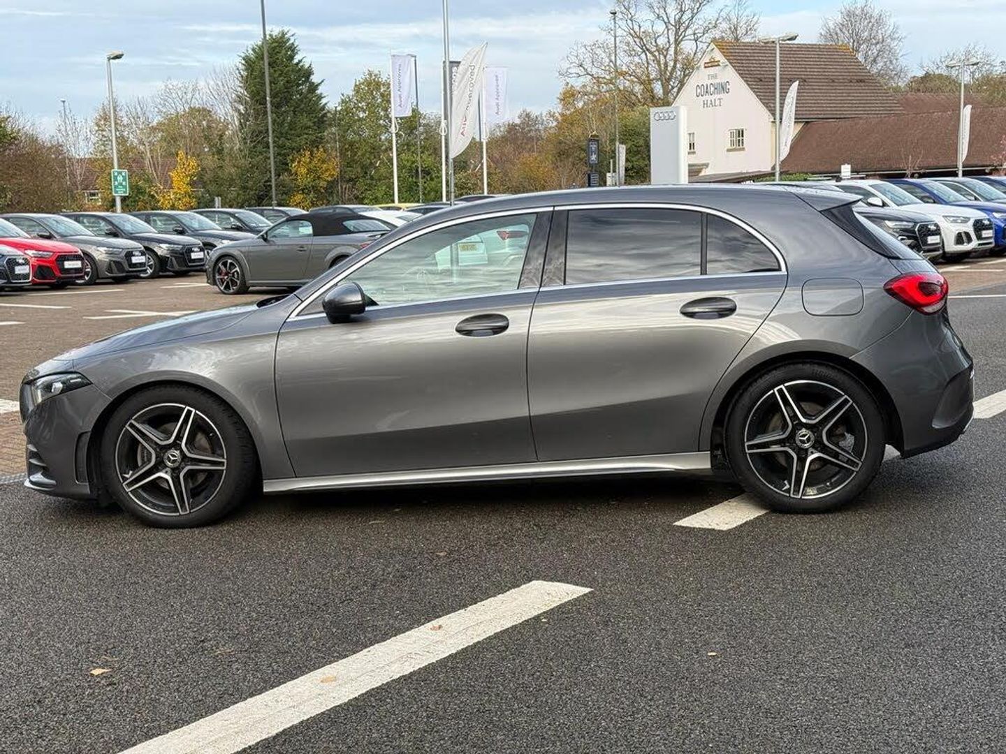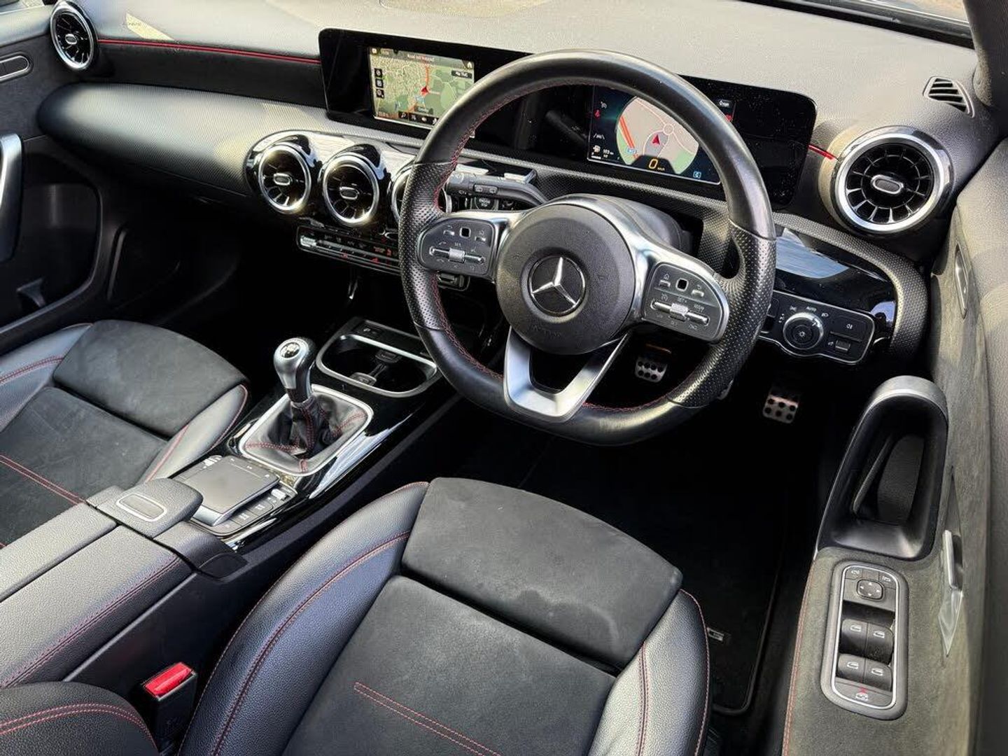 TWO OWNERS FROM NEW, SATELLITE NAVIGATION, DUAL ZONE CLIMATE CONTROL, REAR VIEW CAMERA, DIGITAL INSTRUMENT CLUSTER, CRUISE CONTROL, SPEED LIMITER, DAB / FM RADIO, BLUETOOTH CONNECTIVITY, VOICE CONTROL, USB PORTS, LEATHER MULTI-FUNCTION STEERING WHEEL, TOUCHPAD CONTROLLER, FINISHED IN MOUNTAIN GREY METALLIC, BLACK DINAMICA / ARTICO LEATHER WITH RED CONTRAST STITCHED UPHOLSTERY, HEATED FRONT SEATS, 16 BLACK DIAMOND CUT AMG START SPOKE ALLOY WHEELS,ELECTRONIC HANDBRAKE, AUTOMATIC LIGHTS, ELECTRICALLY ADJUSTABLE EXTERIOR MIRRORS40:20:40 SPLIT REAR SEAT, ISOFIX, 2 KEYS, MANUAL GEARBOX, PETROL, EURO 6, ULEZ COMPLIANT *** You can rest assured with Harwoods Assured*** - This car comes with a minimum of 6 months warranty, a thorough history check, comprehensive service history, and in addition to that, the vehicle has been prepared by our manufacturer trained technicians... Crawley Audi are delighted to offer our Mercedes A200 AMG Line, we are proud to be part of the Harwoods Group, a family run business established in 1931. with four approved Audi retailers within our group, we have access to over 400 vehicles. If this isn't the right car for you our Group stock has spec to include Sunroof, Leather, Heated Seats, Apple Car Play, Heated Steering Wheel, Reverse Camera, Rear Entertainment, Towbar, 360-degree camera, Comfort & Sound Pack, Tech Pack, Panoramic Sun Roof, Tow Bar, Black Pack, Air Suspension, Apple CarPlay, Adaptive Cruise, Massage Seats, Refrigerator, AWD, Technology Pack, Head up Display, Vorsprung, Technik, Black Edition, S-Line, S Line, Edition 1, TFSI, Quattro, Sportback, LWB. Other colour options including Black, Blue, Green, Silver, White, Red, Grey, Yellow, Orange-SAT NAV, REAR CAMERA