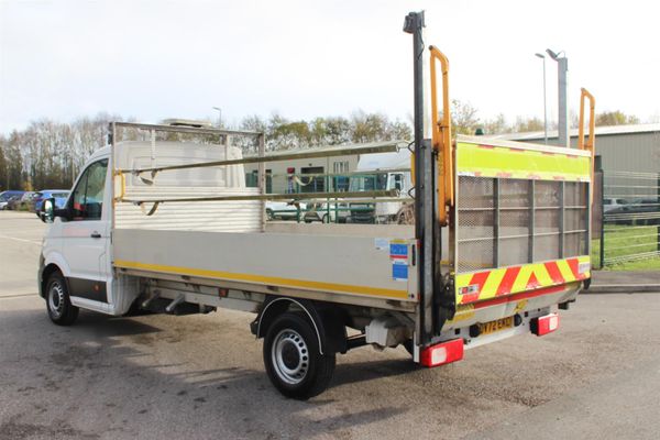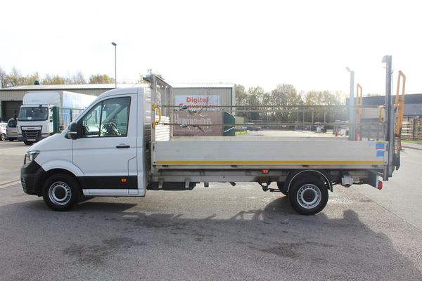 This is a 2022 72 Registration Volkswagen Crafter LWB 140 Startline Dropside with Tail Lift. The Crafter has a 2.0 litre diesel engine with a 6 speed manual gearbox. It has only covered 74,000 miles and has full service history. 1 company owner from new. The Crafter is finished in white and the bodywork is all in superb condition. It has drop sides and Tail Lift. The cab has 3 seats with dark grey cloth, all in great condition. Just wear on the edge of the driver's seats. It has Electric Windows, Air Conditioning, Radio with USB, and Bluetooth hands free. NOTE: Price + VAT The van drives superb. MOT until November 2026. It comes with, User Guide, V5, Service Printout and 2 keys and a 3 month warranty. See all our contact details and more vehicles on our website www.melmerbytradecars.co.uk.