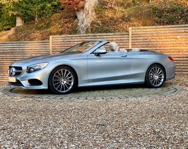 This 2017 Mercedes Benz S Class S500 V8 AMG Line Cabriolet presented in metallic Diamond with Designo premium Crystal Grey Nappa leather boasts an impeccable full service history and a huge factory options list worth £20K, with its last service completed on 22nd May 2025 at 25,108 miles, ensuring exceptional provenance. This Euro 6 compliant, 4.7 litre petrol model presents with a low mileage of only 30,000 miles for its age. Impeccable condition with an extensive service history, MOT valid until November 2026.The AMG trim with 20” Turbine alloys further enhances its already sophisticated presence, and it comes equipped with Comfort heating package, Dynamic/Heated/Vented/Massage climate seats, Special order soft top in dark Navy, Heated Scarf, Winter Warmth Package, Heated Steering Wheel, Burmester surround sound system and 360 surround view cameras for added comfort.Experience the pinnacle of automotive luxury with features designed to impress. The cabin is transformed by the Burmester High End 3D Surround Sound System, delivering an unparalleled audio experience. Illumination is provided by LED Intelligent Light System headlamps, elegantly accented with Swarovski Crystals. Inside, the designo Exclusive Nappa Leather in Crystal grey, complemented by further Nappa Leather detailing, creates a truly bespoke environment. The factory options list is as follows; 20 inch Turbine alloys, Front and rear electronically deployable wind deflectors, Winter Warmth Package, Heated scarf, Heated steering wheel, Special order soft top in dark Navy, Front heated padding, Bi Xenon LED Headlamps, Privacy glass, Electric folding heated side mirrors, Soft close doors, Electric boot, Keyless go, Auto dimming interior/exterior mirrors, AMG extended wheel arches, Memory Package, Front and rear comfort seat heaters, Light Package, Air quality package, DVD Player, Designo Veneer, AMG Styling Package, Ambience Illumination, COMAND APS, Dual Cup Holder, Dynamic/Massage Seat Package, DAB Radio, AMG Sport Package, Illuminated door sills, Active Park Assist, Climate Seats.