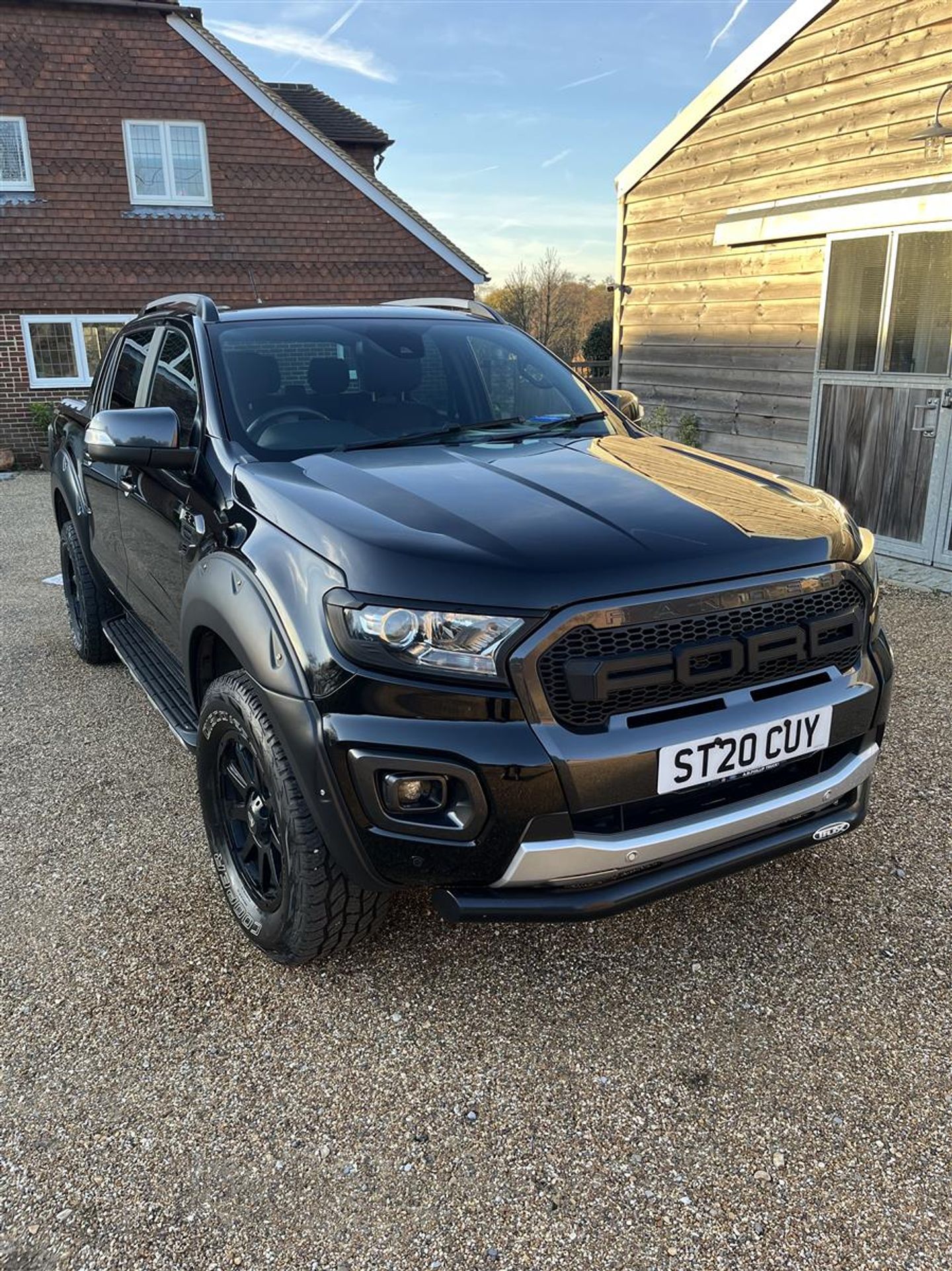The exterior looks tougher and sharper than standard, with black alloys, wide wheel arches, light guards, and the bold FORD grille giving it real presence on the road.