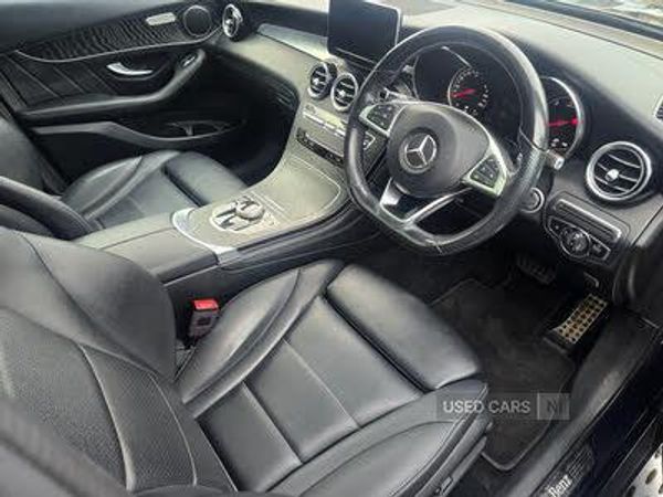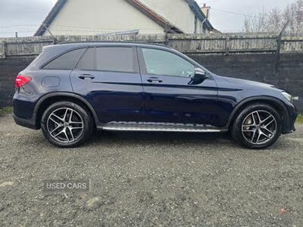 Active park assist with parktronic system, Attention assist, Bluetooth interface for hands free telephone, Collision prevention assist plus, Crosswind Assist, DYNAMIC SELECT with a choice of driving modes (ECO, Comfort, Sport, Sport+ and Individual), Garmin Map Pilot navigation system with SD card, touchpad and voice control, Instrument cluster with 5.5-inch TFT multi-function display, Mercedes connect me with remote online services, Multi function trip computer, Outside temperature gauge, Power opening/closing tailgate, Remote boot release, Service indicator (ASSYST), 5 speakers, DAB Digital radio, Frontbass loudspeakers, High resolution 7 inch multimedia colour display, Mercedes Audio 20 radio/single CD + telephone keypad, USB connection, Adaptive brake lights, Aerodynamic rear spoiler, AMG bodystyling front and rear aprons, side skirts, Automatic headlights, Body coloured bumpers, Electric panoramic sunroof with sunblind, Electric windows one touch open/close, Electrically adjustable and heated door mirrors, Exhaust tailpipe finisher, Front and rear apron in black, High gloss black beltline and window surround, High gloss black door mirrors, LED daytime running lights, LED rear lamps, Matt black roof rails, Privacy glass (to rear of B post), Radiator grille with 2 louvres in high gloss black, Rain sensor windscreen wipers, Range adjustable headlights, Rear wiper, Tinted glass all round, 2 cupholders in front centre console, 2 way rear head restraints, 3 spoke flat bottom multi-function AMG steering wheel in black nappa leather with chrome inserts, 4 way adjustable front head restraints, 4 way electric lumbar support for driver and front passenger, 40:20:40 split folding rear seats, Ambient lighting, AMG floor mats, AMG sports seats, Auto Mercedes-Benz child seat recognition sensor, Automatic climate control, Black roof lining, Dividing net - rear, Easy-pack load compartment cover, Electric front seat height adjustment, Front armrest with storage box, Front door sills with Mercedes benz lettering, Gearshift paddles, Heated front seats, Height/reach adjustable steering column, Lockable/illuminated glovebox, Rear top tether child seat ISOFIX attachment, Sports pedals with stainless steel surfaces and rubber studs, Sunvisors with illuminated vanity mirrors, Interior lighting pack - GLC, Mirror pack - GLC, Storage pack - GLC, 3 rear 3 point seatbelts, ABS with Brake Assist, Active bonnet, Adaptive brake system, ASR, Brake calipers with Mercedes-Benz lettering + perforated brake discs, Child proof door locks, Drivers knee airbag, Dual stage Driver/Passenger Airbags, Electronic parking brake, ESP curve dynamic assist, Front and rear seatbelt reminder, Front passenger seat occupancy sensor, Front side airbags, Hill hold function, Tyre pressure monitoring system, Warning triangle and first aid kit, Window airbags, Alarm system/interior protection/immobiliser, Automatic door locking, Keyless Start, Remote central locking, Diesel particulate filter
