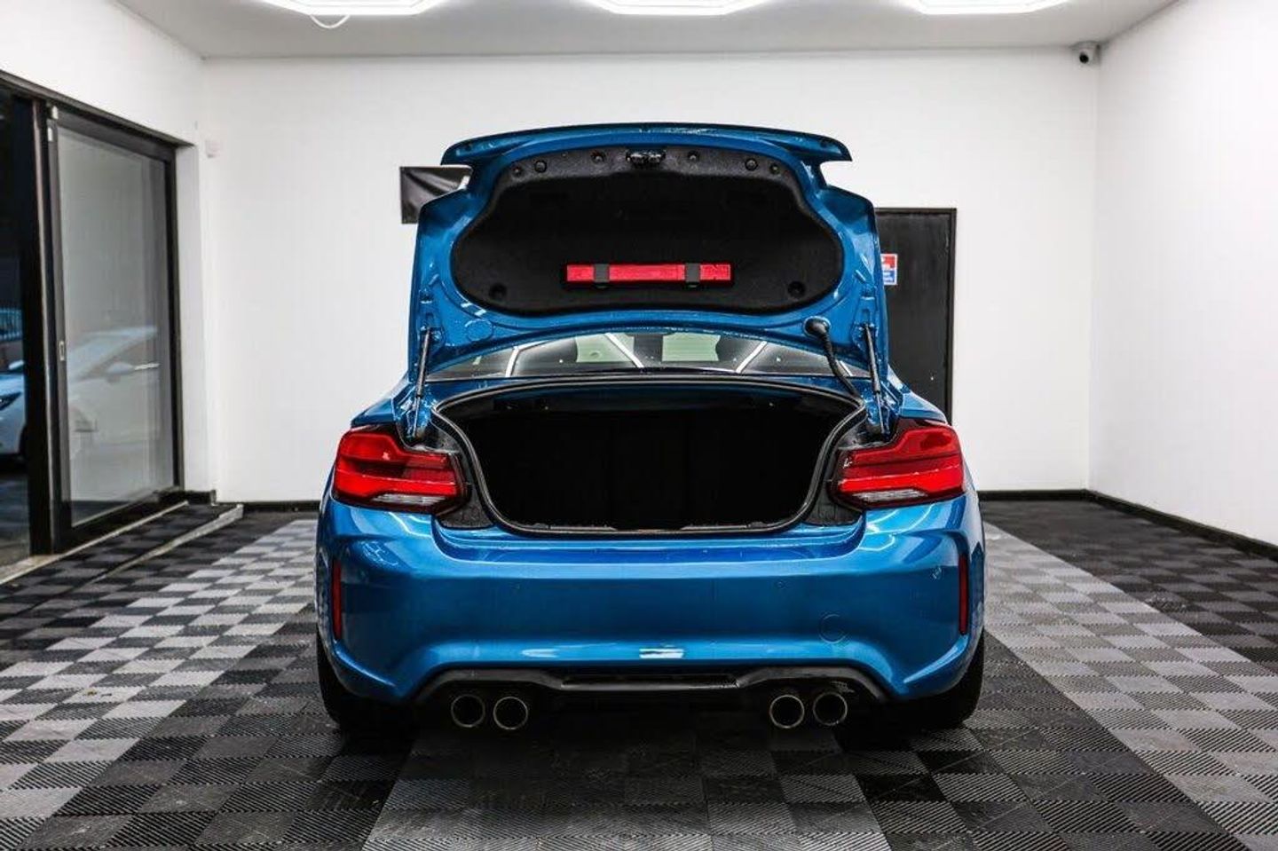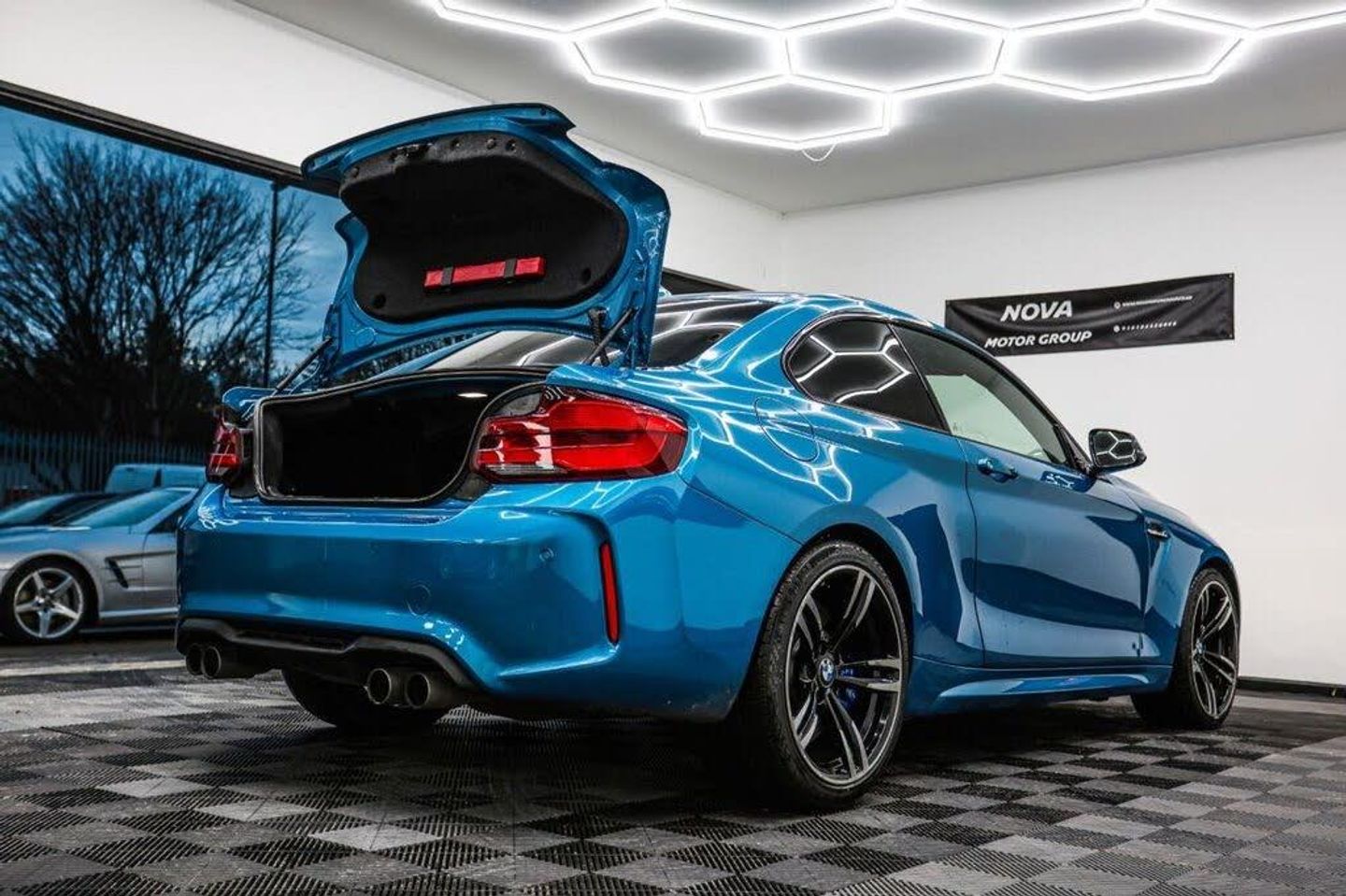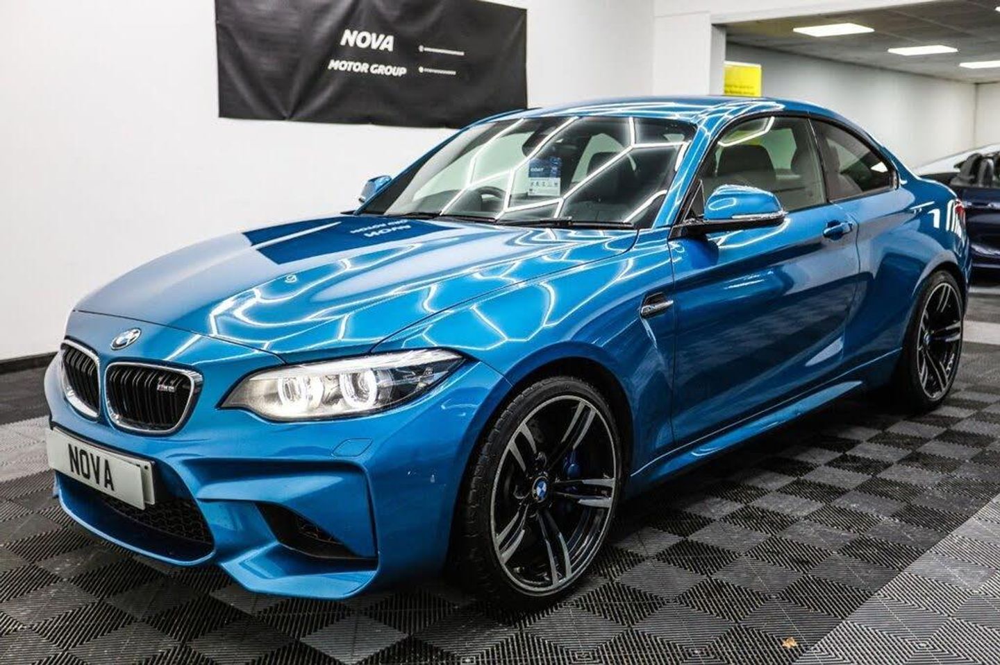 12V Power Socket - Centre Console, 12V Power Socket - Passenger Footwell, 19in Alloy Wheels - M Double Spoke Style - 437M with Mixed Tyres - Jet Black Forged and Burnished, Active M Differential, Air Conditioning - Automatic with Two-Zone Control, Airbags, Airblades - Ferric Grey, Alarm System - Thatcham 1 with Remote Control and Engine Immobiliser, Ambient Lighting - Switchable, Armrest - Front with Sliding Adjustment, Automatically Dimming Rear View Mirror, BMW ConnectedDrive Online Services, BMW ConnectedDrive Services, BMW Emergency Call, BMW Mobility System, BMW Professional Radio with Single CD Player - with MP3 Playback Compatibility, BMW TeleServices, Battery Age Recognition Function, Battery Safety Cut Off, Bluetooth Hands-Free Facility with USB Audio Interface and Audio Streaming, Brake Pad Wear Indicator, Bumper System - Front and Rear, Central Locking Switch - Doors - Fuel Filler Cap - Luggage Compartment, Check Control Warning System for Monitoring of Lights and Door-Luggage Compartment Open Warning, Child Seat ISOFIX Attachment for the Two Outer Rear Seats, Coat Hooks - Integrated into Rear of B Pillar, Condition Based Service, Crash Sensor, Cruise Control with Brake Function, Cup Holders x2 with Sliding Cover and Inlay Mat, DAB Digital Radio, DSC - Dynamic Stability Control Plus, Daytime Driving Lights, Direction Indicator - Side Repeaters - Integrated in Exterior Mirrors, Direction Indicator Lights - Clear Lenses, Door Sill Finishers - M2 Designation, Drive Performance Control - ECO PRO - Comfort - Sport - Sport Plus, Dynamic Brake Lights, ECO PRO Mode, EPS - Electric Power Steering, Electric Windows - Front and Rear with Open-Close Fingertip Control - Anti-Trap Facility and Comfort Closing Function, Engine Cover with BMW Roundel and TwinPower Turbo Designation, Exhaust Tailpipe - Twin Dual - Chrome, Extended Lighting, Extended Storage, Exterior Mirrors Electrically Adjustable, Exterior Parts in Body Colour, Exterior Trim - High-Gloss Shadowline, First Aid Kit and Warning Triangle, Floor Mats - Velour, Full Black Panel Display, Gearshift Lever with M Designation - Short-Shift, Glove Box, Handbrake Lever and Gear Lever in Leather, Headlining - Anthracite, Heat Protection Glazing with Green Tint, High Level Third Brake Light, Instrument Cluster, Interior Comfort Package, Interior Lighting - Front Centre Over Interior Mirror and Rear Centre, Interior Trim - Carbon Fibre with Black High Gloss Finishers, Kidney Grille - Chrome with Double Black Vertical Slats - M2 Badging, LED Headlights, LED Rear Light Bars, Lashing Eyes in Luggage Compartment at Sill x2, Lights-On Warning by Audio Warning Signal When Ignition is Switched Off, Locking Wheel Bolts, Luggage Compartment - Light, Luggage Compartment Access via BMW Roundel, M DCT Gearbox, M Dynamic Mode, M Rear Spoiler, M Side Strakes, M Specific Braking System, M Specific Sport Suspension - Unique to M2, M2 Specific Aerodynamic Bodystyling with Unique Front Bumper-Rear Bumper and Side Skirts, Media Package - BMW Professional, Model Designation, Multifunction Controls for Steering Wheel, OBC - On-Board Computer, Oil Sensor For Level and Grade - Warning by Check Control System, Oil Temperature Display via On-Board Computer Shown in Central Screen in Instrument Cluster, Optimum Shift Indicator, PDC - Park Distance Control - Rear, Personal Profile - Extended, Rain Sensor with Automatic Headlight Activation, Real Time Traffic Information, Rear Fog Light, Rear Seat Headrests - Outer Headrests Folding, Rear Window Aerial, Remote Control with Integrated Key with Insert in Blue, Remote Services, Reversing Light in Rear Light Clusters, Seat Belt Security Check for Driver and Front Passenger, Seats - 60-40 Split Folding Rear, Shark Fin Aerial, Side Armrests - Front and Rear Integrated into Door Trim, Side Impact Protection, Sport Instrument Cluster - Differentiated Dial Design Featuring Finer Chrono-Scaling, Sport Seats - Front, Start-Stop Button with Comfort Go Keyless Engine Start and Auto Start-Stop Deactivation Button, Steering Wheel - M Leather Multi-Function Finished in Nappa Leather, Steering-Wheel Column Adjustment - Manual, Storage Compartment - Rear Centre Console and in Door Trim - Front, Sun Visors with Vanity Mirrors and Ticket Holder, TPMS - Tyre Pressure Monitoring System, Three-Point Seat Belts - All Seats, Twin Horns, Visible VIN, Welcome Lighting - LED, Dakota Leather - Black with Blue Contrast Stitching, Headlight Wash, Long Beach Blue, Loudspeaker System - Harman Kardon, Reversing Assist Camera, Seat Heating for Driver and Front Passenger, Speed Limit Info, Sun Protection Glazing, Through-Loading System
