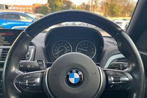 'Lights On' Reminder warning buzzer, BMW Teleservices, Brake force display, Engine start/stop button, Oil level indicator, On board computer, On board diagnostics, Outside temperature display, Service interval indicator, Speed limiter, Body colour bumpers, Body colour door handles, Body coloured door mirrors, Chrome exhaust tailpipe, Chrome kidney grille with black vertical slats, Electric front windows + one touch + anti-pinch, Electrically adjustable door mirrors, Follow me home headlights, Green tinted heat insulating glass, Heated door mirrors, Heated windscreen washer jets, M aerodynamic bodystyling, Rain sensor including auto headlights activation, Rear wash/wipe, Welcome lighting, 12V power socket in centre console, 12V power socket in passenger footwell, 2 grab handles, 60/40 split rear seats, Anthracite Velour floor mats, Door armrests, Door sill finishers with illuminated M designation, Folding rear seat head rests, Front folding/sliding centre armrest with storage, Front head restraints, Front sports seats with electric side bolster adjustment, Front/rear courtesy lights with soft on/off dimming, Glovebox, Individual anthracite headlining, Isofix rear child seat preparation, Leather gear knob and handbrake grip, Load restraint lashing eyes, M sports leather steering wheel, Multifunction steering wheel with audio controls, Reach + rake adjustable steering column, Storage compartments in doors, ABS/EBD, Automatic Stability Control (ASC), BMW emergency call, Child locks on rear doors, Cornering brake control (CBC), Crash sensor, Driver/Passenger airbags (Impact dependent), Drivers knee airbag, DSC+, Dynamic brake control, Dynamic Traction Control - DTC, Front passenger airbag deactivation, Front side airbags, Hill start assist, ITS head airbags for front/rear, Pyrotechnically pre-tensioned front seatbelts, Seat belt force limiter, Three 3 point rear seatbelts, Tyre pressure monitor, Warning triangle and first aid kit