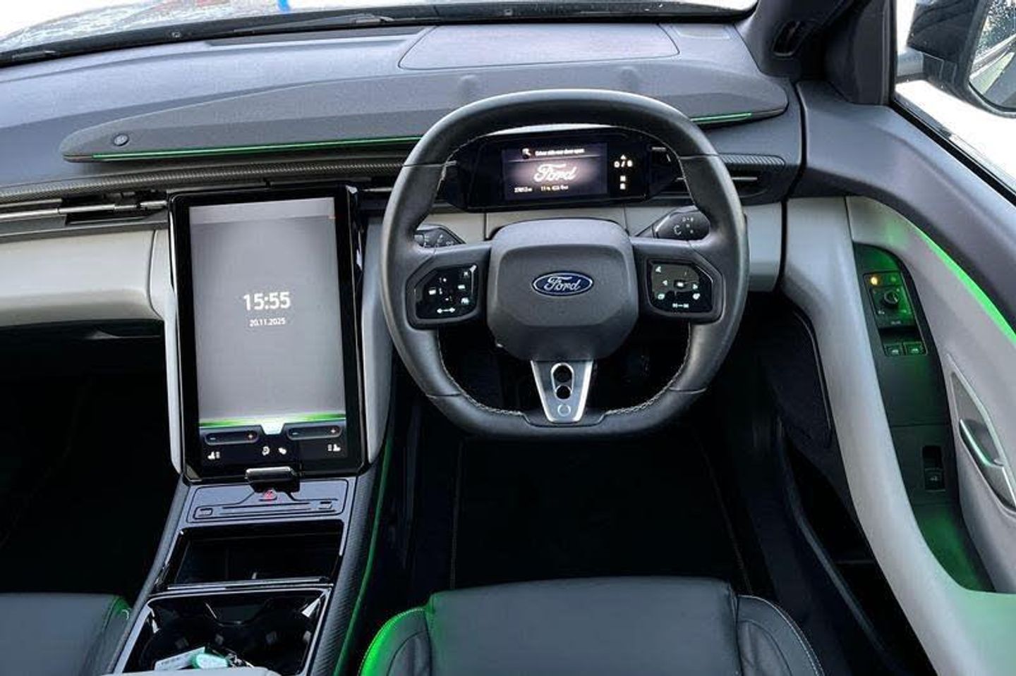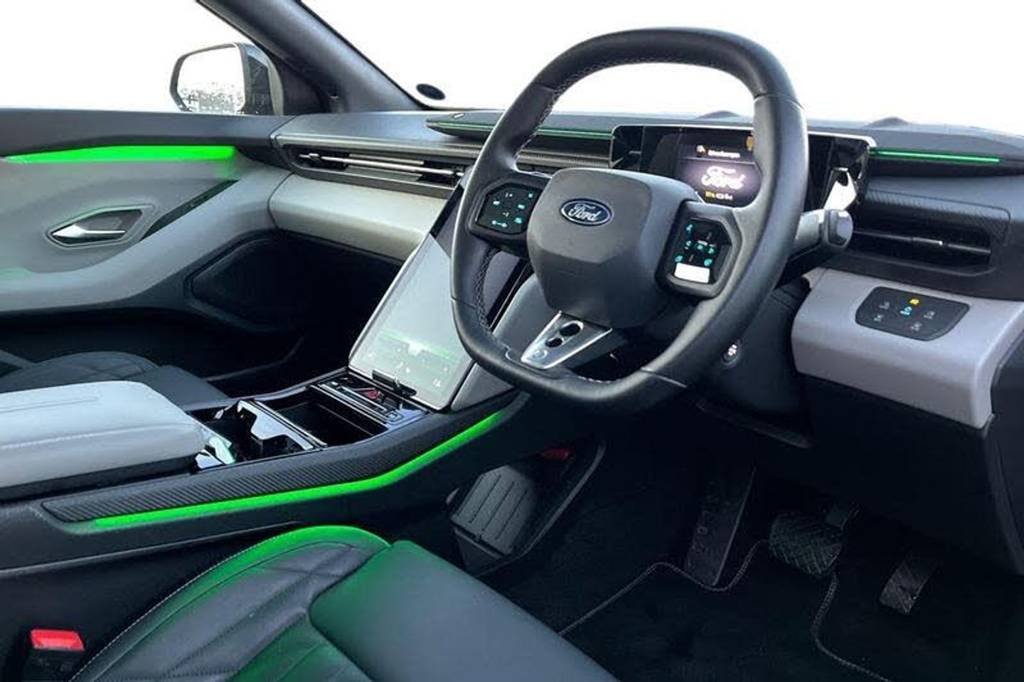 5.3 full digital cluster screen, Electric power steering, Emergency services call system, Front and rear parking sensors, Hands free power liftgate, Inductive wireless phone charging, Intelligent adaptive cruise control with stop and go, Lane departure warning with lane keeping aid, Navigation system, Rear view camera, Selectable drive modes, Traffic sign recognition, Wrong way alert, Automatic high/low beam, Black door mirrors, Door mirrors with memory function, Exterior mirror with logo puddle lamps, Fixed panoramic glass roof, Glare-free matrix LED headlamps, LED 3rd brake light, LED daytime running lights, LED rear lights, LED tail lamps with ford lettering and Coast-To-Coast applique, Power folding and heated door mirrors, Rear privacy glass, Rear side wing doors, 12 way power driver seat with memory, 3 seat bench in 2nd row, 6 way manual passenger seat adjustments, Driver seat massage function, Dual zone electronic automatic temperature control, Front door scuff plates, Front headrests, Front sport seats, Full sensico upholstery, Heated driver and passenger seats, LED ambient lighting, Pre Conditioning battery and cabin, Rear head restraints, Single front passenger seat, 3 point rear seatbelts, ABS, Child locks on rear doors