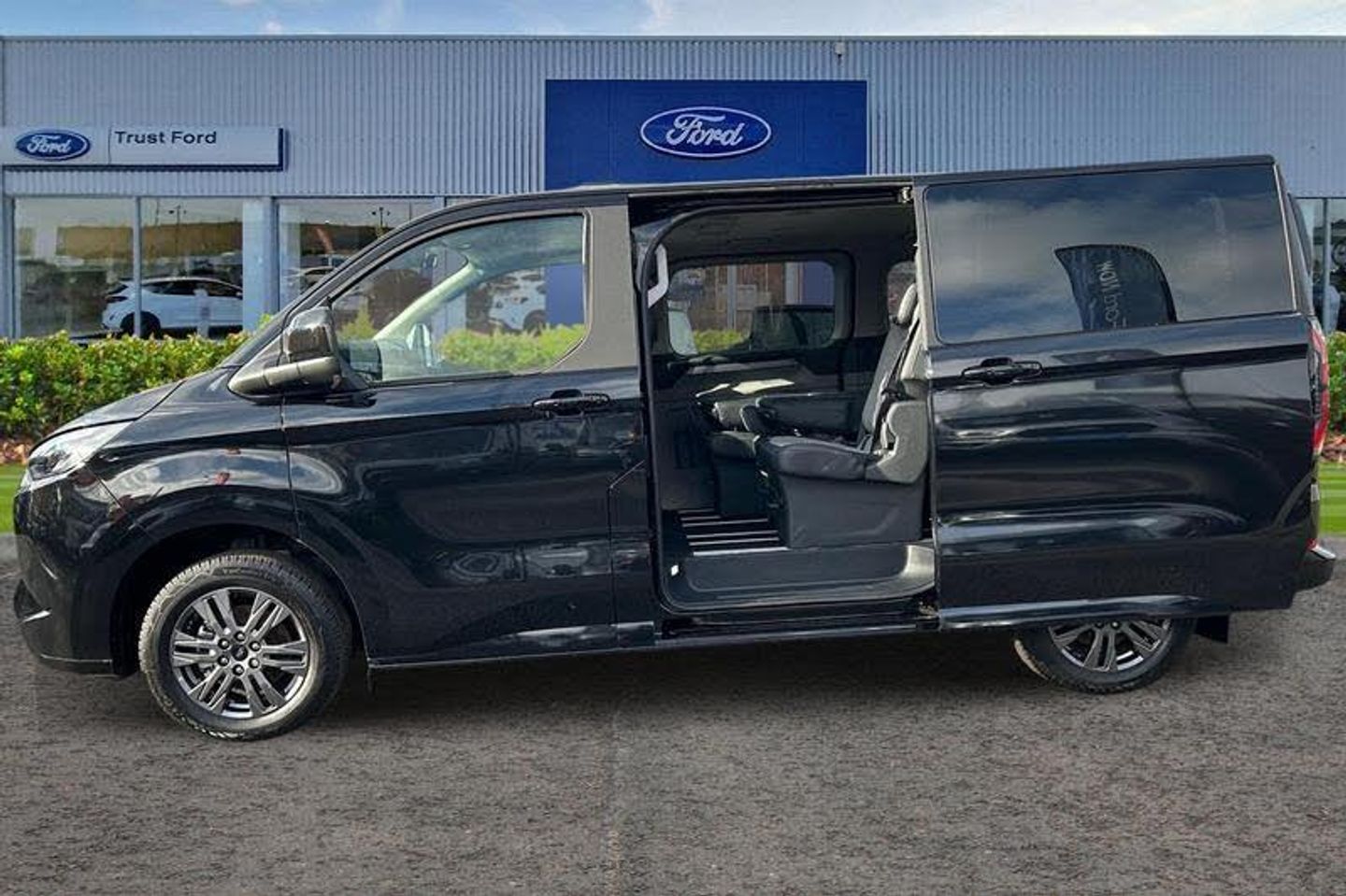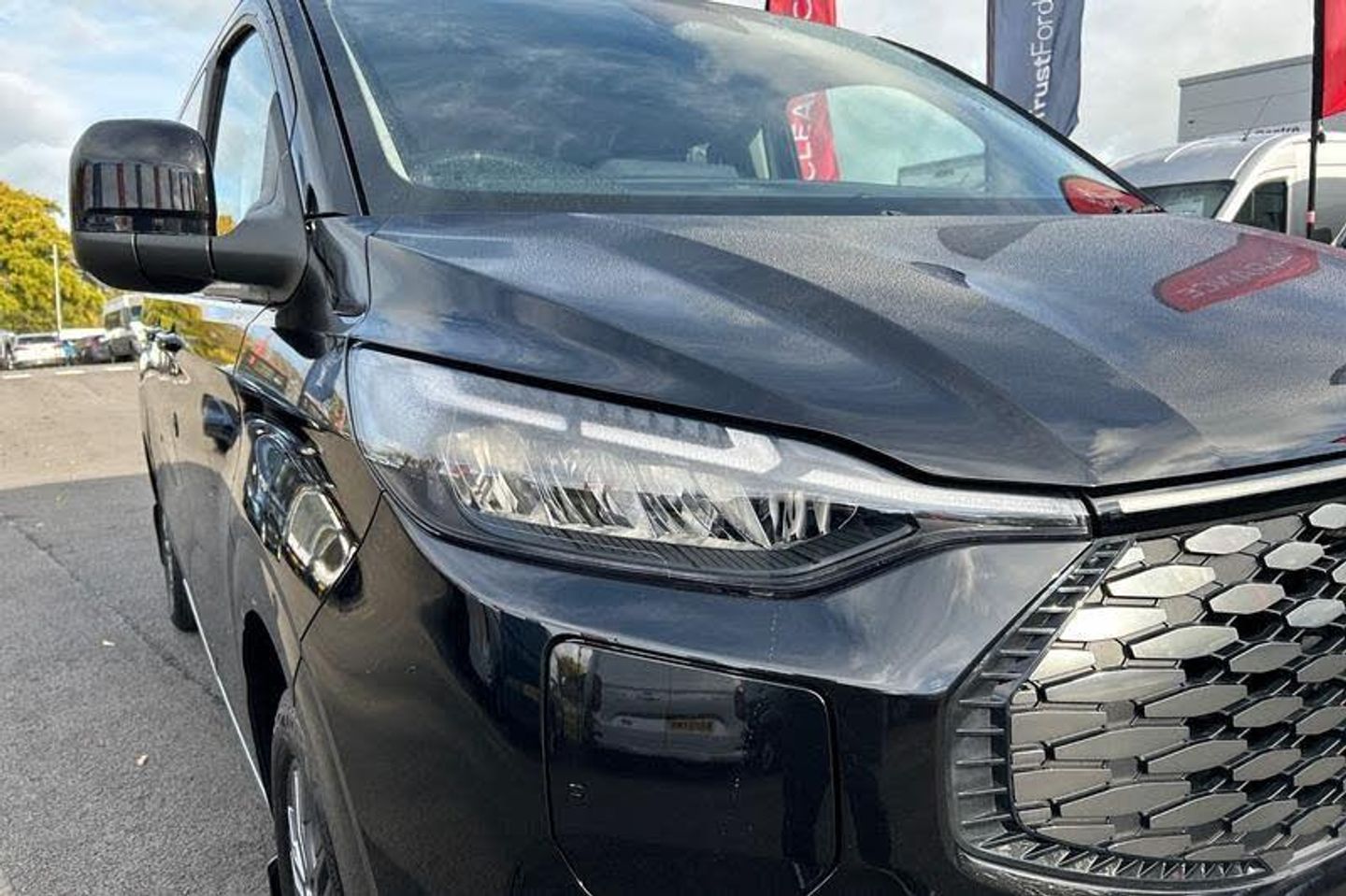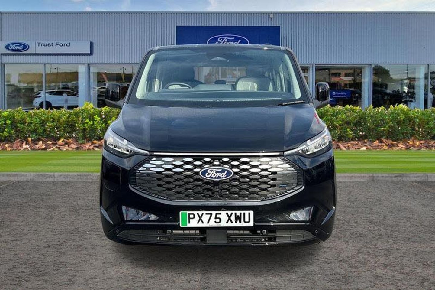 HEATED FRONT SEATS Provide comfort in any weather, FRONT AND REAR PARKING SENSORS are designed to help you park more confidently helping you judge the distance between your vehicle and obstacles both in front and behind you, BLUETOOTH HANDS FREE WITH VOICE CONTROL allows you to operate both your mobile phone and Ford audio system - controlling several functions using a set list of simple voice commands, FORDPASS CONNECT MODEM - Ford Pass App allows you to unlock a range of smart features including Remote Locking - Vehicle Location and more, AUTOMATIC LIGHTS AND WIPERS turns the headlamps on in low light situations and uses a rain sensor near the interior mirror to automatically turn on the wipers when moisture is detected, ADAPTIVE CRUISE CONTROL allows you to choose the speed you want to drive at and the system will maintain it - if the sensor detects a vehicle ahead it will slow the vehicle down to maintain a preset distance, SYNC 4 - Android Auto/Apple Car Play, Thatcham category 1 alarm with power door deadlocks, eTransit puddle lamps, Signature BEV Grille, Quick clear front windshield defroster, Remote central locking, Driver's airbag, Full moulded headlining, PAS, Alternator - 150A, Privacy glass, Electronic Stability Programme, Trip computer, Height adjustable head restraints, 3 point seatbelts for all seats, Map reading lights, Leather gearknob, Heated door mirrors, Tool kit, Audio controls mounted on steering wheel, Front seatbelt pretensioners, Coat hook, Tyre pressure monitor, Passenger airbag with deactivation switch, Rear reading light, Battery saver, Twin bottle holders, Front door map pockets, Passengers side open storage, Facia mounted tray with pen holder and cupholders, 3rd Row left and right fixed windows, Power socket in drivers stowage bin, Driver and passenger storage bins on facia with lids, Tyre repair kit, Automatic windscreen wipers, Illuminated footwell, Isofix child seat attachments - centre and offside 2nd row seats, Rear auxilliary power point socket, Daytime running lights, Passenger sunvisor, Rear armrest, Anti-lock brake system, Voice control system, Low roof line, Reclining rear seats, LED tail light, Roll stability control, Side wind mitigation, Speed sign recognition, Body colour front bumper, Body colour rear bumpers, Rear power point plug, Rear splash guard, Power front windows with one shot up/down, Lockable glove box lid, Body coloured exterior mirrors, 2 remote keys, Fixed rear window, Header courtesy lights, Driver and passenger seatbelt reminder, Black seat belt, Rear cargo liftgate door, Two step door unlock system, Locking wheel lug nut, 2 Load compartment tie down loops, Stolen vehicle recovery system, Front splash guard, LED load compartment lighting, Rear window defroster, advance speech recognition, over the air update capability, 13 Touchscreen, 5G embedded modem, Sun blinds, Comfort seat, Locking configuration 2, Speed dependant locking, Medium duty towing, Interior grab handles with driver's sunglasses holder, Non-swivel driver seat, Non-swivel passenger seat, Rear USB 3 port for charging, Vapor injected heater, Coast-to-coast light bar, Fixed LED headlamps with auto high headlamp, Rear washer/wiper, Alcohol interlock preparation, CAMERA, EURO 6, ULEZ, ULEZ COMPLIANT, SHORT WHEEL BASE, Minibus, AIRCON