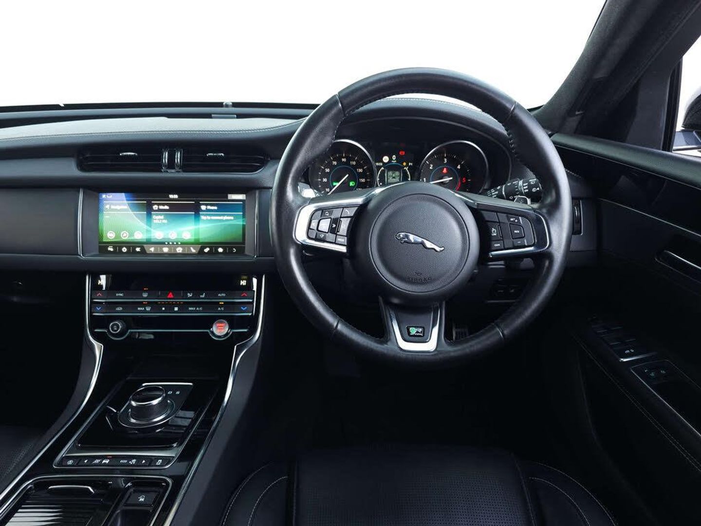 Equipped with Cruise Control with Speed Limiter, ECO Driving Style Assistant, Front and Rear Parking Aid, JaguarDrive Control, Lane Departure Warning, Traffic Sign Recognition with Adaptive Speed Limiter, 10in Touch Pro Screen, Apple Carplay and Android Auto, Bluetooth Interface with Audio Streaming, Jaguar Sound System, DAB Digital Audio Broadcast, Navigation Pro, Smartphone Pack, 20in Alloy Wheels, R Sport Styling, Xenon Headlights with LED Signature, Dual Zone Climate Control, Ambient Interior Lighting, 8-Way Manual Front Seats with Electric Recline, Front Heated Seats, Keyless Start, Power Tailgate Boot Lid, Hill Launch Assist & ISOFIX Child Seat Mountings in Rear.