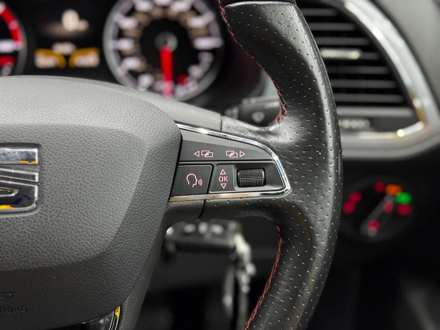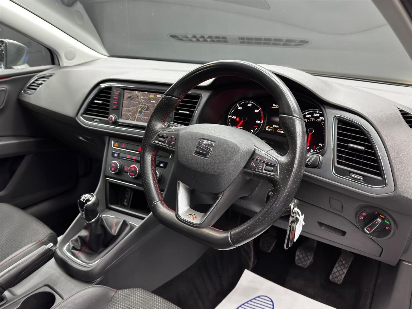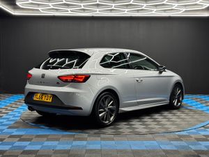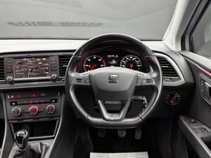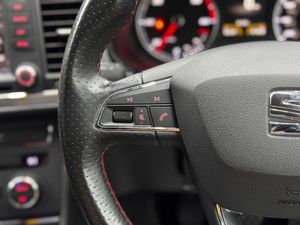 12 Volt Power Supply in Centre Console,18in Alloy Wheels - Performance - Titanium Coloured Machined,3.5in Drivers Display,ABS - Anti-Lock Braking System and TCS Traction Control System with De-activation,Active Front Head Restraints,Additional Heating-Ventilation Outlet in Rear Centre Console,Alarm - Perimeter and Interior Monitoring with Back-up Horn and Tow-Away Protection,Aluminium Front Door Sill Trims with FR Logo,Ambient Spot Lighting and Footwell Illumination,Anti-Theft Roof Antenna,Automatic Warning Lights,Bluetooth Phone Connection,Body Coloured Side Skirts,Body-Coloured Door Handles,Bumpers - Exclusive FR Front and Rear,Cargo Rings in the Boot,Chrome Interior Dashboard Detailing,Chrome Interior Decorative Mouldings,Cruise Control,Cupholders - Front Centre Console x2,Dark Tinted Rear Windows,Driver and Front Passenger Airbags,Driver and Passenger Sunvisor with Covered and Illuminated Mirrors,Drivers Knee Airbag,Drivers Seat Lumbar Adjustment,Dual Zone Climate Control,Dust and Pollen Filter,ESC - Electronic Stability Control with EBA - Emergency Brake Assist,Easy Entry Front Seats,Electric Windows - Front with One-Touch and Anti-Squeeze,Electrically Folding Door Mirrors,Electro-Mechanical Power Steering - Speed-Sensitive,Electronic Differential Lock System - XDS,Electronic Engine Immobiliser,Emergency Tyre Repair Kit,Exhaust Pipe - Twin,Extended Roof Spoiler,Front Armrest - Height and Reach Adjustable with Storage Compartment,Front Assist,Front Courtesy Light with Front and Rear Reading Lights,Front Fog Lights with Cornering Function,Front Grille Frame - Chrome,Front Passenger Airbag De-Activation,Front Seat Back Storage Pockets,Front Side Airbags,Fuel Filler Flap linked to Central Locking,Full LED Headlights,Gearshift Indicator,Gloss Black Pillars,Head Restraints - Height Adjustable Front,Head Restraints - Height Adjustable Rear x3,Headlights - Automatic Range Adjustment,Headlights - Coming Home Function,Height Adjustable Passenger Seat,Height and Reach Adjustable Steering Wheel,Height-Adjustable Drivers Seat,Hill Hold Control,ISOFIX Points in Outer Rear Seats with Top Tether Anchorage Points,Illuminated Boot,Instrument Lighting with Brightness Control,Interior Ambient Lighting - Door Panel,LED Taillights,Leather Gear Knob,Leather Handbrake,Lights Left On Warning Buzzer,Locking Wheel Bolts,Low Fuel Warning Light,Media System Plus,Multi-Collision Braking System,Navigation System,Outside Temperature Gauge,Passenger Door Mirror with Kerb Function when Reversing,RPM Counter,Rear Courtesy Light with Rear Reading Lights,Rear Fog Light,Rear Parking Sensors,Rear Wash - Wipe,Remote Central Locking with Deadlocks,Remote Door Mirror Folding Function,SEAT Drive Profile with Four Different Modes - Eco-Normal-Sport-Individual,SEAT Logo Tailgate Release,Seatbelt Reminder - Front,Seats - Passenger Lumbar Adjustment,Seats - Sports,Speakers x8,Split Folding Rear Seats - 60-40,Sports Suspension,Steering Wheel - Flat-Bottomed Perforated Leather with Red Stitching and FR Logo,Technology Pack,Three-Point Seat Belts,Tinted Windows,Titanium Coloured Door Mirrors with Integrated LED Indicators,Trip Computer,Two Curtain Airbags,Two Remote Keys with Window Open-Close - Door Mirror Folding and Boot Opening Functionality,Tyre Pressure Monitoring System,Visible VIN in Windscreen,Techny Cloth - Black