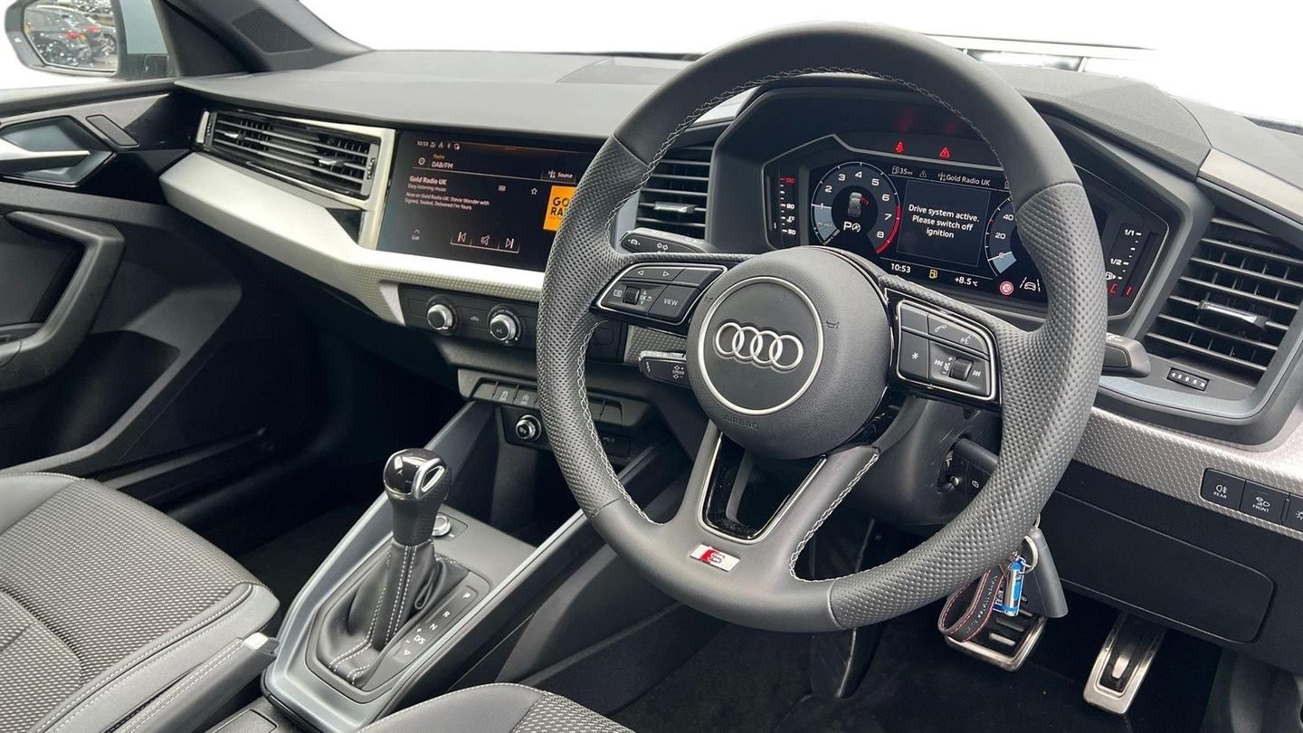 Reserve Online,Contrast Roof,10.25" Digital instrument cluster display classis style instrument dials + speedodometer,time,outside temperature,telephone menu + fuel level warning,Audi smartphone interface,Camera based traffic sign recognition,Rear parking sensor,Lane departure warning system,DAB Digital radio,LED headlights with range control LED rear lights + dynamic rear indicators,ISOFIX child seat mounting for front passenger and outer rear seats including top tether attachment point of outer rear seats,3 spoke leather multi-function plus steering wheel features S badging and grips in perforated leather with contrast stitching,Audi pre-sense front with pedestrain and cyclist recognition,MMI radio plus with 10.1" colour MMI display screen and MMI touch,Manual air conditioning