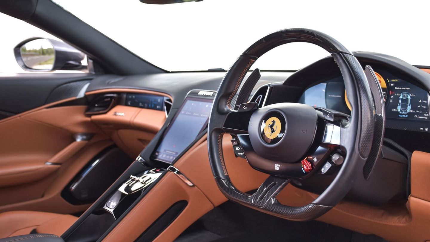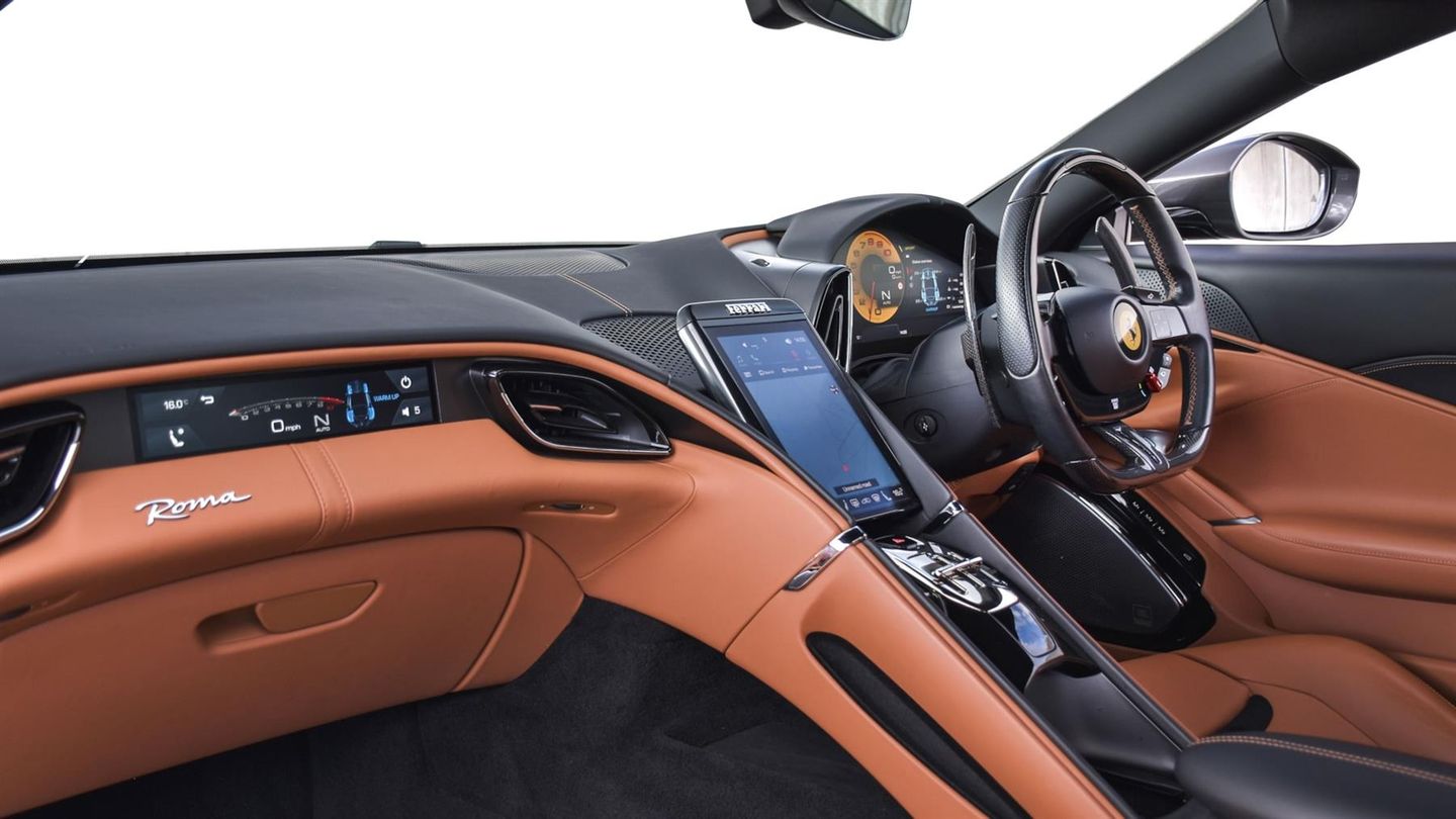 20 Alloy Wheels Finished In Grigio Corsa,Black Brake Calipers,Full ADAS Package,Premium HiFi System,Passenger Display,Apple CarPlay,Carbon Fibre Steering Wheel Including LED Lights,Scuderia Ferrari Shields,Black Ceramic Exhaust Pipes,Rear Parking Camera,Dual Mode Magneride Suspension,Full Electric Seats,Stitching Finished In Cuoio,Cavallino Stitched Onto Headrests Finished In Cuoio,Cockpit Bands Finished In Cuoio Leather,Fitted Floor Mats With Model Designation,Foldable Rear Seats Backrest,Navtrak AntiTheft System,24 Months Ferrari Approved Warranty,Balance Of Ferrari Service Plan Until 2029
