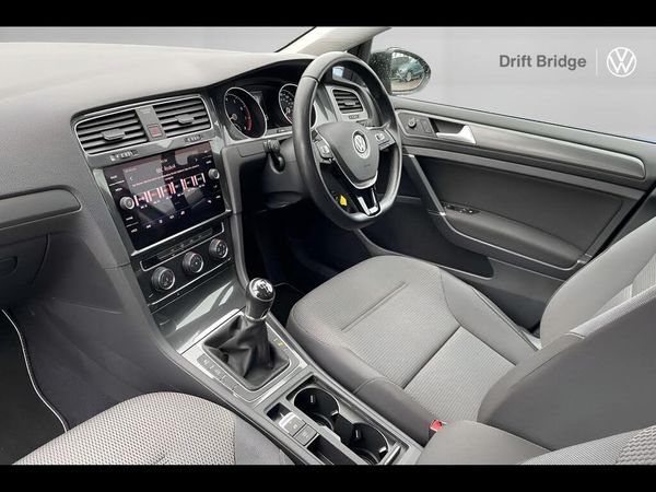 'Lights On' Reminder warning buzzer, 8" touch screen, Adaptive Cruise Control with pedestrian detection and speed limiter, App-Connect, Bluetooth hands free telephone connection, Brake pad wear indicator warning light, Driver alert system, Driver profile selection, Exterior temperature gauge, Front assistant collision mitigation, Instrument cluster in white, Multifunction computer, PAS - speed related, Rev counter, Trip and service interval display, Ultrasonic front and rear optical and audible parking sensors, Warning buzzer and light for front seatbelts unfastened, XDS electronic differential lock, CD/MP3/WMA, USB and SD card reader, aux-in, Composition media system, DAB Digital radio, Auto dimming rear view mirror, Automatic coming/leaving home lighting function, Automatic headlights, Black front air intake and radiator grille with chrome insert, Black rear diffuser, Body colour bumpers, Body colour door handles, Body colour door mirrors, Electric front windows, Electric rear windows, Electrically adjustable and heated door mirrors, Heated rear windscreen, LED daytime running lights, LED rear lights, Rain sensor, Rear roof spoiler, Rear windscreen washer and wiper with interval delay, 12V socket in luggage compartment, 3 rear headrests, 3 spoke steering wheel, 60/40 split folding rear seat, Bag hook in luggage compartment, Boot lashing points, Cooled glovebox, Courtesy light delay, Cover for storage compartment in centre, Dust/pollen filter, Front and rear reading lights, Front centre armrest with storage box and rear air vents, Front passenger seat height adjust, Front seat back storage pockets, Grab handles, Height/reach adjust steering wheel, Illuminated vanity mirrors, Isofix preparation for 2 rear child seats, Load through provision with rear centre armrest and cupholders x2, Luggage compartment cover, Luggage compartment lighting, Multifunction leather steering wheel with leather gear knob/handbrake grip, Overhead storage box, Pearl grey headlining, Storage box in luggage compartment, Storage compartments in doors, Sun visors, Variable boot floor, height adjustable and removable, Mirror pack - Golf, 3 point height adj front seatbelts + pretensioners, 3 rear 3 point seatbelts, ABS, Automatic post collision braking, Child locks on rear doors, Driver/Front Passenger airbags, Driver/Passenger whiplash optimised head restraints, Drivers knee airbag, Electronic parking brake with auto hold, ESP with EDL + ASR, Front and rear curtain airbags, Front passenger airbag deactivation, Front side airbags, Pre crash system, Tyre pressure monitor, Alarm with interior protection, Electronic engine immobiliser, Remote central locking with 2 remote folding keys, Brushed dark metal decorative inserts in dash and front door panels, Chrome-plated light switch surround, Polar night black centre console, Steel space saver spare wheel