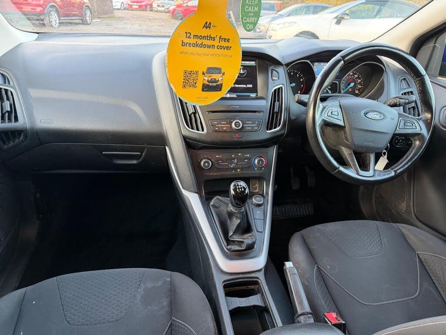 12V Power Socket - Front, 16in Alloy Wheels - 5x2 Spoke, 4.2in TFT Display, ABS - Anti-lock Braking System, AUX Connection, Air Conditioning - Manual, Airbag - Front Passenger, Airbags - Curtain, Airbags - Curtain Rear, Airbags - Side Impact, Anti-Submarining Seat Bases, Armrest - Centre Console, Black Headlight Bezel, Bluetooth Handsfree Phone System, Body Colour Bumpers, Body Colour Exterior Mirrors, Chrome Finish on Upper Door Line, Colour TFT Instrument Cluster Display, Door Handles - Body Colour, Door Mirrors - Electrically Operated and Heated, Door Mirrors with Integrated Indicators, Drivers Airbag, EBA - Emergency Brake Assist, EBD - Electronic Brakeforce Distribution, ESP - Electronic Stability Programme, Electric Windows - Front with One Touch Lowering Drivers, Emergency Assistance, Emergency Brake Warning, Ford AM-FM CD Audio System, Ford DAB Audio System, Ford Easy-Fuel Capless Refuelling System, Ford Eco Mode - Driver Information System, Ford SYNC, Front Fog Lights, Front Seat Belts with Pre-Tensioners, Front Upper Grille - Chrome Finish Surround, Fuel Computer, Headlights - Halogen, Heated Front Windscreen, Height-Adjustable Mounts on Front Seat Belts, Hill Start Assist, IPS - Intelligent Protection System, ISOFIX - Child Seat Attachments, Locking Wheel Nuts, Mini Steel Spare Wheel, MyKey, Pedals - Collapsible, Pollen Filter, Power Steering, Premium Centre Console, Rear Spoiler - Body Colour, Remote Central Locking, Seats - 60-40 Rear Split Back, Seats - Drivers Height Adjustment, Seats - Drivers Lumbar Support, Seats - Front Sports, Speakers - x6, Steering Column - Collapsible, Steering Column - Rake and Reach Adjustment, Steering Wheel - 3 Spoke - Leather Trimmed, Steering Wheel - Audio Controls, Suspension - Sports, TVC - Torque Vectoring Control, Thatcham Category 1 Alarm, Traction Control - TC, Tyre Pressure Monitoring System, USB Connection, Voice Control - Audio