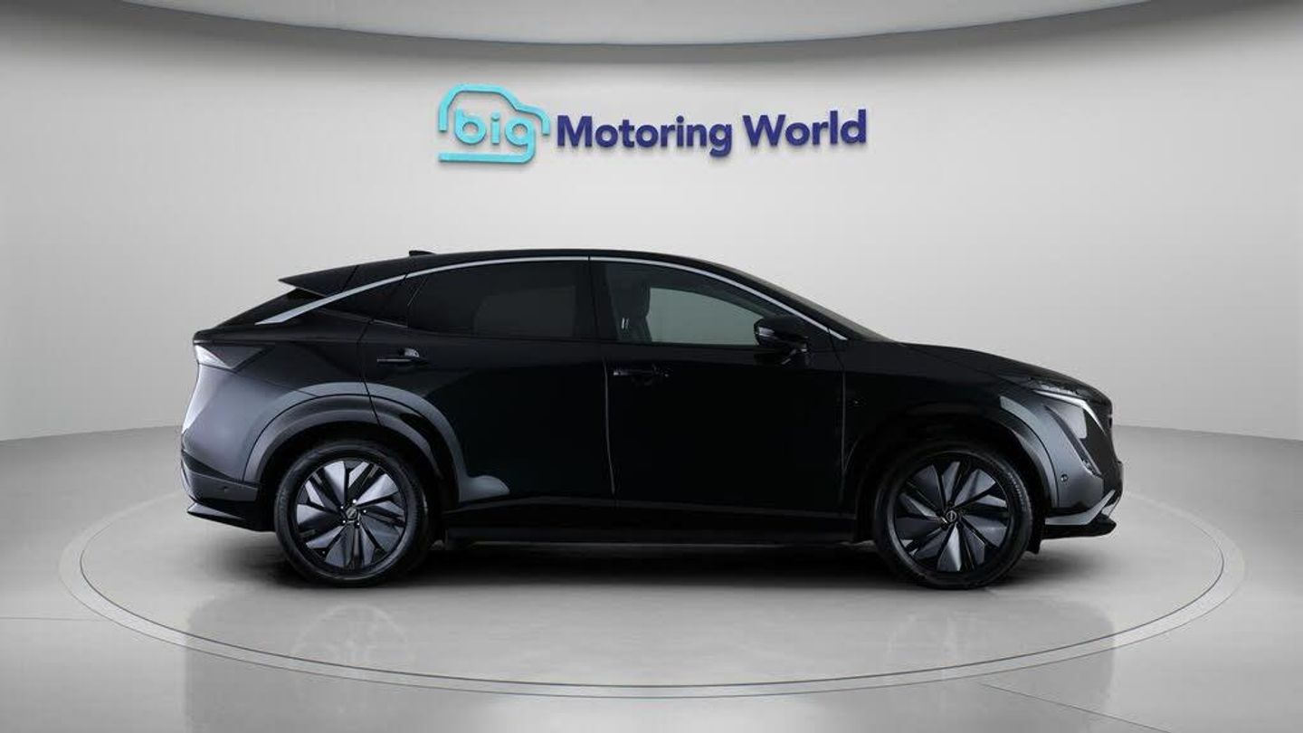 FREE £750 towards your finance-Our Nissan ARIYA is finished in Green. Specification includes a range of fantastic features including FREE £750 towards your finance Deposit, Panoramic Roof, Head up Display, Part Leather Seats, Satellite Navigation, Privacy Glass, Heated Seats, Heated Windscreen, Rear View Camera, Memory Seats Specification information is supplied by CAPHPI and may vary to the actual car. This data does not form any part of a buying contact. Please check specification prior to purchase in-store. The MOT is valid until October 2026, visit bigmotoringworld.co.uk for more photos, a 360 tour, service history and a free HPI report.Were BIG on peace of mind and this Green Nissan ARIYA has completed our comprehensive 200 point inspection and passed all checks. Its ready for you to drive away with immediate collection in-store. We include a 90-day warranty as standard plus an option to extend for up to 3 years.Reserve this car exclusively for you, safely and securely at bigmotoringworld.co.uk, with a fully refundable £99 deposit. Test drive before you buy, with no commitment, no hassle and a completely haggle free experience. Still searching and want to see thousands more cars? We are BIG on choice with over 8000 cars to choose from.Visit our award winning web site bigmotoringworld.co.uk.Were Big Motoring World and were BIG on what matters to you.