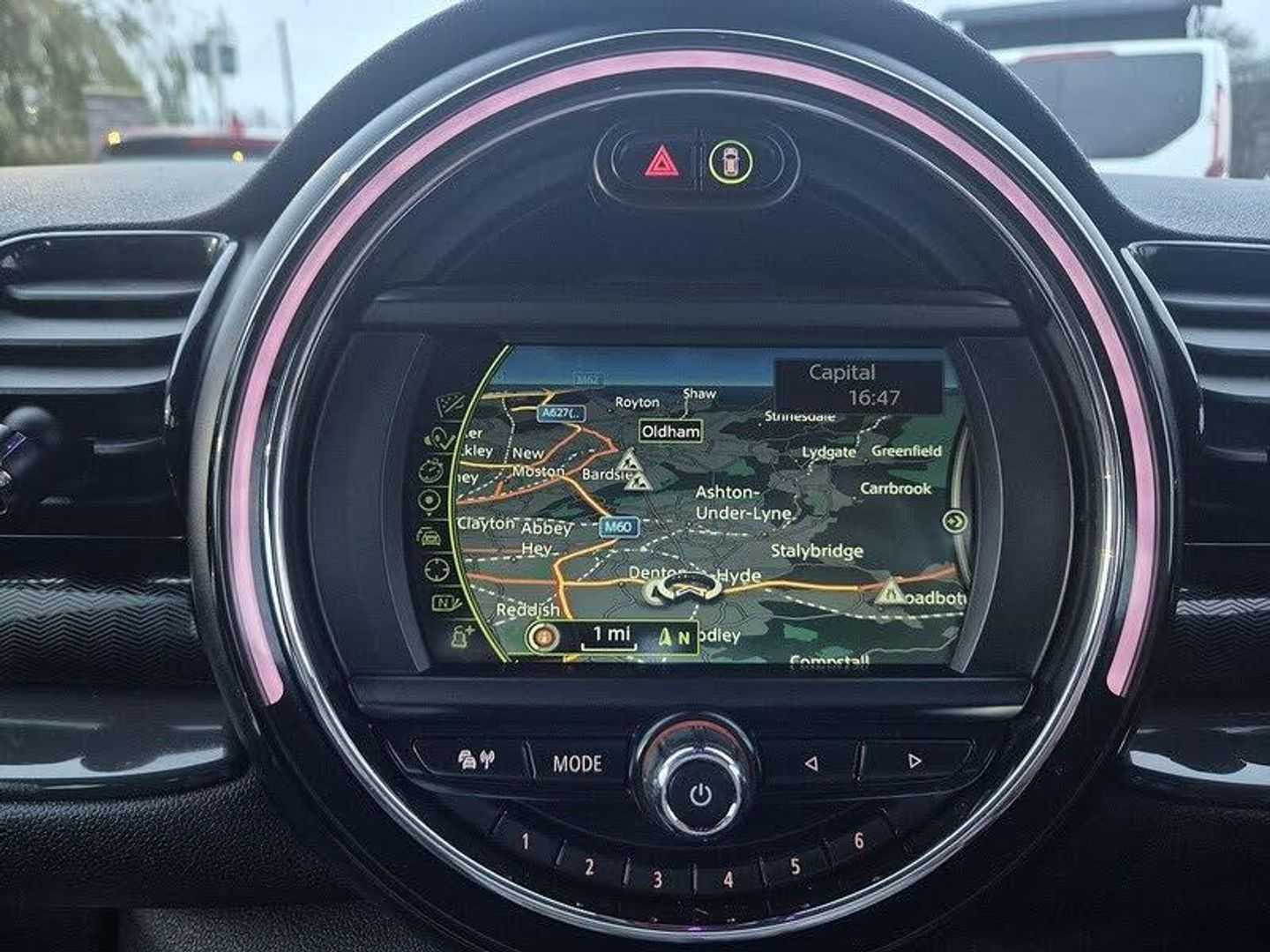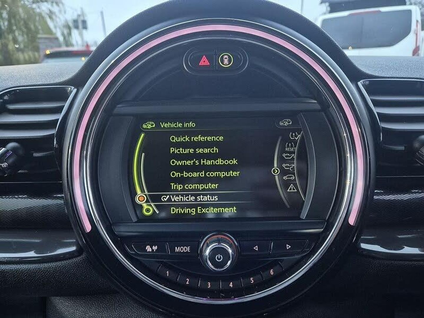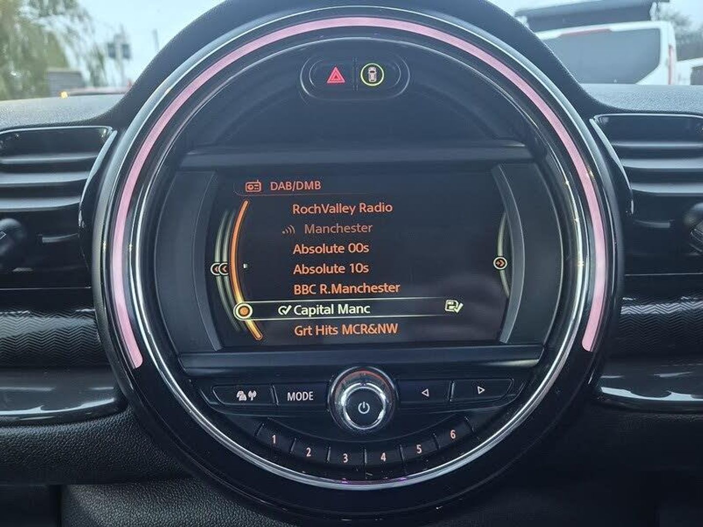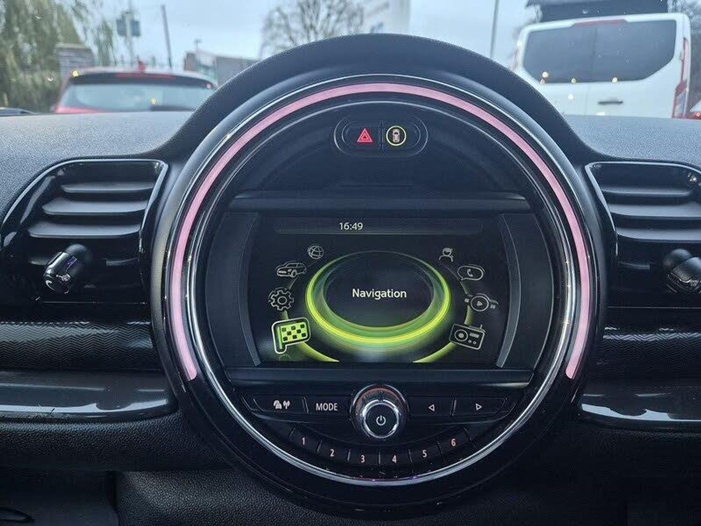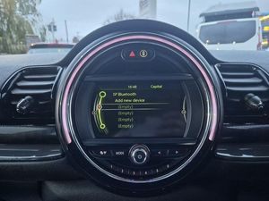 Brake pad wear indicator warning light, DTC - Dynamic traction control, Exterior temperature gauge, Intelligent emergency call, Mini Ecall, MINI TeleServices, Navigation system, On board computer, Personal Profile, Service interval indicator, Servotronic speed sensitive power steering, Electronic differential lock, Auxiliary input socket, DAB digital radio module, MINI Connected, MP3 compatible radio/single CD player, Radio visual boost, Anti dazzle rear view mirror, Black-Line look door sill finishers, Body coloured bumpers, Chrome door handles, Chrome exhaust tailpipe, Chrome headlight surround, Chrome plated radiator grille, Electric front windows + one touch + anti-pinch, Electrically adjustable door mirrors, Follow me home headlights, Front fog lights, Front intermittent wipers, Heated door mirrors/heated windscreen washers, Heated rear window with timer, Rain sensor including auto headlights activation, Rear wiper, White indicator lights, 12V power point front, 4 lashing points to secure luggage, 60/40 split folding rear seat, Centre console storage box, Chrome interior door handles, Driver/passenger sunvisors, Easy entry seats, Front and rear cupholders, Front and rear Isofix child seat preparation, Front and rear velour floor mats, Front centre armrest with storage compartment, Front headrests, Front interior light, Front passenger grab handle, Front seat backrest storage nets, Heater with recirculation function, Height/reach adjust steering wheel, Luggage compartment lighting, Multifunction steering wheel, Outer passenger rear headrests, Rear armrest with storage, Rear grab handles, Storage compartments in doors, Toolkit in luggage compartment, Interior lights pack - Mini Clubman, 3 point automatic seatbelts, 3 point seatbelts on all rear seats, ABS, Automatic Stability Control (ASC), Cornering brake control (CBC), Crash Sensor - activates hazard/interior lighting + unlocks doors, Driver and passenger airbags, Driver and passenger side airbags, DSC - Dynamic Stability Control, Electronic brake force distribution, Electronic parking brake, Front curtain airbags, Front passenger airbag deactivation, Fuel cut off safety device, Hill start assist, Pyrotechnically pre-tensioned front seatbelts, Traction control, Twin horns, Tyre pressure warning, Drive away door locking, Keyless Start, Locking wheel bolts, RF remote control central locking, Second remote key, Thatcham category 1 alarm + immobiliser