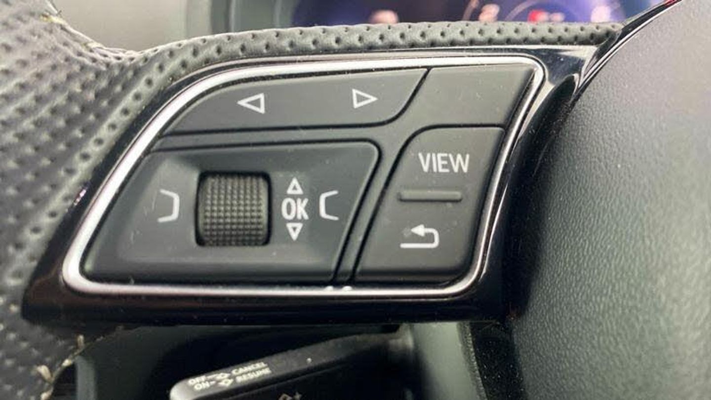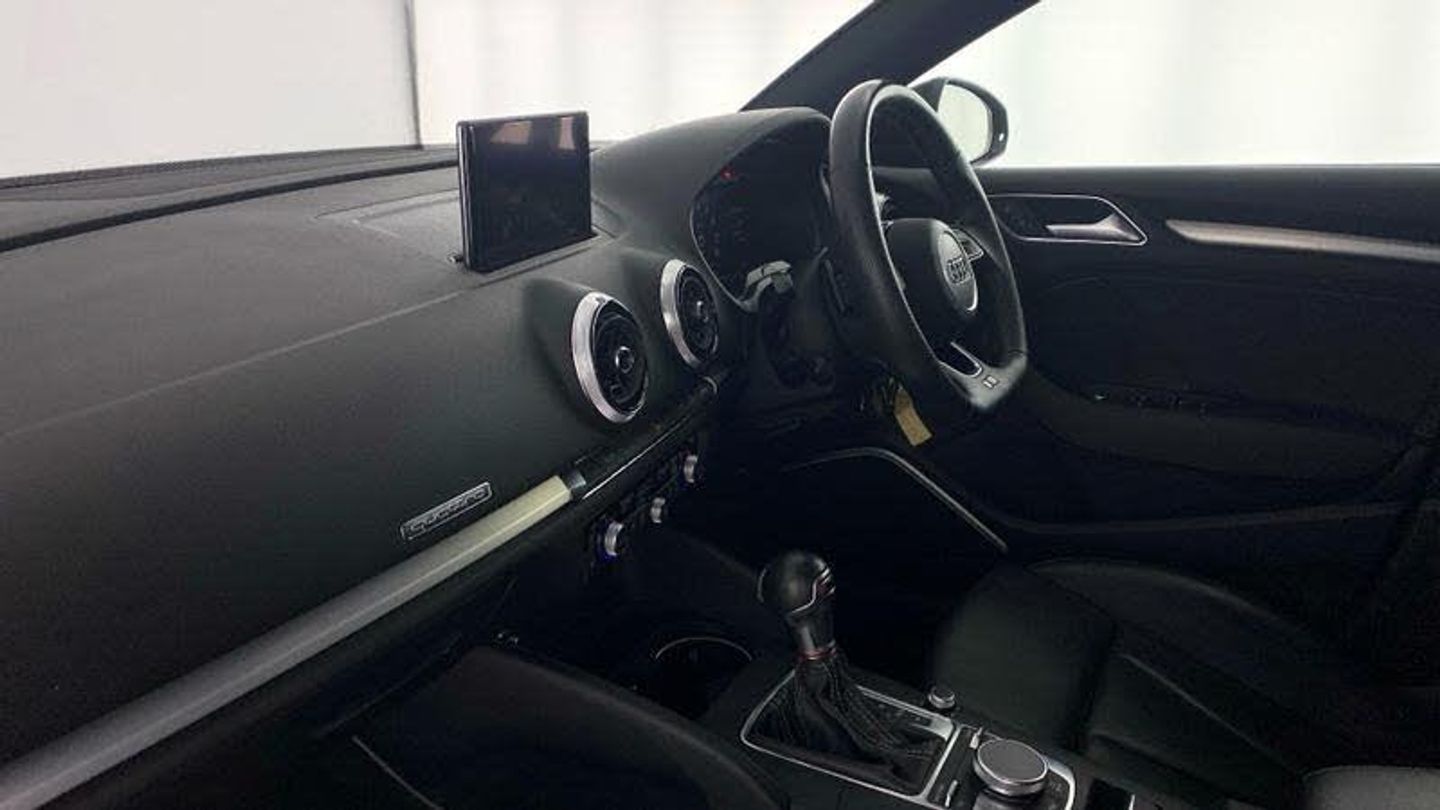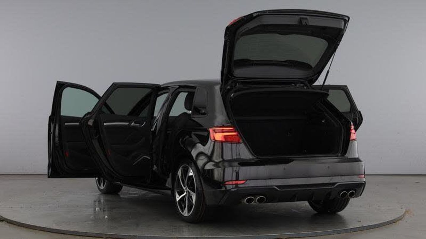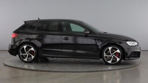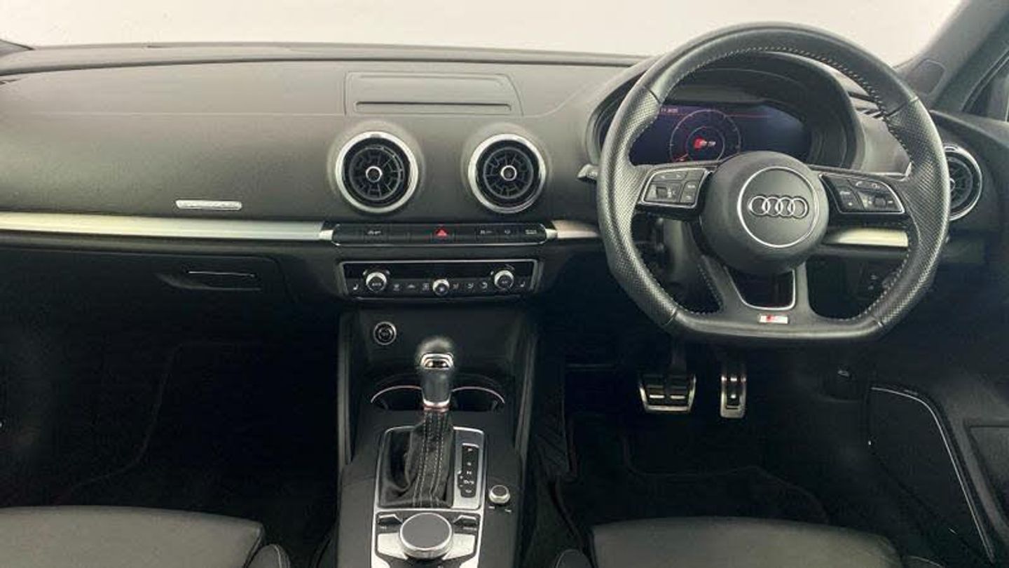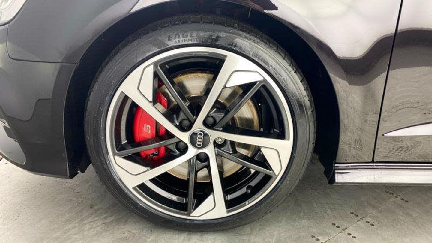 Audi Virtual Cockpit, Online service - without OCU - with head unit coding - without engine immobilizer interconnection, With Connect package 3, Premium radio (Gen2), Red Brake Calipers, 18 x 7.5J '5-arm trapezoid' design Audi Sport alloy wheels in gloss anthracite black - diamond cut finish with 225/40 R18 tyres, Technology pack advanced, S Line Plus Identifier, Audi Beam - Front door puddle illumination, Disk brakes in rear, Disk brakes in front, Black moldings, Body-coloured door mirrors, Exterior mirrors - electrically folding/adjustable/heated and auto-dimming, MMI Navigation plus with MMI touch, Audi virtual cockpit, Bang & Olufsen Premium Sound System, Audi phone box/wireless charge, Equipment options subset for Great Britain, [Audio and Communications]Technology Pack, [Exterior]Brake Calipers Painted in Red with S3 Logo at the Front, Privacy glass