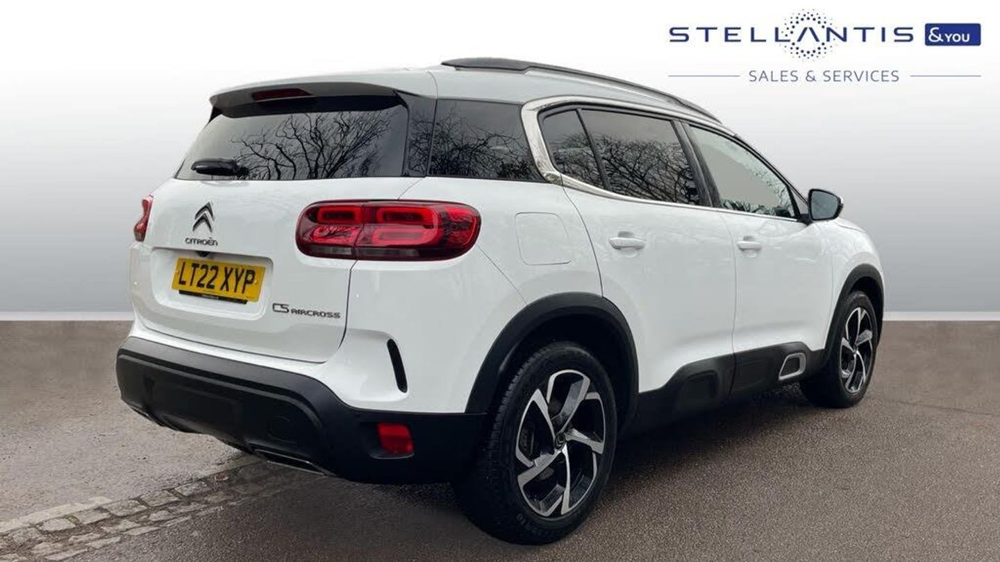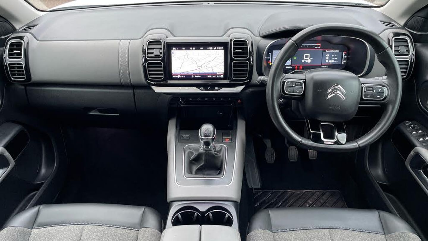 12v Socket in Boot, 12V Socket in Front of Cabin, 2x USB Sockets, Bluetooth Telephone Facility, Central 8in Capacitive Touch Screen, Citroen Connect Box with Emergency and Assistance System, Citroen Connect Nav includes TomTom Live Updates (3 Year Subscription From New), DAB - Digital Audio Broadcasting - AM-FM and MP3 Compatible Radio with Two Tweeters and Four Speakers, Mirror Screen - Apple CarPlay - Android Auto, Active Lane Departure Warning System, Coffee Break Alert, Collision Risk Alert, Driver Attention Alert, ECO Plus Mode, Exterior Temperature Indicator with Ice Warning, GEI - Gear Efficiency Indicator, Multifunction Trip Computer, Programmable Cruise Control with Speed Limiter, Rear Parking Sensors, Reversing Camera Displayed on the Central Screen, Traffic Sign Recognition and Recommendation, Tyre Under Inflation Indicator - Indirect System, Voice Recognition, 18in Alloy Wheels - Swirl Two Tone Diamond Cut, Acoustic Laminated Windscreen with Rain and Brightness Sensors, Airbump Panels with Colour Insert on Lower Portion of the Doors, Body Colour Door Handles, Body-Colour Rear Spoiler with Stainless Steel Edging Trim, C5 Aircross Monogramme on Boot Rear, Citroen Logo and Monogramme on Rear, Compressor with Puncture Repair Kit, Dark Tinted Rear Windows and Rear Windscreen, Electric - Heated and Folding Body Coloured Door Mirrors with Integrated LED Indicator and Kerb Puddle Light, Gloss Black - A and B Pillar, Halogen Rear Fog Lights, Halogen Rear Numberplate Lights, Heated Rear Windscreen With Integrated Antenna, LED Front Indicators, Longitudinal Roof Rails, Magic Wash, Matt Black Lower Rear Skirt, Matt Black Rear Bumper Facia with Chrome Exhaust Effect Trim, Matt Black Side Sill with Airbump Panels and Anodised Silver Colour Touch, Matt Black Upper and Lower Grille, Matt Black Wheel Arch Extensions, One-Touch Electric Front and Rear Windows with Pinch Protection, Painted Front Bumper, Painted Rear Bumper, Rear Windscreen Wiper - Triggered Automatically in Reverse Gear, Roof - Body Coloured, Satin Chrome C Signature, Satin Chrome Window Finishers, Silver Anodized Colour Pack, Twin Exhaust Effect Trim, Visibility Pack, 3D LED Rear Lights, Front Fog Lights with Cornering Function, Guide Me Home Headlights Function, Headlights Left On Audible Warning, LED Daytime Running Lights, LED Headlights, LED High Level Central Brake Light, 12.3in Customisable TFT Instrument Display, 2 Central Cup-Holders, 2 Position Boot Floor, 3 Independent Full Size Rear Seats with Adjustable Recline Angle, Advanced Comfort Seats, Air Recirculation When Reverse Gear is Engaged, Air Vents for Rear Seat Passengers, Anti Odor and Pollen Filter, Auto-Dimming Electrochrome Rear View Mirror, Automatic Dual Zone Climate Control, Central Front Armrest with Butterfly-Wing Opening and Illuminated Storage Compartment, Dashboard - Open Central Storage Compartment, Dimmable White Mood Lighting, Fixing Rings in Load Area x4, Front and Rear LED Welcome and Reading Lights, Front Interior Light with Reading Spotlights x2 and Rear Interior Light with Timer, Gear Lever - Satin Chrome, Gloss Black Touch Screen Surround with Integrated Tactile Buttons and Chrome Finisher, Grab Handles x3 - Retractable with Damping, Height and Reach Adjustable Steering Wheel, Hinged Parcel Shelf, Horn - Two-Tone, Leather Effect Dashboard Facia, Leather Effect Interior Door Handles, Manual Driver Seat Adjustment - Height - Fore/Aft and Backrest Angle, Manual Passenger Seat Adjustment - Height - Fore-Aft and Backrest Angle, Map Pockets on Front Seat Backs, Multi-Function Leather Steering Wheel with 2 Command Blocks, Open Central Storage Area Below Touch Screen, Rear Centre Console Ventilation System, Rear Coat Hooks x2, Rear Seats with Adjustable Height Headrests, Satin Chrome Air Vent Surrounds, Satin Chrome Digital Instrument Panel and Touchscreen Trim, Satin Chrome Interior Door Handles, Seats - Driver 2 Way Lumbar Adjustment, Smooth Opening Flocked Glove Box with Lighting, Soft Touch Matt Dashboard with Grey Insert, Storage - Front Door Pockets, Storage - Rear Door Pockets, Electric Power Steering, Suspension with Progressive Hydraulic Cushions - PHC, ABS with Electronic Brakeforce Distribution - EBD, Airbags - Adaptive Driver and Front Passenger Airbags, Airbags - Curtain Front and Rear, Airbags - Driver and Front Passenger Side Airbag, Alarm, Automatic Door Locking When Moving Off, Automatic Hazard Light Activation Upon Heavy Brake Application, City Camera Pack, DSC - Dynamic Stability Control and ASR - Electronic Anti-Skid System, Electric Child Locking Functionality on Rear Windows and Doors, Electronic Code Immobiliser, Electronic Parking Brake, ESP - Electronic Stability Programme including Traction Control, Front Optimised Safety Headrests and Rear Retractable Headrests x3 Height Adjustable, Front Three-Point Retractable Seatbelts - Height-Adjustable - with Pre-Tensioners and Force Limiters, Hill Start Assist, ISOFIX Child Seat Fittings x3 in the Front Passenger Seat and Two Outer Rear Seats, Keyless Entry and Start, Rear Three-Point Retractable Seatbelts x 3 - with Pre-Tensioners and Force Limiters in the Outer Rear Seats, Remote Central Locking with Deadlocks, Safety Pack, Seatbelt Unfastened on the Move Audible and Visual Alert for Front and Rear Seats, Speed Limit Recognition System and Recommendation