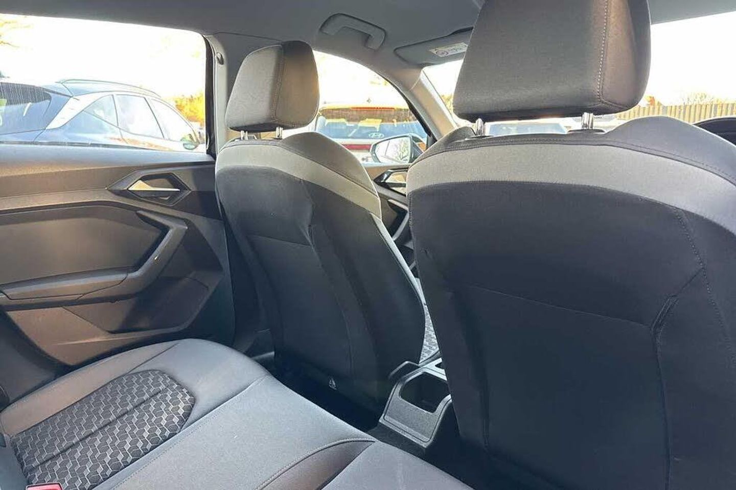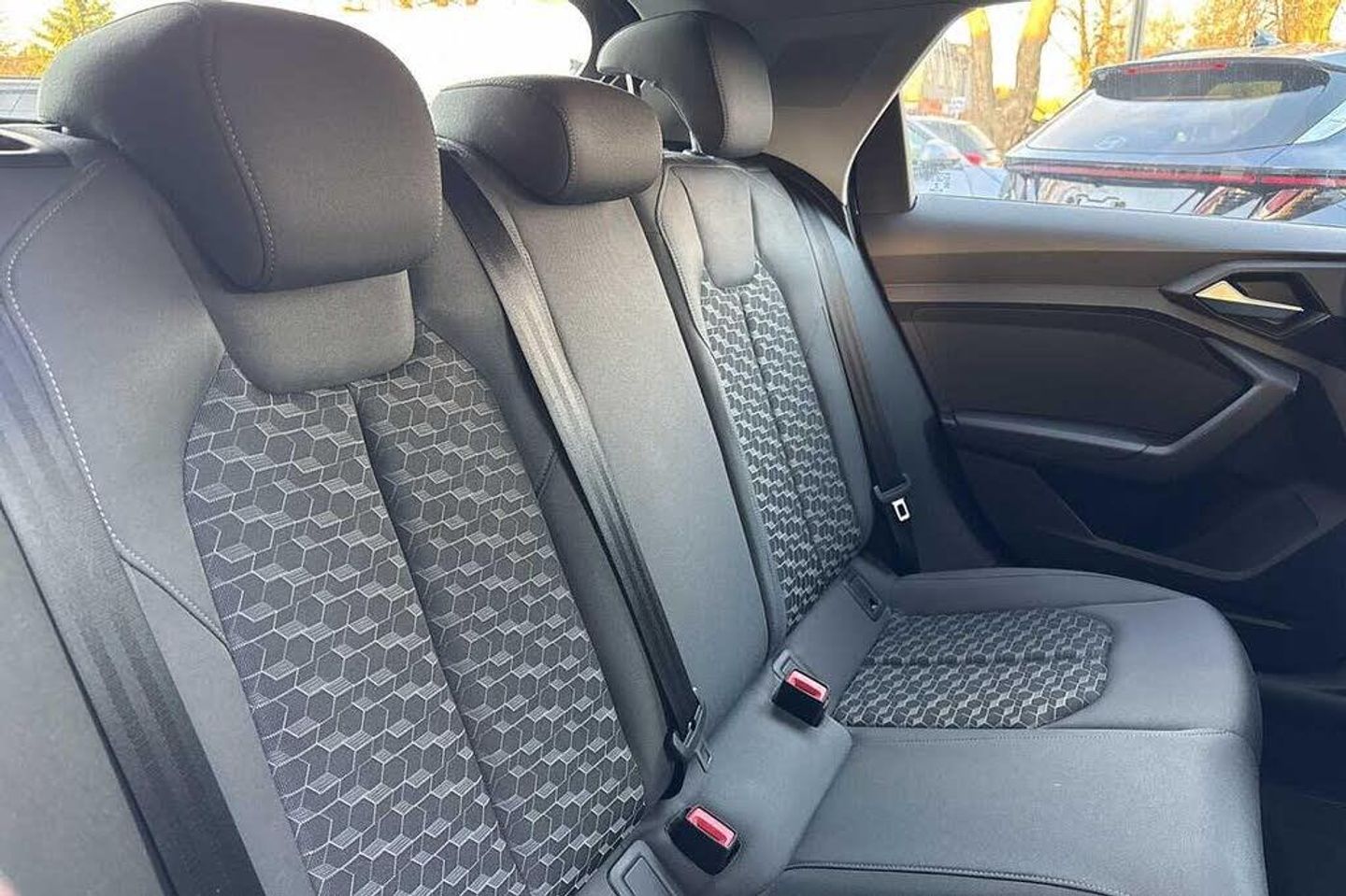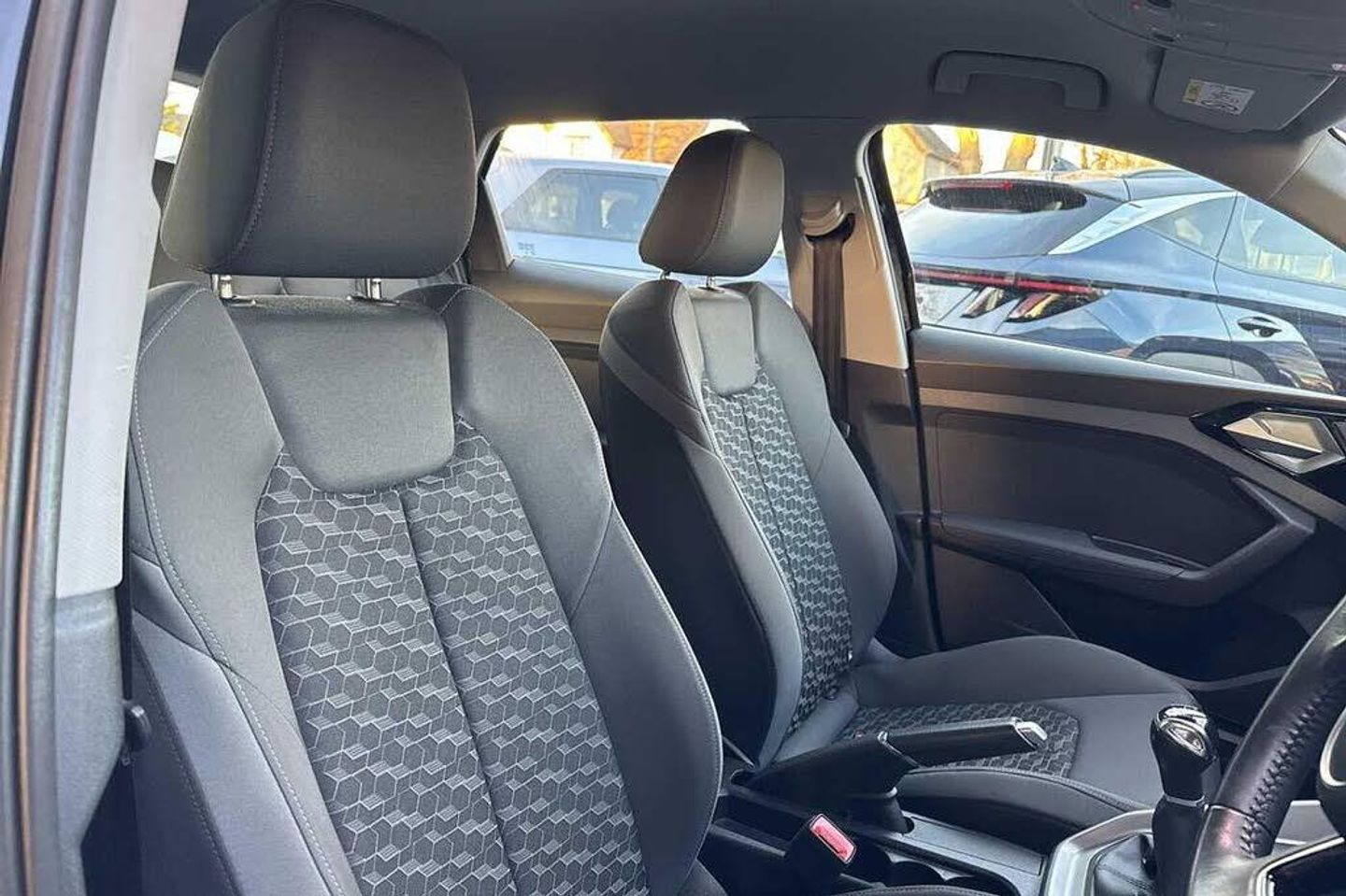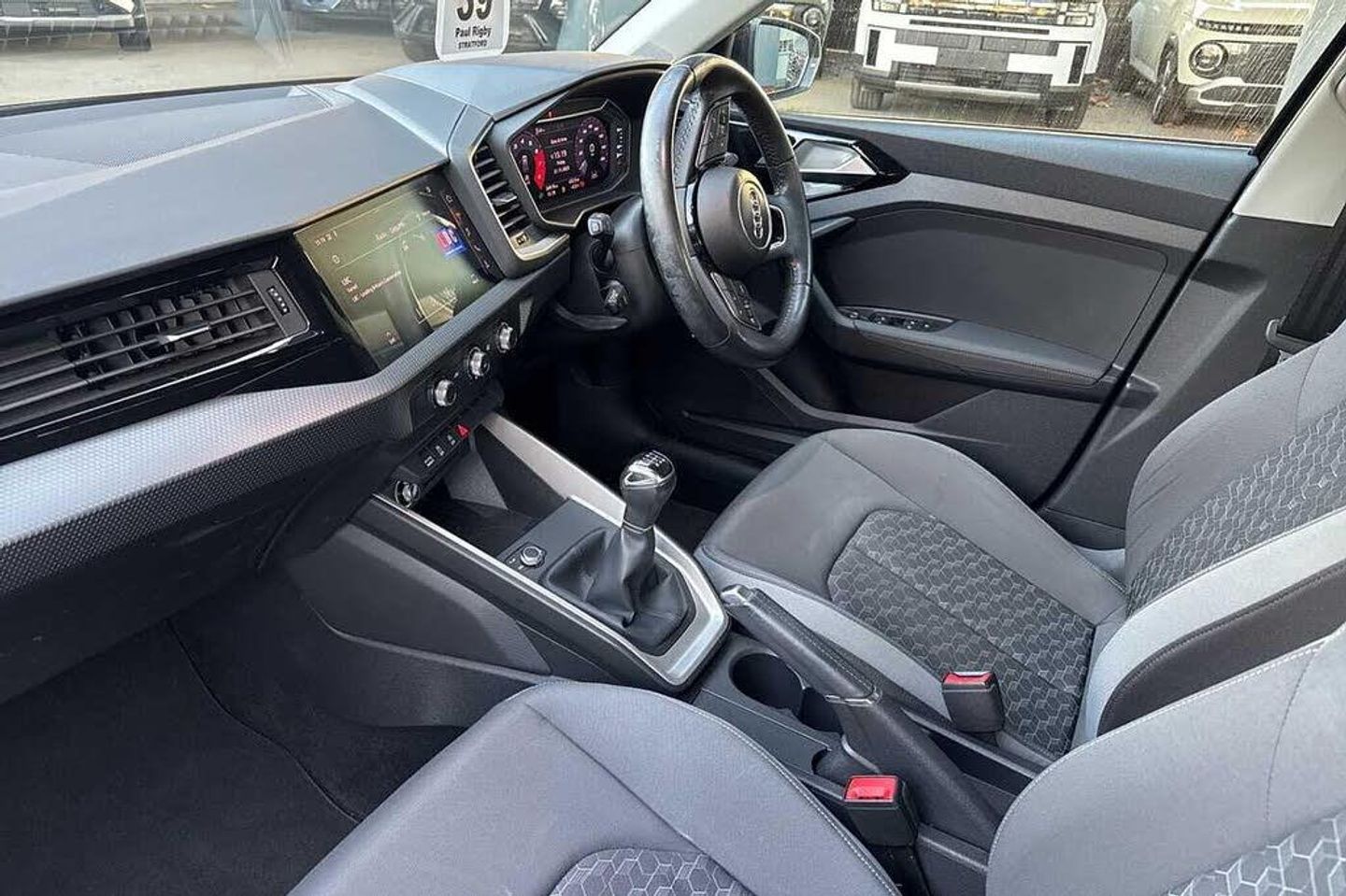 Metallic - Mythos black, Novum cloth - Granite grey + front sport seats, Electric front and rear windows, Heat insulating glass windscreen and side windows, Heated rear windscreen, Rain and light sensors, Rear wiper, Dynamic suspension, Body coloured bumpers, Front side air inlets in grained matt black and C frame in titanium black, Radiator grille in matt titanium black, Radiator protective grille frame in matt aluminium silver, Scandium grey tailpipe trim, Side front spoiler lips in grained matt black, Titanium black matt diffuser, LED headlights with LED rear lights + dynamic rear indicators, Rear fog lights, Brake assist function, Electronic Stability Control including ABS, EBD, ASR and EDL, Hill hold assist, Audi drive select, Electromechanical power steering, Lane departure warning system, Speed limiter, Auto dimming rear view mirror, Body coloured door mirrors, 3x3 point rear seatbelts, Audi pre-sense front with pedestrain and cyclist recognition, Driver and front passenger airbag with front side and head airbags, Front and rear seatbelt reminder, Front passenger airbag deactivation switch, Seatbelt height adjustment for front seats, Seatbelt monitoring, Tyre pressure warning light, Warning triangle and first aid kit, Front/rear floor mats, 12V socket in centre console with two cup holders, Door sills trims with aluminium inlays, Height and reach adjustable steering wheel, Leather gear knob with aluminium trim, Leatherette handbrake grip, Novum cloth upholstery with front sport seats, Titanium grey cloth headlining, Illuminated glovebox, Luggage compartment light with front and rear reading lights, Audi connect safety emergency and service including E-call, Audi smartphone interface, Bluetooth interface, Voice control system, 1 x SDXC card reader, 1 x USB type C and 1 USB type A charging points, Audi music interface, Bluetooth audio streaming, DAB Digital radio, MMI radio plus with 8.8'' colour MMI display screen and MMI touch, Automatic start/stop system, 10.25'' Digital instrument cluster display screen, Driver's information system, Service interval indicator, Washer fluid level indicator, Aluminium trim for control switches, air vents and digital instrument cluster, Silver grey accent areas including air vents, door handle recesses and centre console in diamond paint finish, Slate grey inlays polygon structure in fine paint finish, 3 rear seats, Driver and passenger seat with manual height adjust with forward and backwards adjustment, Front head restraints, ISOFIX child seat mounting in front passenger and rear outer seats, Lumbar adjustment for front seats, Rear head restraints, Split folding rear seats, Anti theft alarm, Anti theft wheel bolts and loose wheel warning, Immobiliser, Locking wheel bolts, Remote central locking with 2 remote folding keys