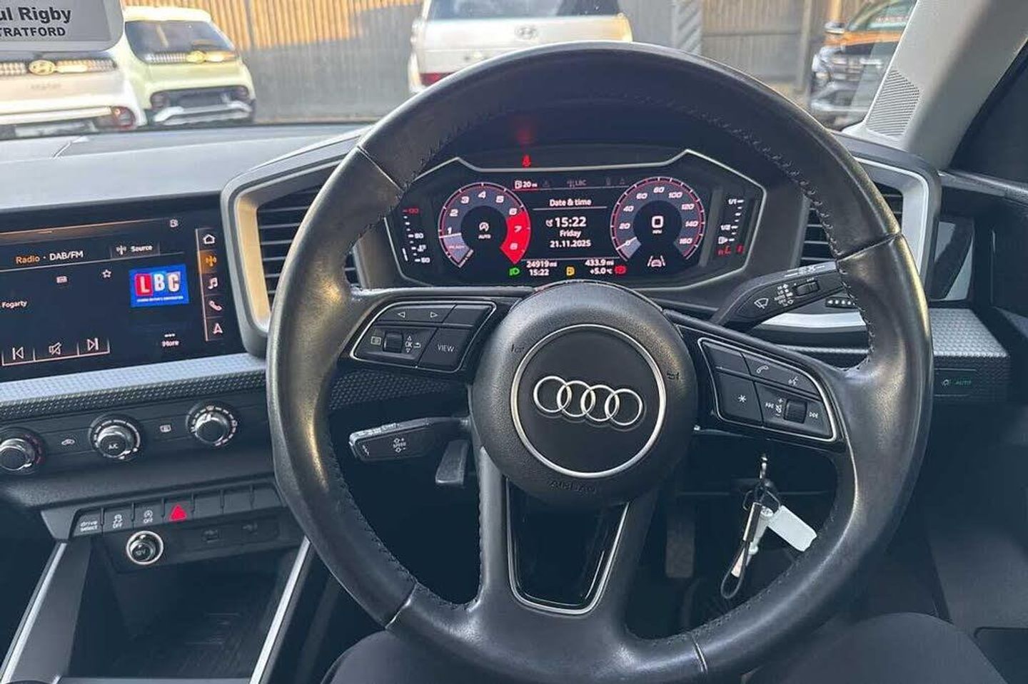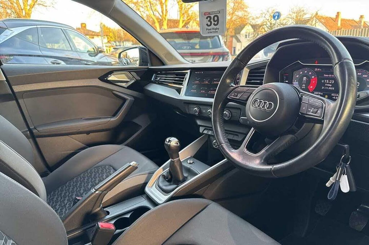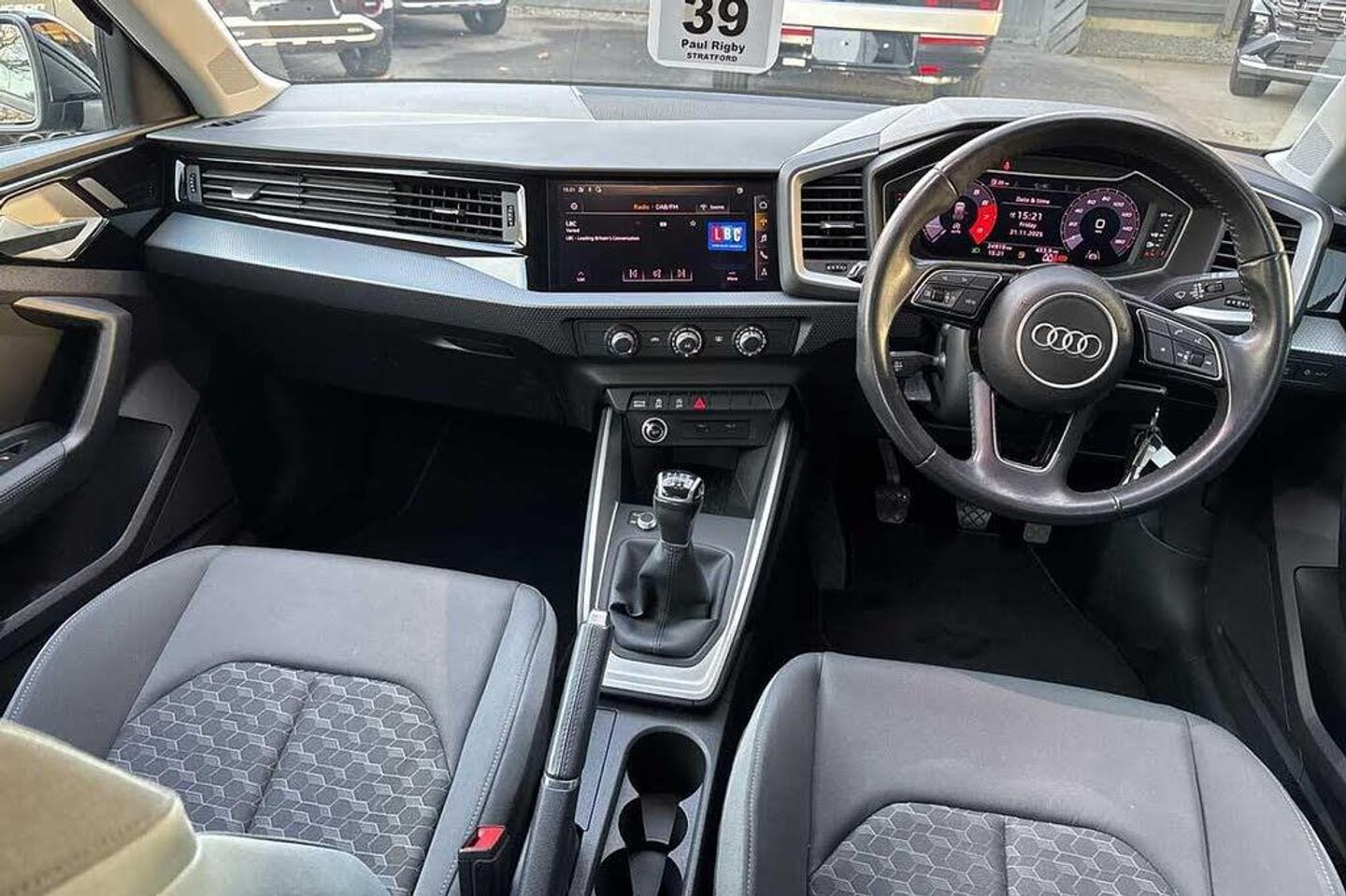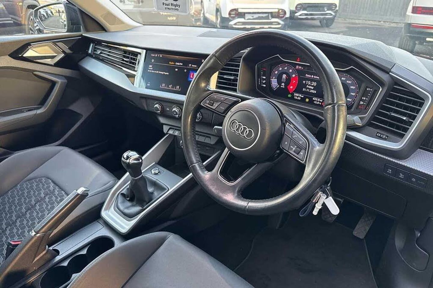 Metallic - Mythos black, Novum cloth - Granite grey + front sport seats, Electric front and rear windows, Heat insulating glass windscreen and side windows, Heated rear windscreen, Rain and light sensors, Rear wiper, Dynamic suspension, Body coloured bumpers, Front side air inlets in grained matt black and C frame in titanium black, Radiator grille in matt titanium black, Radiator protective grille frame in matt aluminium silver, Scandium grey tailpipe trim, Side front spoiler lips in grained matt black, Titanium black matt diffuser, LED headlights with LED rear lights + dynamic rear indicators, Rear fog lights, Brake assist function, Electronic Stability Control including ABS, EBD, ASR and EDL, Hill hold assist, Audi drive select, Electromechanical power steering, Lane departure warning system, Speed limiter, Auto dimming rear view mirror, Body coloured door mirrors, 3x3 point rear seatbelts, Audi pre-sense front with pedestrain and cyclist recognition, Driver and front passenger airbag with front side and head airbags, Front and rear seatbelt reminder, Front passenger airbag deactivation switch, Seatbelt height adjustment for front seats, Seatbelt monitoring, Tyre pressure warning light, Warning triangle and first aid kit, Front/rear floor mats, 12V socket in centre console with two cup holders, Door sills trims with aluminium inlays, Height and reach adjustable steering wheel, Leather gear knob with aluminium trim, Leatherette handbrake grip, Novum cloth upholstery with front sport seats, Titanium grey cloth headlining, Illuminated glovebox, Luggage compartment light with front and rear reading lights, Audi connect safety emergency and service including E-call, Audi smartphone interface, Bluetooth interface, Voice control system, 1 x SDXC card reader, 1 x USB type C and 1 USB type A charging points, Audi music interface, Bluetooth audio streaming, DAB Digital radio, MMI radio plus with 8.8'' colour MMI display screen and MMI touch, Automatic start/stop system, 10.25'' Digital instrument cluster display screen, Driver's information system, Service interval indicator, Washer fluid level indicator, Aluminium trim for control switches, air vents and digital instrument cluster, Silver grey accent areas including air vents, door handle recesses and centre console in diamond paint finish, Slate grey inlays polygon structure in fine paint finish, 3 rear seats, Driver and passenger seat with manual height adjust with forward and backwards adjustment, Front head restraints, ISOFIX child seat mounting in front passenger and rear outer seats, Lumbar adjustment for front seats, Rear head restraints, Split folding rear seats, Anti theft alarm, Anti theft wheel bolts and loose wheel warning, Immobiliser, Locking wheel bolts, Remote central locking with 2 remote folding keys