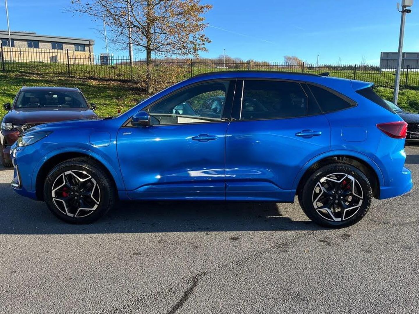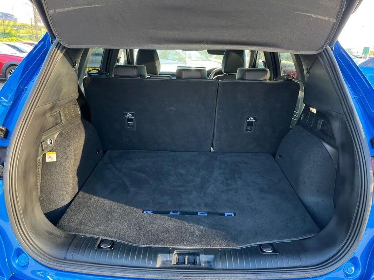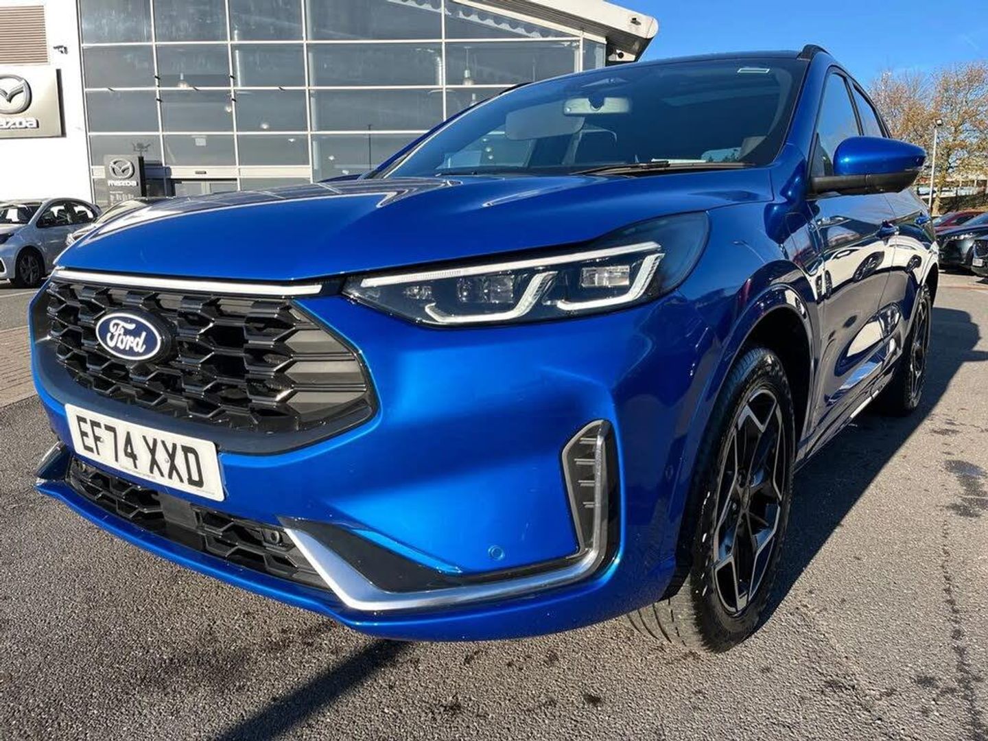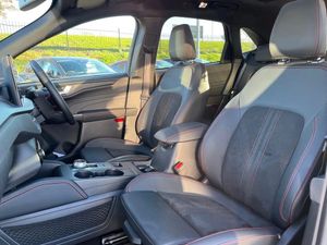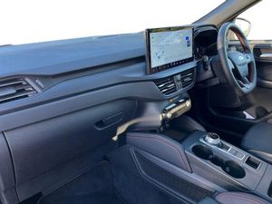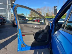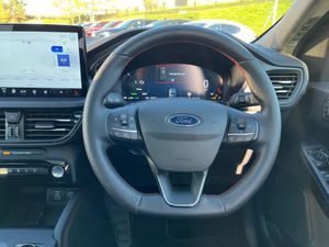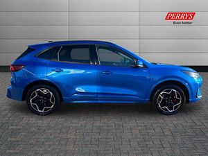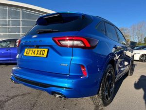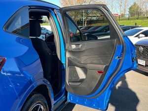 12.3" digital colour instrument cluster,360 degree camera,Clear exit assist,Cross traffic alert with active braking,e-Call (emergency call),Ford easy fuel,Ford SYNC 4 Navigation with 13" touchscreen, DAB radio, emergency assistance, Andriod Auto/Apple CarPlay, 5G modem & Ford Pass connect,Front and rear parking sensors,Hands free power tailgate,Lane centering assist,Lane keeping aid with lane departure warning,Power assist steering,Selectable drive modes,Service interval indicator,Sports suspension,B&O premium audio system with 10 speakers, subwoofer and 2 USB ports,Auto headlamps with high and low beam,Black roof rails,Body colour bumpers,Front LED fog lamps,Large rear spoiler,LED daytime running lights,LED rear lights,LED third brake light,Pop out door edge protectors,Power front/rear windows with global close,Power heated folding door mirrors with puddle lights, memory function and camera,Power opening panoramic roof,Quickclear heated windscreen,Rain sensing wipers,Rear privacy glass,Rear side wing doors,Rear wiper,ST-Line body styling kit,2nd row sliding seats,Electronic automatic temperature control (EATC),Front and rear head restraints,Partial premium touch sensico upholstery,Rear centre head restraint,Single front passenger seat,Sports seats,Driver assistance pack - Kuga Auto,Winter pack - Kuga,3x3 point rear seatbelts,Airbags - front driver/passenger, front and rear curtain,Drivers knee airbag,Dynamic brake support,Electronic stability control (ESC) and ABS,Evasive steering assist,Ford MyKey Gen 2 safety system,Manual child proof rear door locks,Pre collision assist with autonomous emergency braking,Rear seat Occupancy alert,Red brake calipers,Tyre pressure monitoring system,Engine immobiliser,Keyless entry and Ford power start button (Keyless start),Locking wheel nuts,Remote powered central double locking doors,Thatcham category 1 alarm,Desert Island Blue,Luggage Compartment Mat,Mini Spare Wheel,Retractable Towbar with Electrical Release Function,Single Phase Public Charge Cable and Cable Bag,Technology Pack