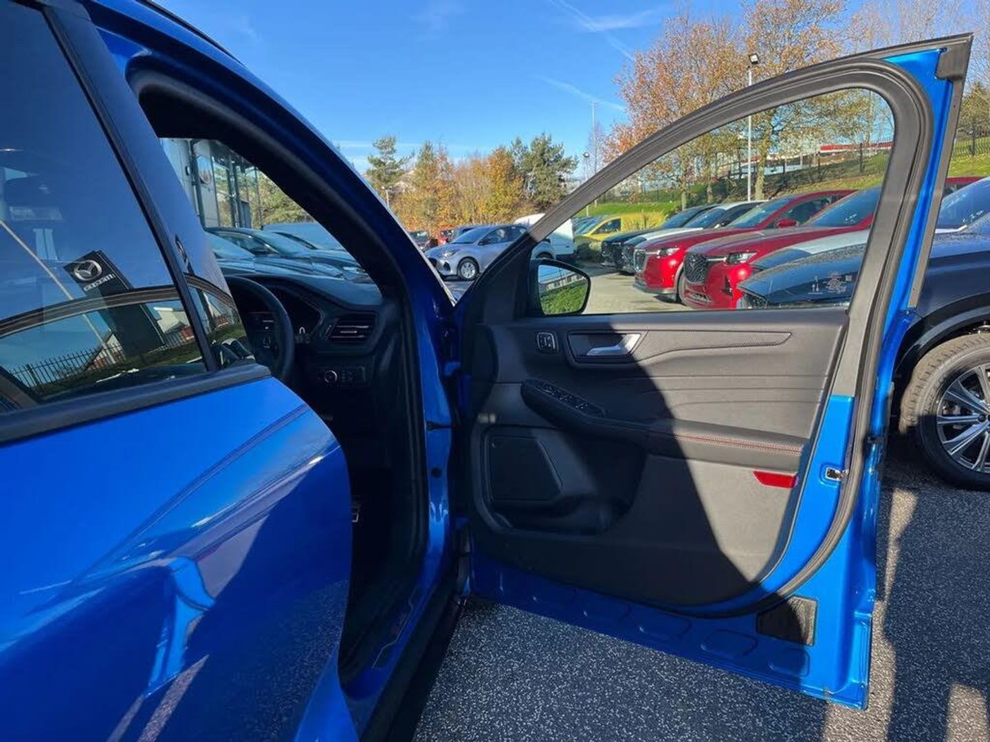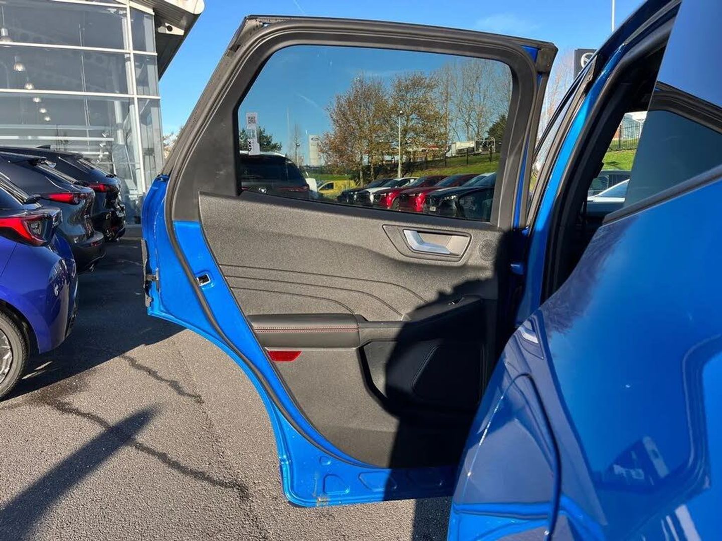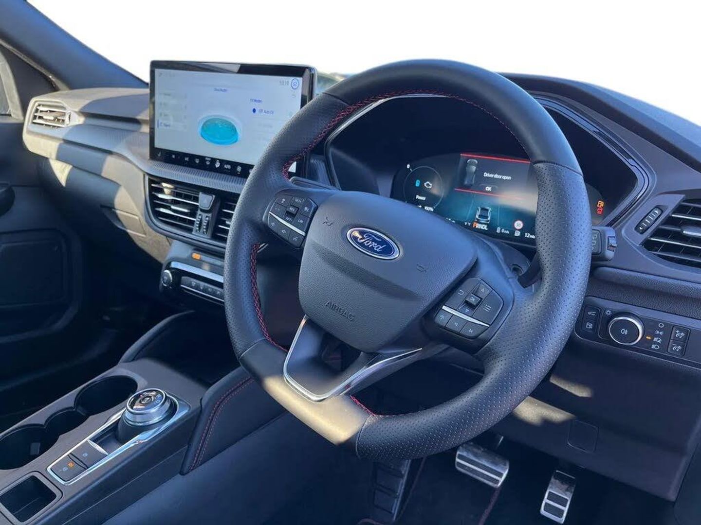 12.3" digital colour instrument cluster,360 degree camera,Clear exit assist,Cross traffic alert with active braking,e-Call (emergency call),Ford easy fuel,Ford SYNC 4 Navigation with 13" touchscreen, DAB radio, emergency assistance, Andriod Auto/Apple CarPlay, 5G modem & Ford Pass connect,Front and rear parking sensors,Hands free power tailgate,Lane centering assist,Lane keeping aid with lane departure warning,Power assist steering,Selectable drive modes,Service interval indicator,Sports suspension,B&O premium audio system with 10 speakers, subwoofer and 2 USB ports,Auto headlamps with high and low beam,Black roof rails,Body colour bumpers,Front LED fog lamps,Large rear spoiler,LED daytime running lights,LED rear lights,LED third brake light,Pop out door edge protectors,Power front/rear windows with global close,Power heated folding door mirrors with puddle lights, memory function and camera,Power opening panoramic roof,Quickclear heated windscreen,Rain sensing wipers,Rear privacy glass,Rear side wing doors,Rear wiper,ST-Line body styling kit,2nd row sliding seats,Electronic automatic temperature control (EATC),Front and rear head restraints,Partial premium touch sensico upholstery,Rear centre head restraint,Single front passenger seat,Sports seats,Driver assistance pack - Kuga Auto,Winter pack - Kuga,3x3 point rear seatbelts,Airbags - front driver/passenger, front and rear curtain,Drivers knee airbag,Dynamic brake support,Electronic stability control (ESC) and ABS,Evasive steering assist,Ford MyKey Gen 2 safety system,Manual child proof rear door locks,Pre collision assist with autonomous emergency braking,Rear seat Occupancy alert,Red brake calipers,Tyre pressure monitoring system,Engine immobiliser,Keyless entry and Ford power start button (Keyless start),Locking wheel nuts,Remote powered central double locking doors,Thatcham category 1 alarm,Desert Island Blue,Luggage Compartment Mat,Mini Spare Wheel,Retractable Towbar with Electrical Release Function,Single Phase Public Charge Cable and Cable Bag,Technology Pack
