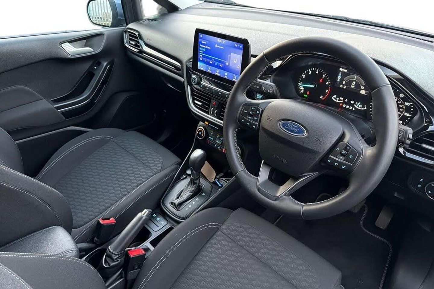 This 2022 Ford Fiesta Titanium boasts a full service history, with its last service completed on 24th November 2025 at 18,357 miles, and its MOT valid until May 2026, offering excellent peace of mind. This Euro 6 compliant 1.0L petrol hybrid model is presented in the Titanium trim, featuring a manual air conditioning system for your comfort. The Fiesta Titanium is equipped with a Winter Pack, including heated seats and a heated steering wheel, perfect for colder journeys. Its SYNC 3 system with navigation seamlessly integrates with Android Auto and Apple CarPlay, keeping you connected and on track. Further enhancing its appeal are LED headlights with daytime running lights and integrated fog lights, alongside automatic headlights for convenience. This model accelerates from 0 to 62mph in a brisk 9.6 seconds, demonstrating a responsive driving experience that sets it apart from similar vehicles.