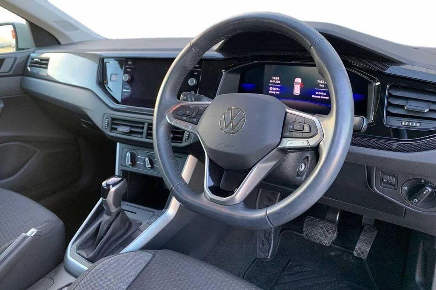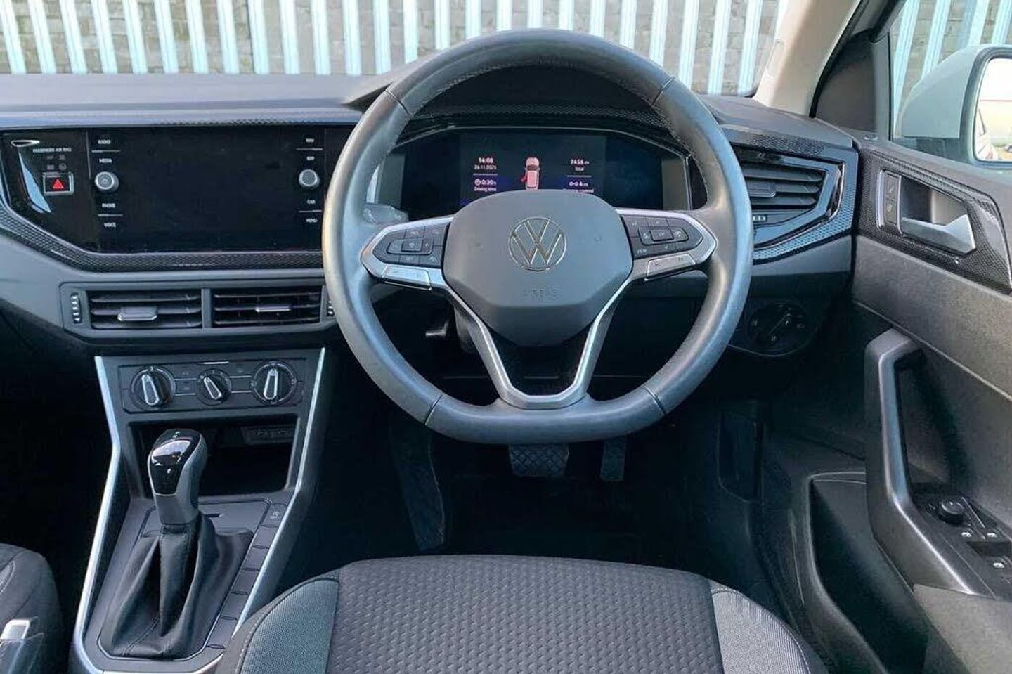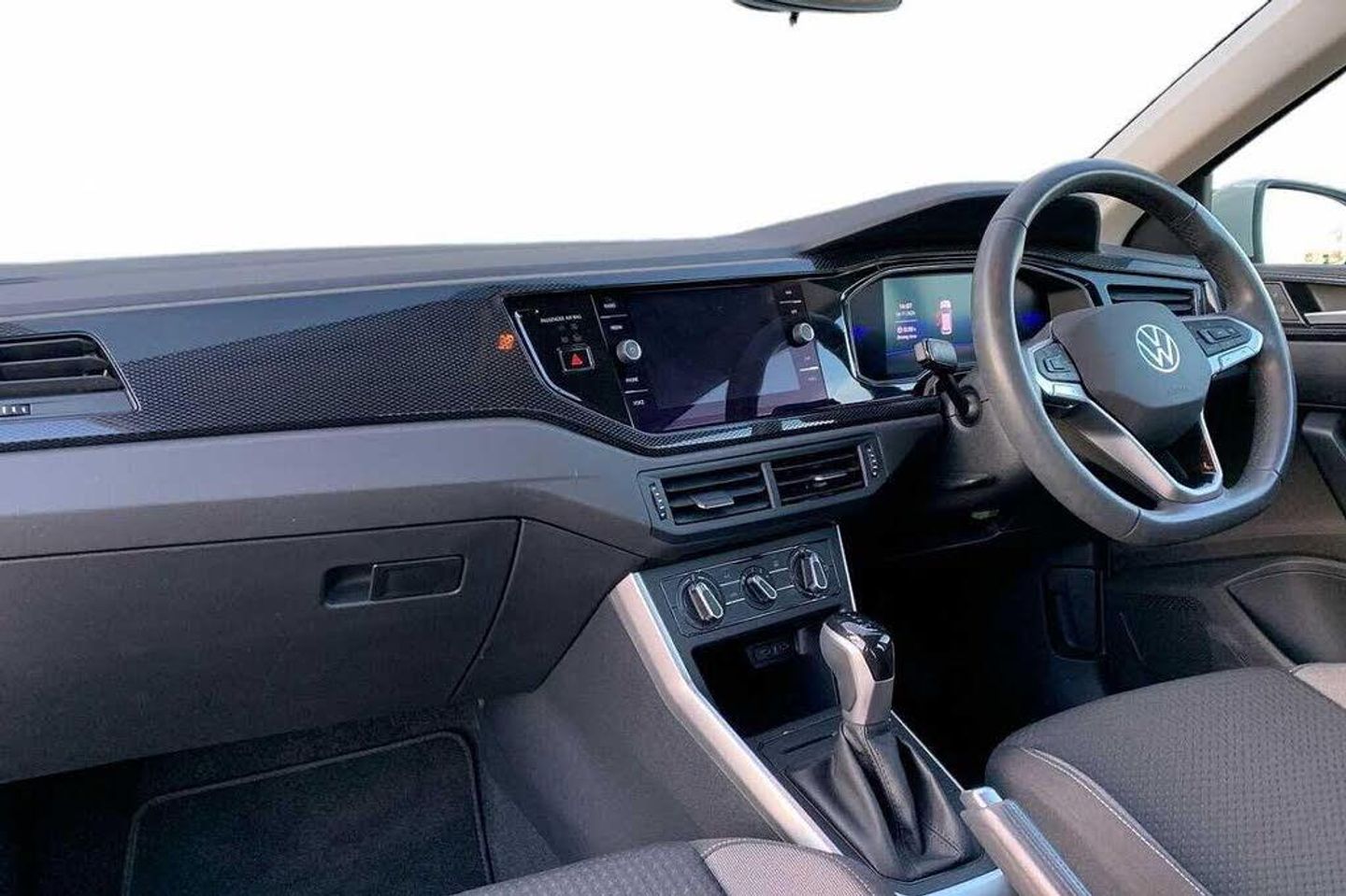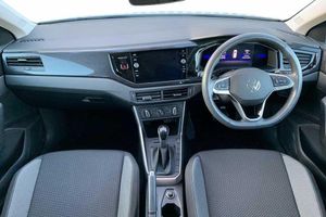 Rear view camera, Solid - Ascot grey, Hartley/Thomas cloth - Titan black, Electric front windows, Heat insulating darkened glass in side and rear windows, Heat insulating glass windscreen, Rain sensor, Rear electric windows, Rear windscreen washer and wiper with interval delay, Front wheel drive, Rear shock absorpion, Body colour bumpers, Body colour door handles, Rear side wing doors, Rear fog light, Third brake light, ABS, ESC (Electronic stability control) + EDL (Electronic Differntial lock) and ASR (Traction control), Front disc brakes, Hill hold control, Rear drum brakes, Adaptive cruise control with follow-to-stop and speed limiter, Driver alert system, Front assist system, Power assisted speed sensitive steering, Automatic dimming interior rear view mirror, Body colour door mirrors, Power folding adjustable/heated exterior mirrors and front passenger exterior mirror lowering function, 3 point height adj front seatbelts + pretensioners, 3x3 point rear seatbelts, Driver and front passenger airbag with front passenger airbag deactivation, Drivers and front passengers safety optimised head restraints, Extended and predictive pedestrian/ cyclist protection, Front curtain and side airbags with center airbag, Manual child lock in rear doors, Single tone horn, Tyre pressure loss indicator, Bluetooth mobile phone interface, Preparation for We connect and We connect plus, Wireless app connect, DAB Digital radio, Diversity antenna for FM reception, Front and rear 6 speakers, Standard rear axle, Travel Assist - Lane keeping system and traffic jam assist, Emergency call service, Speedo and rev counter, electronic odometer, trip, service interval display and fuel gauge, Travel assist including emergency assist, Trip computer, Warning signal and warning light for front and rear seatbelts not fastened, Washer fluid level indicator, Start-stop system with battery regeneration (recuperation - energy recovery during braking), Lava stone black gloss/matt decorative inserts in dash and front door panels, 3 rear head restraints, 60/40 split folding rear seat and rear seat bench not split, Driver and front passenger seat height adjustment, Front seat backrest storage pockets, Front standard seats, Isofix child seat preparation easy-fit (for two outer rear seats, and front passenger seat) compatible with I-size, Single front passenger seat, 12V power socket in centre console, 2 USB-C ports in the front, 2 USB-C charging sockets on the center console in the rear, Ceramique headliner, Chrome plated radiator grille inserts, air vent surrounds and light switch surrounds, Door and side trim panel, Front centre armrest, Handbrake lever handle in leather, Hartley/Thomas cloth upholstery, Leather trimmed gear knob, Luggage compartment cover, Luggage compartment floor, Standard pedal cluster, Three spoke leather wrapped multifunction steering wheel with shifting paddles, 2 front and 2 rear reading lights, Luggage compartment lighting, Driver/passenger sunvisors with illuminated vanity mirrors, Light and vision pack - Polo, Alarm with interior protection, Anti-theft alarm system with interior monitoring, backup horn, and towing protection, Anti-theft wheel bolts, Electronic engine immobiliser, Low rolling resistance tyres, Rear View Camera Displayed Via the Colour Screen Infotainment System