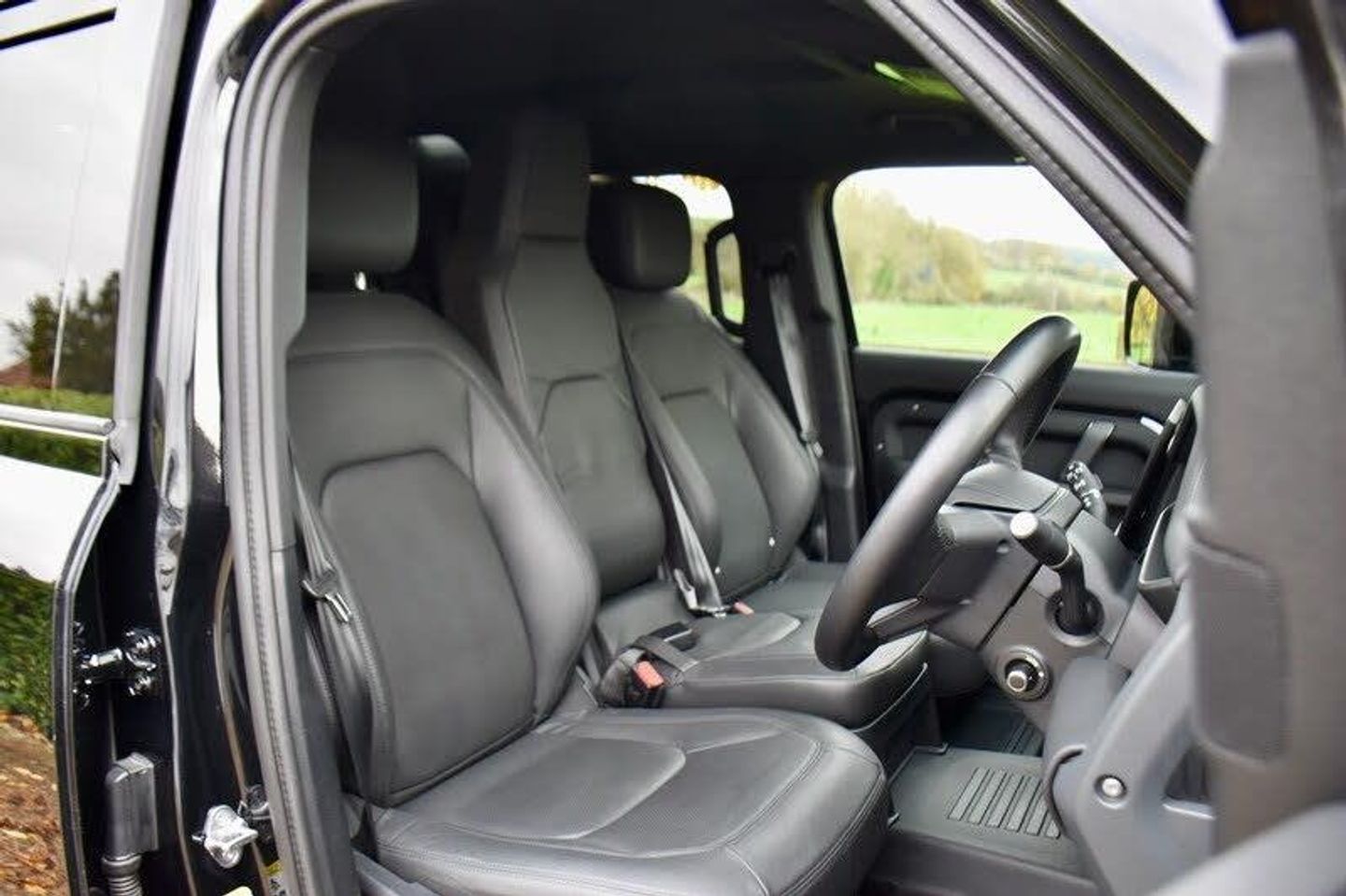 2025 '74' reg with 7,152 miles Santorini Black with Ebony Leather, Front Jump This Defender is fitted with a High Quality 'Atlantech' Rear Seat Conversion in Ebony Perforated Leather to Match the Front Seats, plus ISOFIX. Also a Front 'Jump' Seat which makes this Defender Hard Top a 6 Seater. Removable Hitch Tow Bar, Air Suspension Pack, 22in Style 5098 5 Spoke Alloy Wheels Gloss Black, 22in Full Size Spare Wheel, Extended Black Exterior Pack and Extended wheel Arches in Santorini Black. This Defender is not only converted to 6 seats, but is also VAT Qualifying, which can make a huge difference when it comes to putting it through your business. (Consult your accountant).