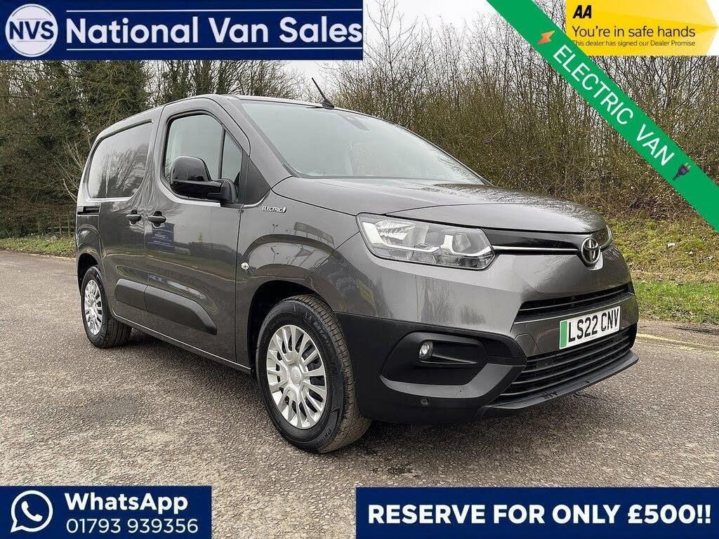 ** Quick question? Friendly help. Call or WhatsApp: 01793939356 **This 2022 Toyota PROACE CITY is a remarkable example, boasting a full service history and having had only one owner from new. This electric Icon Short Panel Van, with its automatic transmission and 50 kWh battery, offers a maximum range of 171 miles when new. It comes with a 12 month MOT provided on purchase and the last service was completed on 29 November 2025 at 33,334 miles. Notable features include front and rear parking sensors with dynamic guide lines on the reversing camera, and Bluetooth connectivity for seamless communication. Manual air conditioning ensures a comfortable cabin environment.The PROACE CITY is powered by a 134 bhp electric engine, providing responsive performance. Charging is convenient, with a full charge at home taking approximately 7 hours and 6 minutes using a 7kW charger, and a rapid charge to 80% possible in just 30 minutes at a public charging station. These charging capabilities, combined with its single owner provenance and comprehensive service history, demonstrate how this PROACE CITY stands out from other vehicles in its class. A 3 month warranty is also included for your peace of mind.-100KW Rear Cam Air Con.