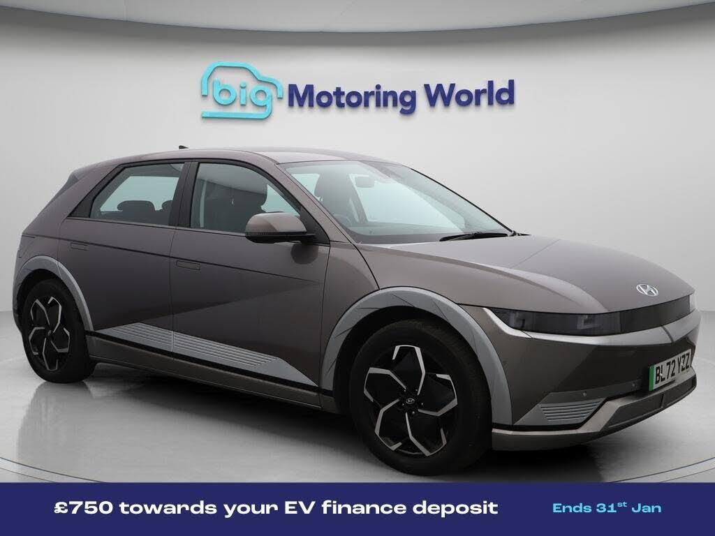 £750 towards your finance depo-Our Hyundai IONIQ 5 is finished in Green. Specification includes a range of fantastic features including £750 towards your finance deposit, 19'' Alloy wheels, Adaptive Cruise Control, Lane Assist, Satellite Navigation, Heated Seats, Wireless Phone Charging, Rear View Camera, Heated Steering Wheel, Bluetooth Specification information is supplied by CAPHPI and may vary to the actual car. This data does not form any part of a buying contact. Please check specification prior to purchase in-store. The MOT is valid until November 2026, visit bigmotoringworld.co.uk for more photos, a 360 tour, service history and a free HPI report.Were BIG on peace of mind and this Green Hyundai IONIQ 5 has completed our comprehensive 200 point inspection and passed all checks. Its ready for you to drive away with immediate collection in-store. We include a 90-day warranty as standard plus an option to extend for up to 3 years.Reserve this car exclusively for you, safely and securely at bigmotoringworld.co.uk, with a fully refundable £99 deposit. Test drive before you buy, with no commitment, no hassle and a completely haggle free experience. Still searching and want to see thousands more cars? We are BIG on choice with over 8000 cars to choose from.Visit our award winning web site bigmotoringworld.co.uk.Were Big Motoring World and were BIG on what matters to you.