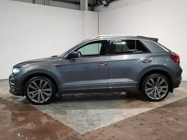 Discover navigation, 8" touch screen navigation/infotainment system with Car-Net, European map, CD/radio, 2D/3D map and speed limiter, Active Info Display, 10.3" high resolution TFT dash display screen with customised information, 2 USB connection charging sockets, Adaptive cruise control, App-Connect, Automatic start/stop system, Bluetooth telephone and audio connection for compatible devices, Car information display, Car-Net Security and Service, Driver alert system with audible and visual fatigue detection system, Driver profile selection, Front assist, radar sensor controlled distance monitor, city emergency braking + predictive pedestrian protection, Lane assist, Multifunction computer with visual gear change recommendation for fuel consumption, Progressive power assisted steering, Service interval indicator, Think blue trainer driver tips and journey analysis, Voice activation, Bluetooth - Simultaneous pairing of 2 compatible mobile devices, Multi device interface (MDI) with USB connection, Music playback - MP3, WMA and AAC files, Premium USB cable in choice of either Apple or Android smartphone compatibility, SMS functionality - read, compose and send SMS messages using touch-screen display, SD card slot, Three route options - Fast, Short, Eco, Title and cover art display, Dynamic navigation based on TMC+, Dusk sensor, Front fog lights with static cornering function, Front windscreen wiper with intermittent wipe and 4 position delay, Manual coming/automatic leaving home lighting function, Rear tinted glass from B-pillar backwards approx 65% tinted, Rain sensor, Climate control - 2 zone electronic air conditioning with automatic air recirculation and allergy filter, Front sport seats, Height/reach adjust steering wheel, Height adjustable front seats, Isofix easy fit child seat preparation for 2 outer rear seats, R line styling pack - T-Roc, Winter pack - T-Roc, 19" Suzuka alloy wheels with low rolling resistance tyres and anti wheel bolts