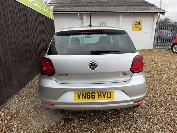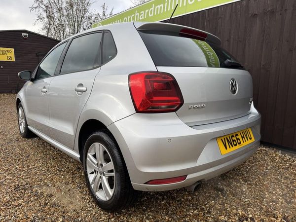 We are pleased to offer for sale this Volkswagen Polo 1.2 TSI BlueMotion Tech Match finished in Silver, Petrol, 5 Door (Manual), 66,000 WARRANTED MILES with black cloth interior, SATELLITE NAVIGATION, BLUETOOTH, DAB RADIO, FRONT & REAR PARKING SENSORS, CRUISE CONTROL, PRIVACY GLASS, AUTO LIGHTS. This GREAT EXAMPLE comes complete with VW MAIN DEALER SERVICE HISTORY at 4K, 9K, 15K, 19K, 23K, 27K, 28K, 37K, 47K & 57K Miles and has a MOT until JULY 2026. AA APPROVED DEALER, LOW RATE FINANCE AVAILABLE, HPI CLEAR, WARRANTY INCLUDED, P/X Welcome. 12 MONTHS FREE AA BREAKDOWN COVER INCLUDED IN PRICE. VIEWINGS BY APPOINTMENT ADVISED. Only 7,995