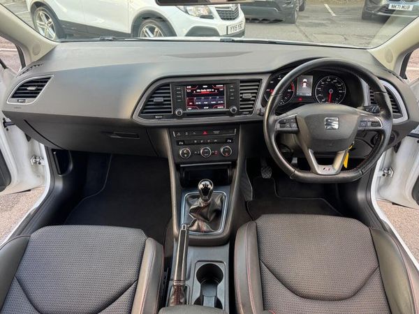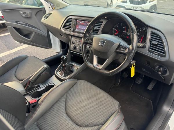12V Power Supply in Centre Console - Front, 17in Alloy Wheels - Dynamic, 3.5in Monochrome Drivers Display, AUX-In Port, Active Front Head Restraints, Airbags - Curtain, Airbags - Driver, Airbags - Front Passenger, Alarm - Perimeter Tow Away Protection, Ambient Spot Lighting and Footwell Illumination, Anti-Lock Braking System - ABS, Armrest - Front with Storage Compartment, Bluetooth Audio Streaming, Body-Coloured Door Handles, Bumpers - Exclusive FR Front and Rear, Child Locks on Rear Doors, Cruise Control, Cupholders - Front x2, Dark Tinted Rear Windows, Daytime Running Lights, Deadlocks, Door Mirrors - with Integrated LED Indicators, Door Sill Trim - Aluminium, Drivers Knee Airbag, Drivers Seat Lumbar Adjustment, Dual Zone Climate Control, Dust and Pollen Filter, EBA - Electronic Brake Assist, Electric Windows - Front and Rear with One-Touch and Anti-Squeeze, Electrically Folding Door Mirrors, Electrically Folding and Heated Door Mirrors, Electro-Mechanical Power Steering - Speed-Sensitive, Electronic Differential Lock System - XDS, Electronic Stability Control - ESC, Emergency Tyre Repair Kit, Exhaust Pipe - Twin Chrome Finished, Exterior Temperature Indicator, FM-AM Radio, Front Fog Lights with Cornering Function, Front Passenger Airbag De-Activation, Front Side Airbags, Fuel Filler Flap linked to Central Locking, Gearshift Indicator, Gloss Black B and C-Pillars, Head Restraints - Height Adjustable Front, Head Restraints - Height Adjustable Rear x3, Headlights - Coming Home Function, Headlights - Twin Halogen, Height Adjustable Passenger Seat, Height and Reach Adjustable Steering Wheel, Height-Adjustable Drivers Seat, Hill Hold Control, ISOFIX Points with Top Tether on Rear Seats, Illuminated Boot, Illuminated Glovebox, Inserts - Dash - Chrome Detailing, Instrument Lighting with Brightness Control, Integrated Bluetooth Handsfree System, LED Taillights, Leather Handbrake, Leatherette Bolsters, Lights Left On Warning Buzzer, Locking Wheel Bolts, Low Fuel Warning Light, Luggage Compartment - Net, Luggage Compartment - Rings, MP3 Compatible CD Player, Parking Sensors - Front and Rear with Optical Parking System, Passenger Door Mirror with Kerb Function when Reversing, Radiator Grille - Chrome Centre Surround, Reading Light - Front and Rear, Rear Parking Sensors, Rear Wiper, Remote Central Locking, Remote Key - Folding x2 with Remote Window Functionality, SD Card Slot, SEAT Drive Profile - Sport-Comfort-Eco-Individual, SEAT Logo Tailgate Release, Seatbelt Reminder - Front, Seats - Passenger Lumbar Adjustment, Seats - Pockets on Front Backrest, Seats - Split Folding Rear, Seats - Sports, Speakers x8, Sports Suspension, Steering Wheel - Flat-Bottomed Perforated Leather with Red Stitching and FR Logo, Steering Wheel Mounted Audio and Phone Controls, Storage Box Under Front Seat, Sunvisors with Illuminated Vanity Mirrors, Sunvisors with Vanity Mirrors, TCS - Traction Control System, Touch Screen - Colour 5in, Trip Computer, Tyre Pressure Monitoring System, USB Port, Navigation System