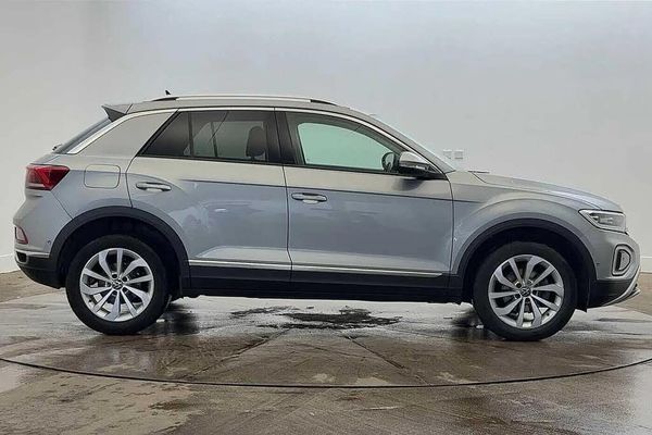 Advanced Safety, Lane Assist, Parking Sensor, Park Assist, Puddle Lights, AC/Climate, Ambient Lighting, Wireless Charger, DAB, MP3, Apple CarPlay/Android Auto, Start/Stop;Meet the Volkswagen T-Roc 1.5 TSI Style ? a smart, stylish and feature-rich compact SUV that delivers big on comfort, connectivity and driving confidence. Finished in eye-catching Pyrite Silver Metallic, it carries a modern, refined presence on the road, complemented by a sleek Titanium Black?Anthracite interior that feels both premium and practical. Powered by the smooth and efficient 1.5 TSI engine, it offers an enjoyable and responsive drive whether you're navigating busy streets or covering long motorway miles. Technology takes centre stage in this T-Roc. It features Discover Media Navigation with streaming and internet capability, keeping you fully connected wherever your journey leads. Wireless App-Connect ensures seamless smartphone integration, while the built-in e-SIM provides access to online services without needing your mobile data. A crisp six-speaker audio system enhances your in-car entertainment, and the multifunction front-facing camera supports intelligent features like Dynamic Road Sign Display and distance control. With High Beam Assist, visibility is optimised by automatically switching between dipped and main beam, making night driving safer and easier. This model also excels in safety and driver assistance. Adaptive Cruise Control (ACC) with speed limiter takes the stress out of longer trips, while Front Assist with Autonomous Emergency Braking helps protect you in busy urban environments. The proactive passenger protection system adds peace of mind b...