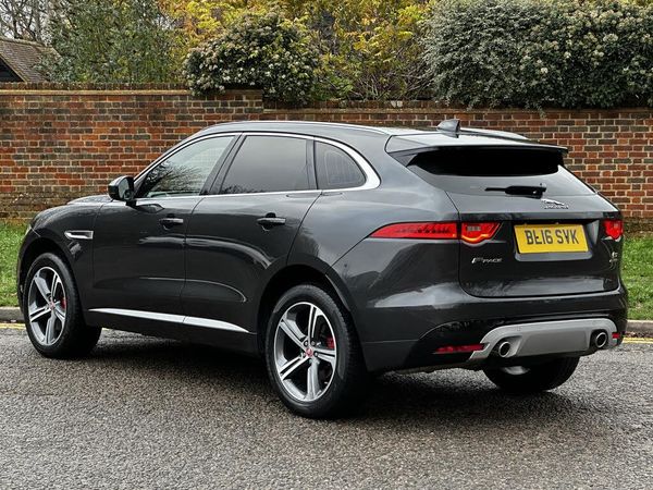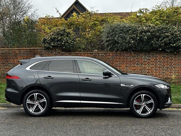 Auto speed limiter, Front parking aid, Lane departure warning system, Outside temperature gauge, Power tailgate, Rear parking aid, Service interval indicator, Touch screen display, Traffic sign recognition, Trip computer, Variable PAS, Adaptive dynamics, All terrain progress control, Bluetooth connectivity including audio streaming, DAB Digital radio, Dynamic volume control, 'S' Body kit, Approach Illumination, Auto dimming rear view mirror, Automatic headlights, Body colour bumpers, Body colour door mirrors, Electric front/rear windows with one touch/auto up/down, Front fog lights, Green tinted heat insulating glass, Headlight washers, Heated rear window with timer, LED tail lights, Rain sensor windscreen wipers, Rear wiper, Satin chrome side power vents, Trailer stability assist, Variable front intermittent wipers, 12V power point front/rear, 12V power point in luggage area, 2nd row air vents, 3 rear headrests, 40:20:40 split folding rear bench seat, Fold flat front seats, Front centre armrest with storage compartment, ISOFIX on outer rear seats, Jaguar sense, JaguarDrive selector, Leather multi function steering wheel, Overhead console with sunglasses holder, Perforated taurus sports leather upholstery, Premium carpet mats, Rear armrest with cupholder, Shopping hook in boot, Sports pedals, Steering wheel gearshift paddles, Tie down hooks in luggage area, 350mm front brakes, 3x3 point rear seatbelts, ABS, Anti-whiplash front headrests, Autonomous emergency braking (AEB) with forward facing camera, Brake pad warning light, Driver/Front Passenger airbags, DSC - Dynamic Stability Control, Electronic parking brake, Emergency brake assist, Front and rear curtain airbags, Front and rear seatbelt reminder, Front passenger seat occupancy sensor, Front side airbags, Hill start assist, Power child locks, Red painted brake calipers, Torque vectoring brake, Traction control, Tyre pressure monitoring system, Immobiliser, Keyless Start, Perimeter alarm, Remote central locking, Valet mode