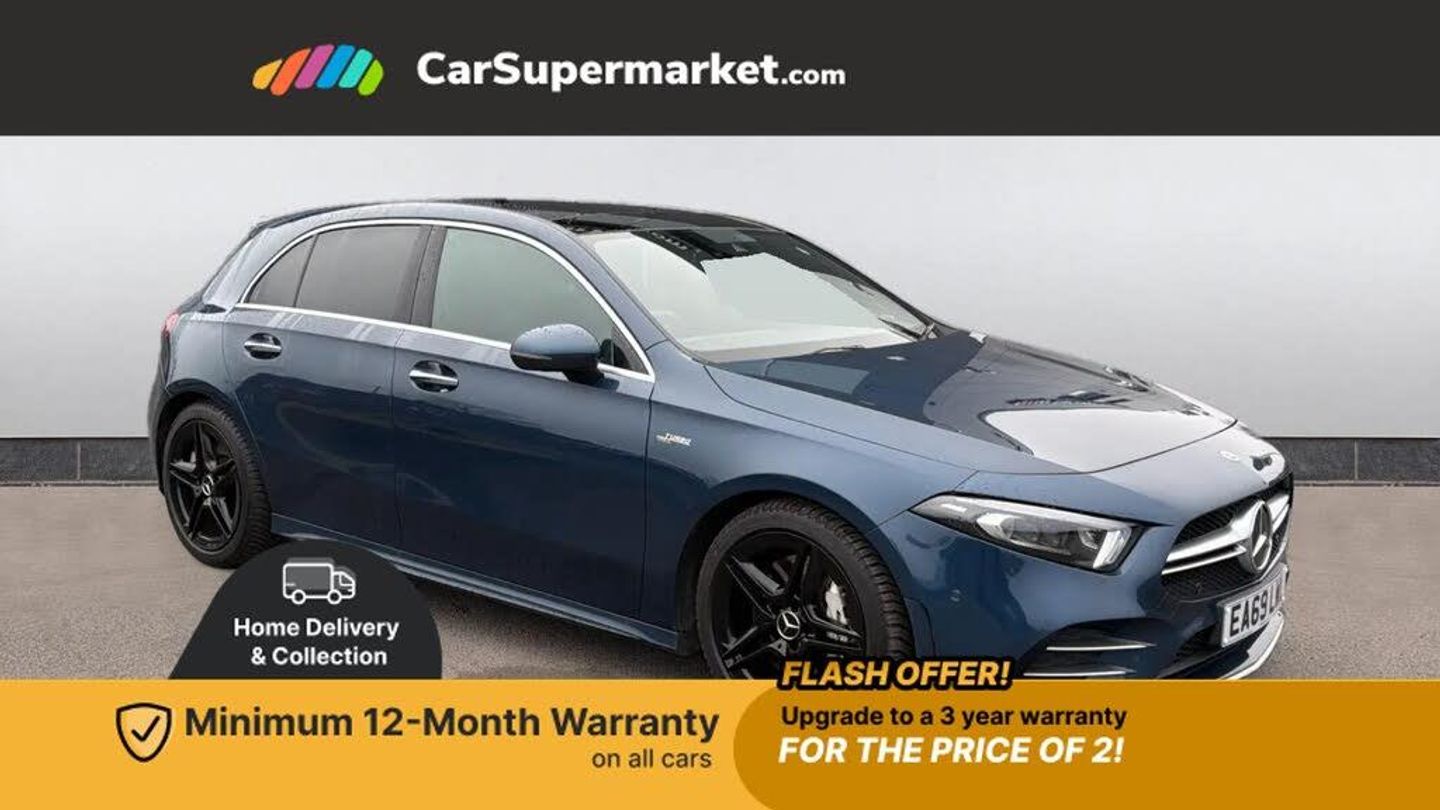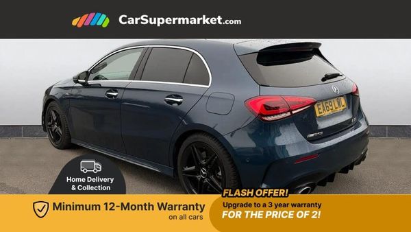 10.25" Digital instrument cluster display screen,180 degree rear view camera with parking guidelines,Active lane keep assist,Active park assist with parktronic system including front and rear parking sensors,Attention assist,Brake pad wear indicator warning light,Direct steering,Dual bluetooth interfaces,DYNAMIC SELECT with driving programs (Slippery, Comfort, Sport, Sport+ and Individual),ECO start/stop function,Fluid level warning indicator for fuel, oil, coolant and washer fluid,Hard-disk navigation,Hey Mercedes Voice activation,Lamp failure indicator,Mercedes me connect including emergency call system, accident recovery, breakdown and maintenance management,Outside temperature gauge,Owners manual in English,Radio aerial integrated into roof spoiler,Service indicator (ASSYST),Speed sensitive power steering,Trip computer,2 USB ports (type C) in rear stowage compartment and one in front of center console,Burmester surround sound system - 590W,DAB Digital radio,MBUX multimedia system with DAB digital radio and touchpad including satellite navigation,4 Electric Front and Rear windows,Adaptive brake lights,AMG Front apron with flics as air deflector elements on the outer air intakes,AMG radiator grille with twin blade lamella and AMG Lettering,AMG spoiler lip on roof,AMG Sports exhaust system with two round tailpipes measuring 90 mm in diameter attached in rear apron, AMG lettering plus ribbing on the inside of the,Body colour bumpers,Body colour door handles,Body colour side skirt,Electric adjustable and heated door mirrors with integrated LED side indicators,Front wings wheel arches with TURBO 4MATIC lettering,Headlamp assist automatic headlamp activation,Heated glass rear windscreen + timer control,Illuminated front door sill panels with Mercedes-Benz lettering,LED tail lamp,LED third brake light,Multibeam LED with adaptive highbeam assist plus,Panoramic sliding sunroof,Privacy glass,Rain sensing windscreen wipers with two sensitivity settings,Rear fog lights,Rear wiper,Wider wheel arches for AMG wheels,40:20:40 split folding rear seats,AMG Performance steering wheel in nappa leather,Auto Mercedes-Benz child seat recognition sensor,Black air vents with surround in silver chrome,Black roof lining,Brushed stainless steel sports pedals with rubber studs,Controller on centre console with chrome surround,Electrically adjustable front memory seats including lumbar support,Front centre armrest with storage compartment,Front seat backs luggage nets,Front seat cushion length adjustment,Height/reach adjustable steering column,Interior lighting - 64 colour Ambient lighting,Rear armrest with 2 cupholders,Rear head restraints,Seat occupancy sensor for front passenger seat,Silver coloured aluminium gear shift paddles on steering wheel,Spectacles compartment for driver,Sports seats with integrated headrests,Stowage compartment in centre console with retractable cover,Sunvisors with illuminated vanity mirrors,Touchpad on center console,Twin front cupholders,Two zone thermotronic luxury automatic climate control,Light and sight pack - A Class Premium/Premium Plus,Mirror package - A Class,Seat comfort pack - A Class,3 rear 3 point seatbelts,ABS with Brake Assist,Active bonnet,Adaptive brake assist with hold function and hill start assist,Childproof locks manually operated for rear doors and electrically operated for rear power windows,Crash responsive emergency lighting,Driver and passenger head and side airbags,Drivers knee airbag,Dual stage driver/passenger airbags,Electronic parking brake,ESP curve dynamic assist,ESP with ASR,Front and rear seatbelt reminder,Front brake calipers with AMG lettering,ISOFIX and top tether child seat fixing points in two outer rear seats,Perforated front brake discs,Tyre pressure monitoring system,Warning triangle and first aid kit,Window airbags,Alarm system/interior protection/immobiliser,Keyless entry lock/unlock,Keyless Go,Remote central locking and crash sensor with emergency opening function,Light aluminium with longitudinal grain interior trim,Summer tyres,Tirefit sealant kit