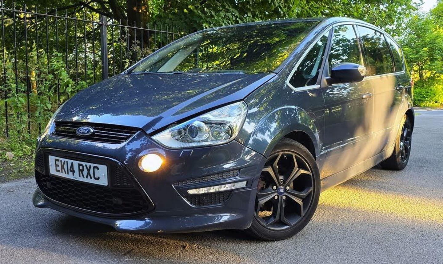 2014 FORD S-MAX 2.2 TDCI (200 BHP) TITANIUM X SPORT MANUAL + STUNNING NARDO GREY WITH CONTRASTING ALCANTARA HALF LEATHER SPORTS SEATS + JUST HAD BRAND NEW CLUTCH AND FLYWHEEL FITTED + PANORAMIC SUNROOF + MEDIA PACK + SATELITTE NAVIGATION + REVERSING CAMERA + MULTIFUNCTION STEERING WHEEL + CRUISE CONTROL + 19 INCH GLOSS BLACK ALLOY WHEELS + GLOSS BLACK MIRRORS + AIR COOLED AND HEATED ELECTRIC SEATS + PRIVACY GLASS + FRONT FOGS + XENON LIGHTS + KEYLESS GO + ELECTRIC WINDOWS + FOLDING MIRRORS + CRUISE CONTROL + 7 SEATS + LOAD COVER + SUPER PRACTICAL FAMILY MPV + 12 MONTHS MOT AND 3 MONTHS AA WARRANTY AT THE ONSCREEN PRICE + ANY TRIAL/INSPECTION WELCOME + NATIONWIDE DELIVERY AVAILABLE (Please ask for a quote) + 7290 + Ford Power starter button, Bluetooth hands free phone with voice control system, Electric tailgate release, Ford convers+ (256 colour instrument panel), Front and rear park assist, PAS, Diesel particulate filter, Combined ipod/USB connection, Remote audio controls on steering wheel, Automatic illuminating hazard lights in sudden deceleration, Bi-Xenon headlights w/ static bending lights + headlight washers, Body colour door handles, Body colour electric adjustable heated door mirrors, Body coloured bumpers, Chrome grille surround, Chrome side window surrounds, Dual exhaust pipes, Electric front and rear windows + one touch + global open/closing, Electrochrome rear view mirror, Front fog lights, Heated windscreen + heated windscreen washer jets, LED daytime running lights, Panoramic glass roof with sunblind, Puddle lights, Rear spoiler, Solar reflect windscreen with automatic wipers and headlights, Tailgate wash/wipe, Tinted privacy glass, 12V accessory sockets - front and rear, 2 individual folding 3rd row seats, 3 individual fold flat 2nd row seats, 4 spoke leather steering wheel, Alcantara/Napoli leather upholstery, Alloy pedals, Ambient lighting, Centre console with armrest/storage box + cupholder, Child observation mirror, Chrome finish to interior door handles, Drivers seat with electric height adjustment + manual lumbar support, Dual air conditioning with automatic temperature electronic control, Footwell lights, Front passenger seat manual height adjustment with lumbar support, Front/rear floor mats, Fully adjustable front head restraints, Height adjustable rear head restraints, Illuminated entry system, Isofix rear child seat preparation in 2nd row, Leather gear knob, Luggage area lamp, Luxury woven headliner, Overhead console with sunglasses holder, Reach + rake adjustable steering column, Rear air vents, Rear stowage boxes, Sports front seats, Stainless Steel Scuff Plates, Tie down hooks in luggage area, Tonneau cover, Body styling pack - S-Max, 3 point seatbelts on all seats, ABS/EBD, Driver/Front Passenger airbags, Drivers knee airbag, ESP+EBA, Front and rear (row 2) curtain airbags, Front side airbags, Rear child proof door locks, Immobiliser, Locking wheel nuts, Remote control central/double locking, Thatcham category 1 alarm system with perimetric + volumetric protection, Piano black interior trim, 18 5 spoke alloy wheels, Tyre repair kit