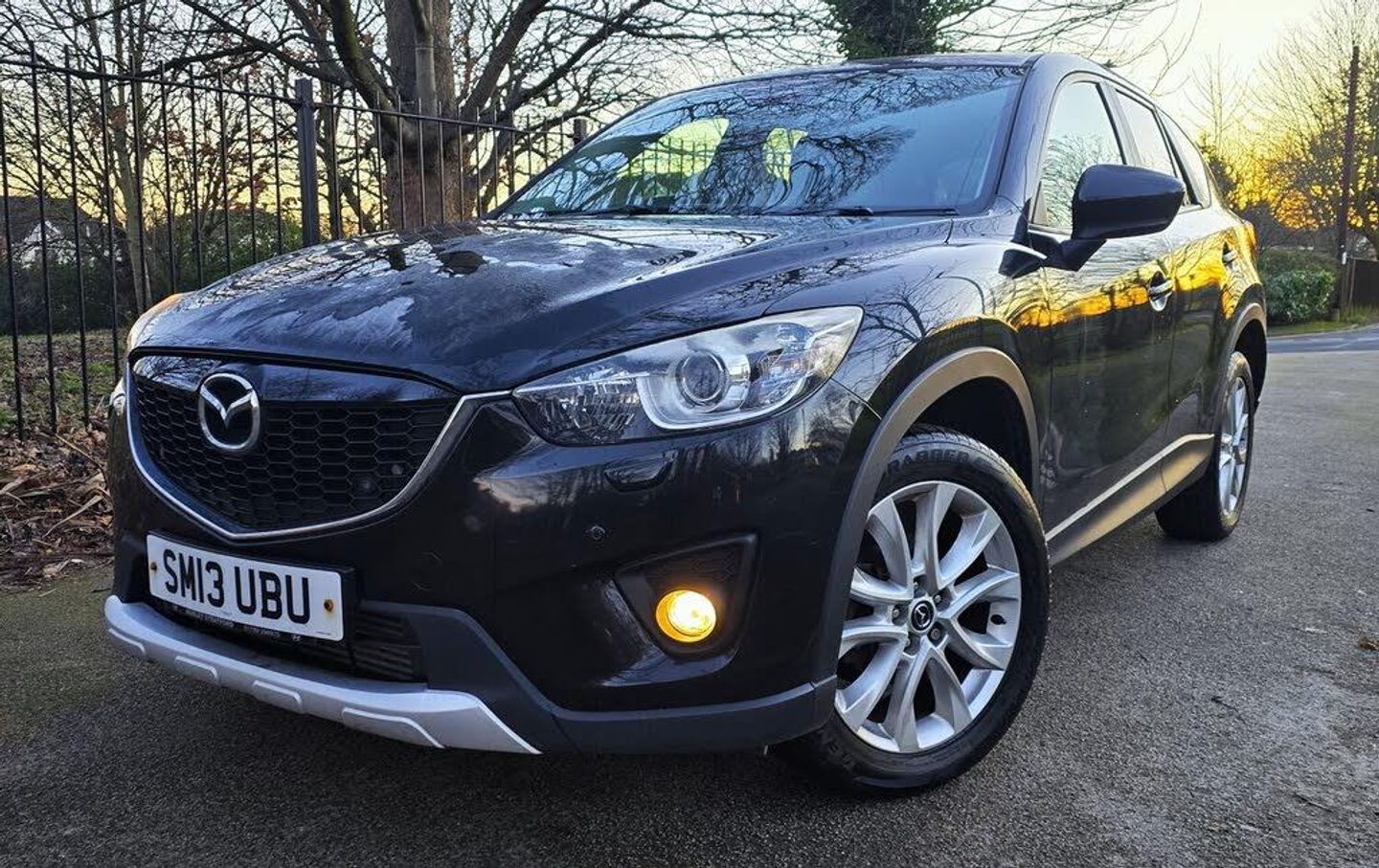 2013 13 REG MAZDA CX-5 SPORT NAV AUTOMATIC - STYLISH AND PRACTICAL SUV FINISHED IN DIAMOND METALLIC BLACK PAINTWORK + BEAUTIFUL CONTRASTING BLACK LEATHER INTERIOR WITH RED STITCHING + 129000 MILES WITH COMPREHENSIVE SERVICE HISTORY + BEAUTIFUL CONDITION THROUGHOUT + FOUR WHEEL DRIVE + 12 MONTHS MOT JUST ADDED INC NEW FRONT BRAKE DISCS AND PADS + 19 INCH ALLOYS + ELECTRIC HEATED MEMORY SEATS + ELECTRIC FOLDING MIRRORS + TOUCHSCREEN SAT NAV + REVERSING CAMERA + HEATED FRONT AND REAR WINDSCREENS + LANE ASSIST + CRUISE CONTROL + PRIVACY GLASS + MULTI FUNCTION STEERING WHEEL + HEATED SEATS + MULTIFUNCTION STEERING WHEEL + XENON HEADLIGHTS + MATRIX REAR LIGHTS + FRONT AND REAR PARKING SENSORS + ON BOARD COMPUTER + LUMBAR SUPPORT + ISOFIX + BLUETOOTH PHONE PREP + USB/AUX CONNECTION POINTS + CLIMATE CONTROL + HEATED MIRRORS + ELECTRONIC PARKING BRAKE + BEAUTIFUL CONDITION + FIRST TO SEE WILL BUY + NATIONWIDE DELIVERY AVAILABLE (ASK FOR A QUOTE) + 12 MONTHS MOT JUST PASSED + 3,6 OR 12 MONTHS WARRANTY AVAIALBLE + 6490++ Active lane keep assist, Anti-lock Brake System (ABS), Drive away door locking, Electronic Stability Program (ESP), LED 3rd brake light, Speed limiter, Tyre pressure monitor, Variable interval front wiper, Variable interval rear wiper, Bluetooth interface, OEM internet services, On Board Diagnostics, Remote vehicle diagnostics, Roof aerial, Automated High-beam assist, Electric boot/tailgate, Digital Instrument Cluster, Keyless go, Multifunction steering wheel, Navigation system, Service interval indicator, Speed limit display, Steering wheel audio controls, All wheel drive - automated, Comfort suspension, Hill hold, Power Assisted Steering, Rev counter, Selectable all wheel drive, Auxiliary input socket, Digital radio, Radio/CD, Touchscreen media control, Body coloured bumpers, Boot spoiler, Rear boot, Roof rails, Automatic headlight activation, Daytime running lights, LED headlights, Xenon headlights, Coat hook, Door sill protection, Rear armrest, Front head restraints, Rear interior 12V power outlet, Leather gear selector trim, Leather handbrake trim, Textile floor mats, Boot mat, Electric door mirrors, Heated door mirrors, Metallic Paint, Rear parking sensor, Rear park assist camera, Electric parking brake, Drivers airbag, Front side airbags, Manual child proof locks, Passenger airbag deactivation, Seatbelt pretensioners - Rear, Seatbelt pretensioners - Front, Comfort driver's seat, Comfort front passenger seat, Alarm, Remote central locking, Leather seat upholstery, 19'' Alloy wheels, Tyre repair kit, Privacy glass, Rain sensor, Rear electric windows, Rear wiper, Front electric windows, Windscreen shade band ++