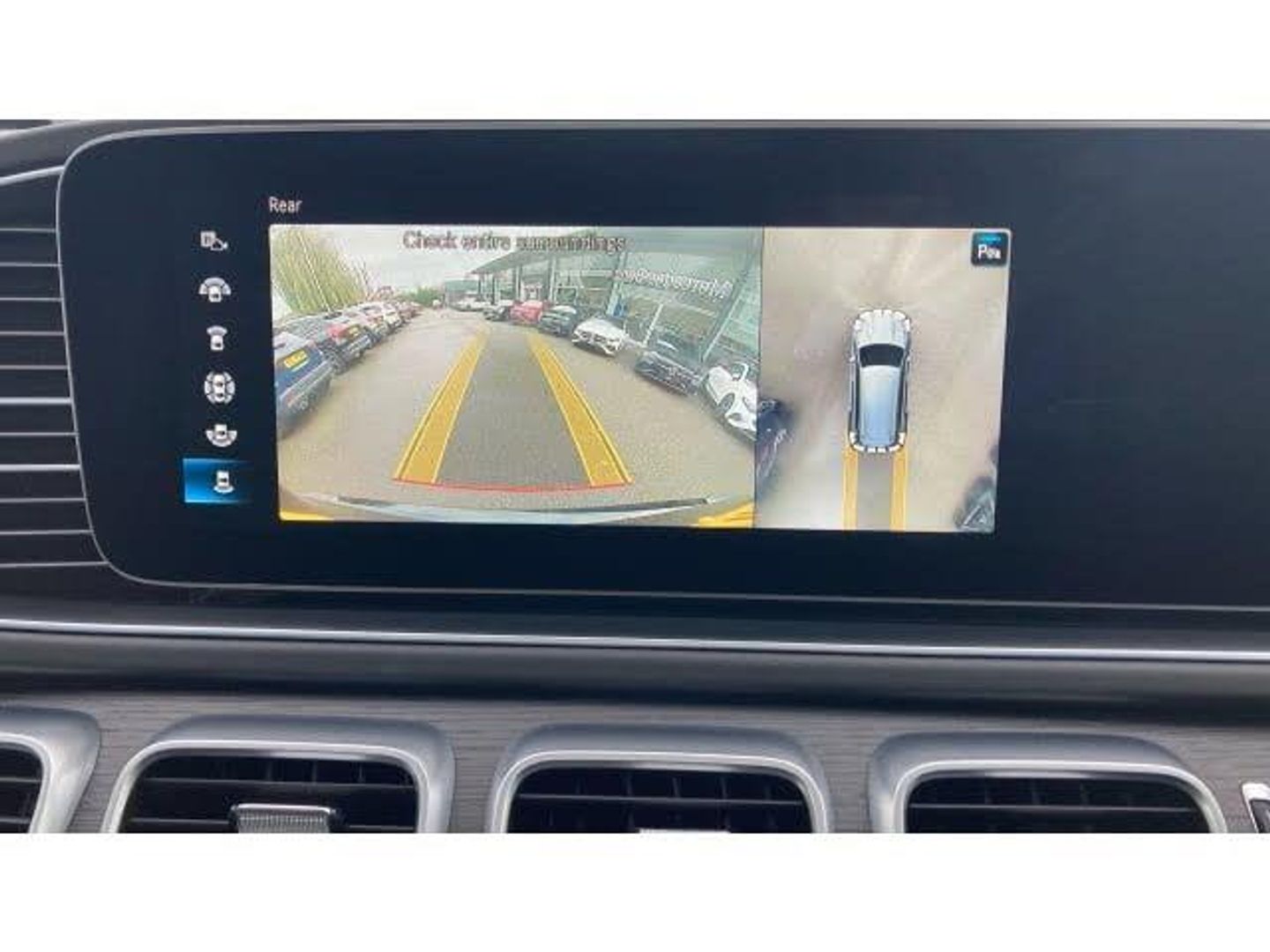 AMG floor mats with edging and embroidered AMG lettering, Rain sensor windscreen wipers, Magic vision control with adaptive heated windscreen wiper system, Heat insulating dark tinted privacy glass from the B-pillar backwards, Tinted glass all round with single layer safety glass, Rear wiper, ABS with Brake Assist, Electronic four wheel traction control, ESP with ASR, Electronic parking brake, Adaptive brake assist with hold function, hill start assist, priming and dry braking in the wet, Airmatic air suspension with adaptive damping system + level adjustment, Bluetooth connectivity, Direct steering, Crosswind Assist, DYNAMIC SELECT with a choice of driving modes (ECO, Comfort, Sport and Individual), Active parking assist with parktronic and 360 degree camera, Speedtronic cruise control, Soft closing aid for boot/doors, ECO start/stop function, Head up Display, Service indicator (ASSYST), Smartphone integration with Apple CarPlay and Android auto