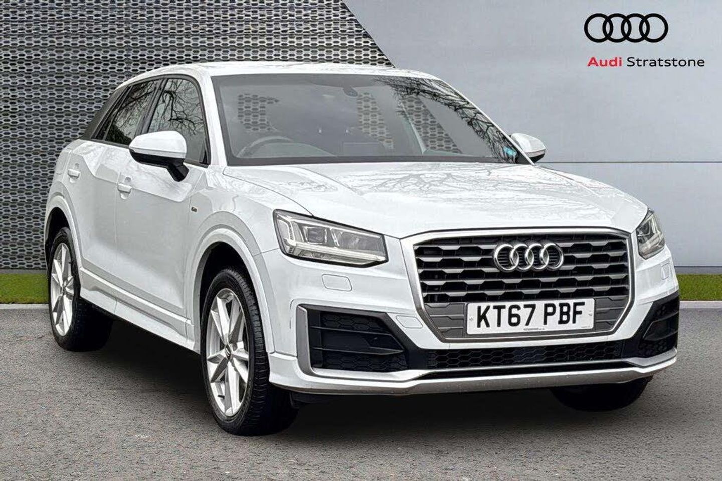 Cast alloy wheels, 5-spoke Y-style, 7J x 18 with 215/50 R18 tires (U42), Decorative inserts in Matte Brushed Aluminum (5TG), Emblems (6F7), Headlamp washer system (8X1), Headlight range control (8Q3), Headliner in Black fabric (6NQ), LED headlamps (8IT), LED rear combination lamps (8SP), Lighting package (QQ1), Pedals and foot rest in stainless steel (VF1), S line logo, exterior (0NB), Scuff plates with aluminum inserts and rhombus S emblem, illuminated (VT5), Sports bumpers (2JD), Sports seats in front (Q4H), "S line" exterior package (PQD), LED headlamps incl. dynamic turn signal in rear (PX2), Audi connect (EL3), Audi drive select (2H6), Audi pre sense front (6K2), Audi smartphone interface (UI2), Hold assist (UH2), ISOFIX child seat anchors and top tether for outer rear seats (3B4), MMI navigation (7UF)