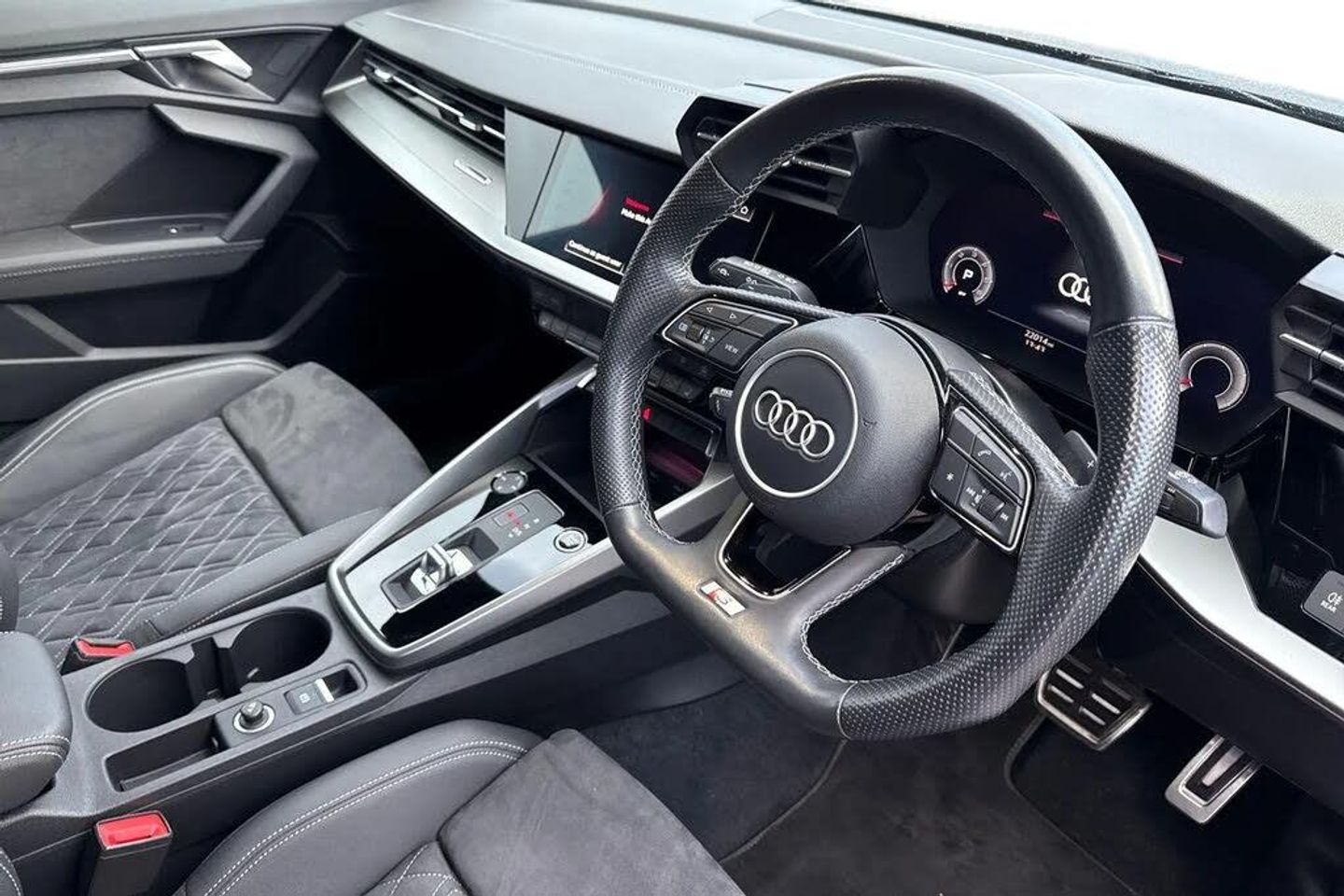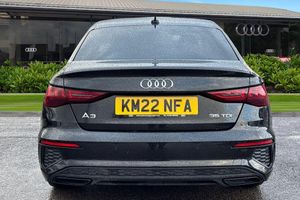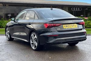 Alloys, Ambient Lighting, Heated Seats;Check out this Audi Approved A3 Saloon Edition 1 in Mythos Black with its 19" 5-arm trapezoid style alloy wheels which look superb out on the roads. The Matrix LED headlights with LED rear combination lights create that strong visibility in all weather conditions. This A3 comes equipped with some fantastic features, such as the heated front seats which are perfect for those cooler mornings. The 4-way lumbar support is great for maximising comfort behind the wheel. Further enhancing the driving experience are electrically adjustable front seats with a memory function for the driver and a light and rain sensor that automatically controls the headlights. The dual-zone electronic climate control allows the driver and front passenger to adjust to their prefered climate on any journey. The rear parking sensors assist greatly whilst maneuvering those tighter spaces. DAB/FM radio is fitted to this vehicle which gives a larger variety of stations for all passengers and driver to listen to and enjoy on any journey in this vehicle. The interior is fitted with the gorgeous seats throughout creating a comfortable look and feel to this vehicles cabin. ISOFIX is fitted to the outer rear seats of this vehicle which allows this vehicle to carry children safely and creates a family friendly environment. The multimedia interface allows you to access different media, such as Apple Carplay and Android Auto, allowing you to use apps like Spotify, Google Maps, Apple Music and other apps also...