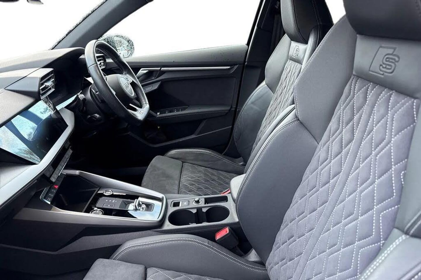 19" x 8.0J '5-arm trapezoid' design alloy wheels in titanium matt grey - diamond cut finish with 235/35 R19 tyres,Dinamica microfibre/mono.pur 550 artificial leather combination with S embossing,Electrically adjustable front seats - driver's seat and electric mirrors with memory function,Audi Matrix LED headlights with LED rear lights - dynamic front and rear indicators - and headlight cleaning system,Extended Ambient lighting Pack,Comfort and Sound pack,Audi beam,Sports suspension,Disc brakes in front,3-spoke leather multi-function flat bottom steering wheel and shift paddles,Type sign and company logo,Electrically adjustable front seats - driver's seat with memory function,Heated front seats,Black styling pack,Exterior mirrors with memory feature - auto-dimming - power-folding/adjustable/heated,4-way lumbar support for the front seats,LED headlights with daytime running lights - and dynamic rear indicators,LED rear combination lamp - variable lighting functions,Headlight washer system,Audi virtual cockpit Plus,Equipment options subset for Great Britain