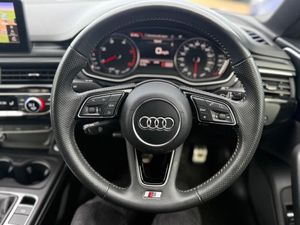 Leather-Alcantara - Sport Seats with S Embossed Logo - Black, Door Mirrors - Heated-Electrically Adjustable-Folding, Door Mirrors - Folding, Inlays - Piano Finish - Black, 18in Alloy Wheels - 5-Twin-Spoke Star Design, 2 x SDXC Card Readers, 2 x USB Charging Ports and 1 x AUX-IN, 4-Way Electric Lumbar Support, 6-Airbag System, Air Inlets - Horizontal Inlay in Matt Aluminium, Anti Theft Locking Wheel Bolts, Anti-Theft Alarm, Audi Connect Infotainment Services - 3 Month Trial, Audi Connect Safety and Service - e-call, Audi Drive Select, Audi Smartphone Interface, Audi Sound System, Auto-Dimming Rear-View Mirror, Bluetooth Interface, Body Coloured Door Mirrors, CD Drive, Chrome-Plated Exhaust Trim, Cloth Headlining in Black, Contrast Stitching on Seats - Steering Wheel and Gear Lever Gaiter, Cruise Control with Speed Limiter, DAB Digital Radio Reception, Deluxe 3-Zone Electronic Climate Control, Door Mirrors - Electrically Adjustable and Heated with Built-in LED Indicators, Driver Information System - 7in Colour Display, Driver and Front Passenger Airbag with Front Passenger Airbag Deactivation, ESC - Electronic Stabilisation Control inc ABS - ASR and EDL, Electric Windows - Front, Electrically Adjustable Front Seats, Electromechanical Parking Brake, Electromechanical Power Steering, First Aid Kit and Warning Triangle, Front Centre Armrest, Front and Rear Floor Mats, Gear Lever Knob in Black Perforated Leather, Heat-Insulating Glass - Side and Rear Windows, Heated Front Seats, High Gloss Package, High Multi-Function 3-Spoke Leather Steering Wheel, Honeycomb Side Air Inlet Grille in Titan Black, ISOFIX Child Seat Mounting and Top Tether, Illuminated Door Sill Trims with S Logo, Inlays - Matt Brushed Aluminium, Keyless Go, LED Headlights with LED Rear Lights and Dynamic Rear Indicators, LED Interior Light Package, Light and Rain Sensor, Luggage Compartment Mat, MMI Navigation - SD Card Based, MMI Radio Plus with 7in Colour MMI Screen, Model and Engine Technology Badges at Rear, Multi Collision Brake Assist, Non-Smoking Package, Parking System Plus, Pedals and Footrest - Stainless Steel, Pop-Up Bonnet for Pedestrian Protection, Power Operated Tailgate, Pre-Sense City, Radiator Grille - Twilight Grey Matt with Inlays in Matt Aluminium, Rear Diffuser in Twilight Grey Matt with Honeycomb Grille, Rear Grille - Black Grained, Remote Central Locking, S Line Badges on Front Wings, S Line Front and Rear Bumpers, S line Side Skirts in Black, S line Sports Package, Seat Belt Monitoring, Space Saver Spare Wheel, Split-Folding 2-Seater Rear Seat Bench in 3 Parts - 40-20-40 with Rear Centre Armrest, Sport Suspension, Sun Visors including Vanity Mirrors, Tool Kit and Car Jack, Tyre Pressure Warning Light, Variable Restraint System, Voice Control System, Windscreen with Acoustic Glazing