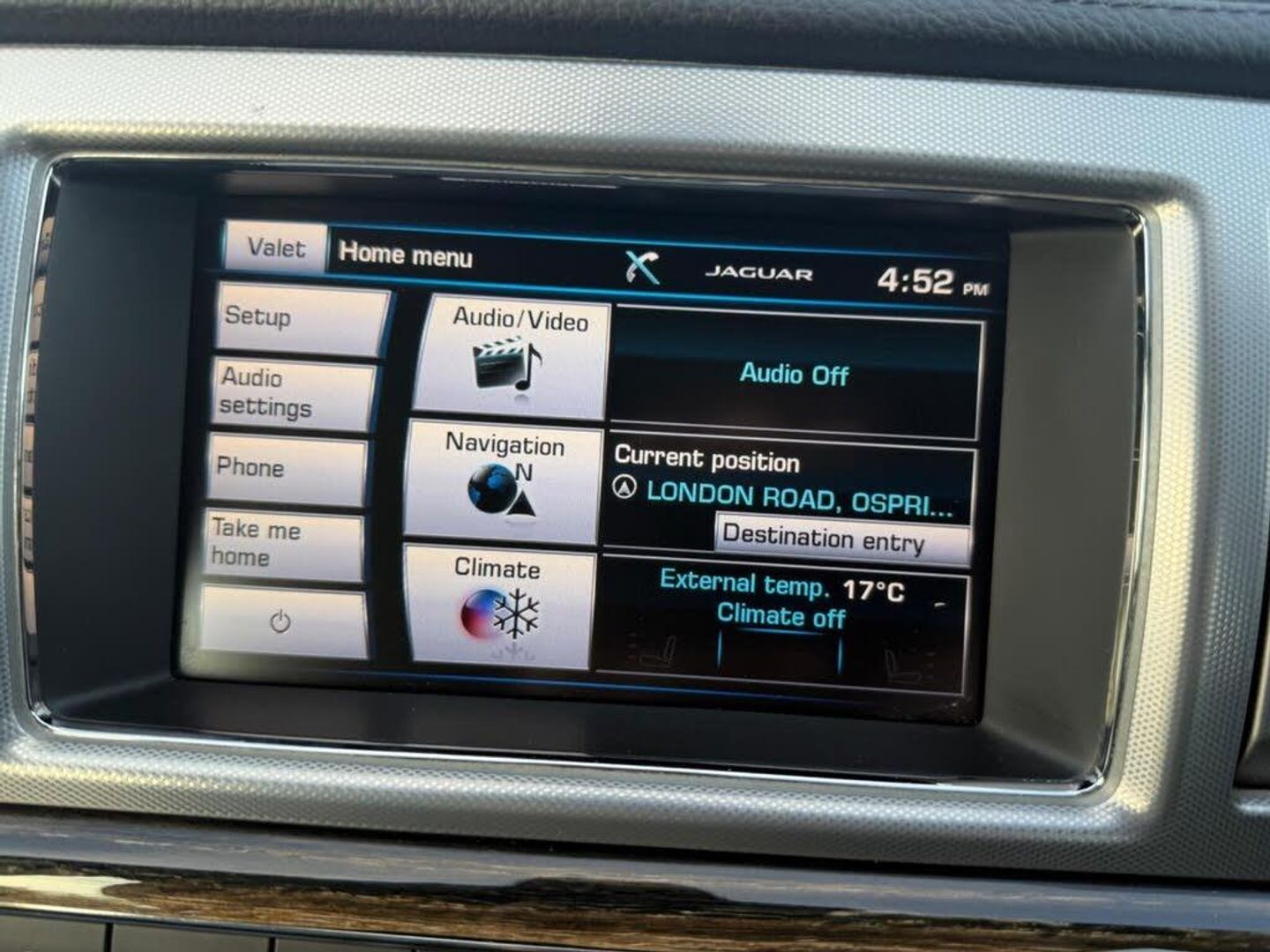 Spare Wheel - 18in Alloy Space Saver - Non-Supercharged Derivatives, Parking Aid - Front with Rear Camera, Carpet Mat Set - Font and Rear, 3.5mm Stereo Auxiliary Input Socket, 7in Colour Touch Screen Display, ABS - Anti-locking Braking System, ASL - Automatic Speed Limiter, Acoustic Layer Windshield, Airbags - Driver, Airbags - Front Side, Airbags - Passenger, Airbags - Side Curtain, Approach Illumination - Automatic via Remote, Audio Equipment - Jaguar Sound System 250W-Radio-CD-MP3, Automatic Headlight On, Automatic Headlight Washers, Auxiliary Heater, Auxiliary Power Point in Rear, Bluetooth Audio Streaming, Bluetooth Telephone Connectivity, Brake Pad Wear Indicator, Bright Knurled Aluminium, Chrome Grille with Chrome Surround, Cruise Control, DAB Radio Receiver, DLO - Daylight Opening - Chrome - Window Surrounds, Door Mirrors - Electric Adjustment-Heated with Side Repeaters, Driver and Front Passenger Sun Visors with Illuminated Vanity Mirrors, Driver and Passenger Electric Seat Height Adjustment, Drivers Foot Rest, Dual Zone Automatic Climate Control, EBA - Emergency Brake Assist, EBD - Electronic Brake-Force Distribution, EPB - Electronic Parking Brake - Drive Away Release, Electric Windows, Front Centre Console with Storage Compartment and Twin Cupholders, Front Courtesy Footwell Lights, Front Media Interface, Front Seats - Whiplash Reduction System, Head Restraint - Rear Centre, Headlights - Automatic Levelling, Headlights - LED Signature Lights with Daytime Running, Headlights - Xenon, Headlining - Morzine - Dove Grey, Heated Rear Window with Timer, ISOFIX Anchor Points for Rear Child Seat, Interior Mood Lighting - Phosphor Blue Halo Illumination, Jaguar Smart Key System with Keyless Start, Jaguar Tyre Repair System, JaguarDrive Control with Sport and Winter Mode, JaguarSense - Overhead Light Console, LED Tail Lights, Optimal Shift Indicator, Pedestrian Contact Sensing and Deployable Bonnet, Rain Sensing Windscreen Wipers, Rear Coat Hooks, Rear Parking Aid with Touch Screen Visual Indicator, Remote Control Boot Release, Remote Control Central Locking with Dead Locking and Drive-Away Locking, Remote Controls for Audio System, Remote Power Amplifier, Satellite Navigation, Satin Rosewood Veneer, Seats - Electric Driver-Passenger Adjustment - 6x6 Way, Seats - Front - Back Map Pockets, Seats - Rear Centre Armrest, Security System, Servotronic Steering, Speakers x10, Steering Column - Electric Adjustment for Height and Reach with Entry and Exit Tilt-Away, Steering Wheel - 3-Spoke-Leather-Shift Paddles, TFT Message Centre, Tailored Instrument Panel - Bond Grain Stitched and Door Top Rolls, Trac DSC - Dynamic Stability Control with 3 Setting Levels, Traction Control, Trip Computer, Twin Cupholders in Rear Seat Centre Armrest, Tyre Pressure Monitoring System