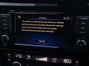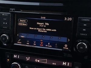 Advanced drive assist display 5'' TFT coloured screen, Android Auto, Apple CarPlay preparation, Bluetooth connectivity, Front parking sensors, Nissan connect evo 7" touchscreen navigation and entertainment system, Lane departure warning system, Voice control system, Tomtom connected services, Stop/start system, Smartphone integration, Rear view camera, Rear parking sensors, Normal or sport selectable steering, Nissan chassis control (intelligent ride control, intelligent trace control, intelligent engine brake), Cruise control + speed limiter, Steering wheel mounted audio controls, DAB Digital radio, Daytime running lights dip function when turn signal applied, Ambient lighting in centre console, 17" Alloy wheels