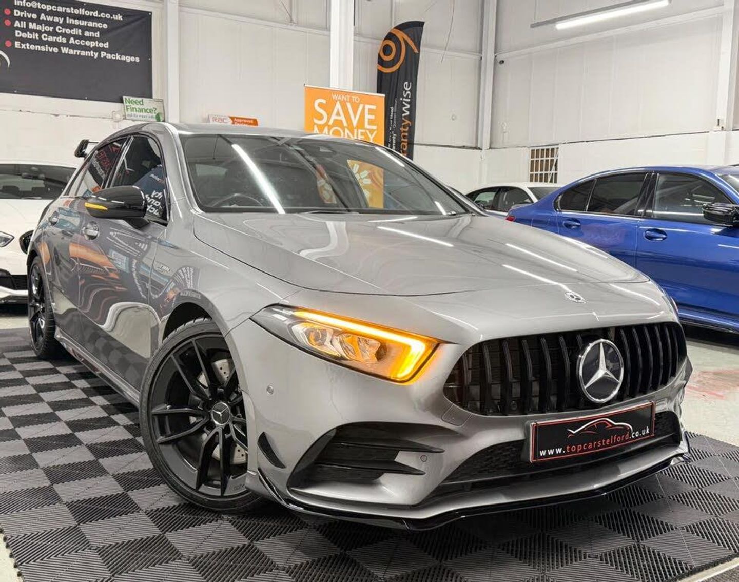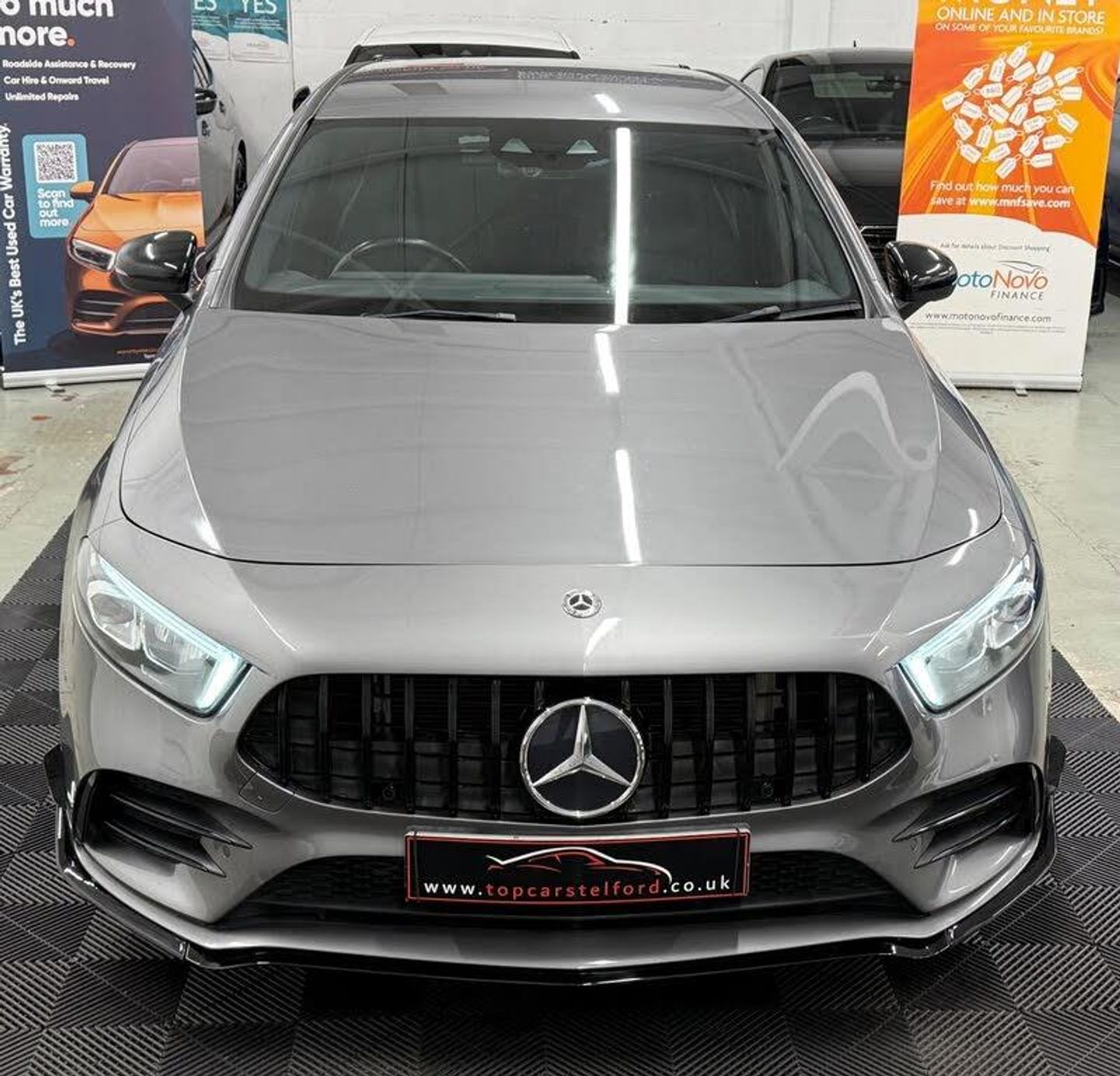 JUST ARRIVED AWAITING PREPARATION TOP CARS TELFORD ARE THRILLED TO OFFER FOR SALE THIS AMAZING MERCEDES A CLASS AMG A35 2.0 4MATIC PREMIUM EDITION FINISHED IN BEAUTIFUL MOUNTAIN GREY, MORE A35 AVAILABLE ONLINE,IN-HOUSE UPGRADES INCLUDING A45 LOOKS AEROKIT STYLING PLUS HUGE FACTORY FITTED EXTRAS, PLEASE CALL TO REGISTER YOUR INTREST OR RESERVE ONLINE £99 DEPOSIT FULLY REFUNDABLE SUBJECT TO VIEW IMMACULATE EXAMPLE, LOW MILEAGE, SERVICE HISTORY 3 SERVICES IN TOTAL LONG MOT, PRE DELIVERY INSPECTION INCLUDING NEW SERVICE PRIOR TO SALE FOR TOTAL PEACE OF MIND, HIGHLY POPULAR VERY STYLISH AND SLEEK, LUXARY AT ITS BEST EVERYTHING YOU CAN ASK FOR, %100 TICKS ALL THE BOXES UPGRADES INCLUDE A45s Styling SATNAV REV CAM, HEATED SEATS HIGHLY POPULAR AMBIENT LIGHTING AMG FULL LEATHER SPORT SEATS, UPGRADED 19IN GLOSS BLACK AMG ALLOYS BURMESTER SOUND SYSTEM AND MUCH MORE,HPI CLEAR, 12 MONTH WARRANTY AVAILABLE FROM £399, £0 DEPOSIT LOW RATE FINANCE BUY NOW PAY LATER OR DRIVE AWAY TODAY FROM £70 P/ WEEK FINANCE SPECIALIST HP/PCP AVAILABLE FROM AS LITHLE AS 7.9%APR , CLICK AND COLLECT OR BUY ONLINE NATIONWIDE DELIVERY T&C APPLY OR DRIVE AWAY IN ONE HOUR, TRULY IN OUTSTANDING CONDITION WELL MAINTAINED CREDIT TO ITS PREVIOUS OWNER VIEWING ESSENTIAL, STUNNING EYE CATCHING LOOKS HIGHLY POPULAR AND ATTRACTIVE, DRIVE AROUND IN PURE COMFORT AND STYLE, ALL OF OUR CARS ARE SPECIALLY SOURCED AND WE STRIVE TO BE THE MOST COMPETITIVE AROUND WHEN COMPARED TO LIKE TO LIKE VEHICLES, COMES COMPLETE WITH 2 KEYS, Truly a Unique Opportunity At Exceptional Value At TopCarsTelford We Pride Ourselves in Only Selling Top Quality Cars That Are Fully inspected HPI Checked with report providing you with complete peace of mind, viewing highly recommended you will not be disappointed, EXTENSIVE WARRANTY PACKAGES,BUILD YOUR OWN FINANCE PACKAGE APPLY DIRECTLY ON OUR WEBSITE, ALL MAJOR DEBIT/CREDIT CARDS ACCEPTED Please call to arrange test-drive indoor showroom, viewing available by appointment for any online enquires including our 5 Star verified customer reviews please visit our website WWW.TOPCARSTELFORD.CO.UK-A45AEROKIT+19+NAV+REVCAM+MORE-COMPETITIVELY PRICED TCT LTD DELIVERING MAIN DEALER STANDARDS AT GUARANTEED LOW PRICES