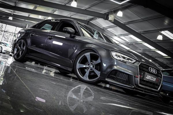 *CLICK - BUY - COLLECT* FINANCE AVAILABLE! HPI CLEAR! Junction 17 Cars now have to offer a stunning Audi A3 1.5 TFSI CoD S line S Tronic Euro 6 (s/s) 4dr.. Audi Main Dealer Service History.. Finished in Daytona Grey Pearl.. Full Exterior Styling Lip Kit.. Quad Exhaust System.. Lowering Springs.. Upgraded 19'' Alloys.. Navigation.. Rear Parking Sensors.. Audi Smartphone Interface.. and more.*ANY THIRD PARTY VEHICLE INSPECTIONS ARE WELCOME* *WE WILL BEAT ANY CAR VALUATION SITE FOR YOUR PART EXCHANGE* Junction 17 Cars (Runner Up at the Motor Trader Independent Dealer Awards 2019 nominated for Car Supermarket of the Year Award) is a unique family run business with over £7 millions worth of stock currently split over our purpose-built showroom in Yaxley, Peterborough and our new showrooms in Grantham and Rugby. Our vehicles can also be reserved with a £99 refundable holding deposit to ensure that they are professionally prepared/valeted for your viewing pleasure. Competitive HP and PCP packages are available with decision/approval available within 15 minutes. We also offer comprehensive warranties over a variety of different terms as well as Williams Ceramic Coating, Flexfuel Engine Carbon Cleaning and more. **NATIONWIDE DELIVERY AVAILABLE** Payment : maximum £500 card payment balance by bank transfer-LIP KIT, EXHAUST SYSTEM-CAN BE MOVED TO GRANTHAM /PETERBOROUGH !! max £500card payment balance by bank transfer