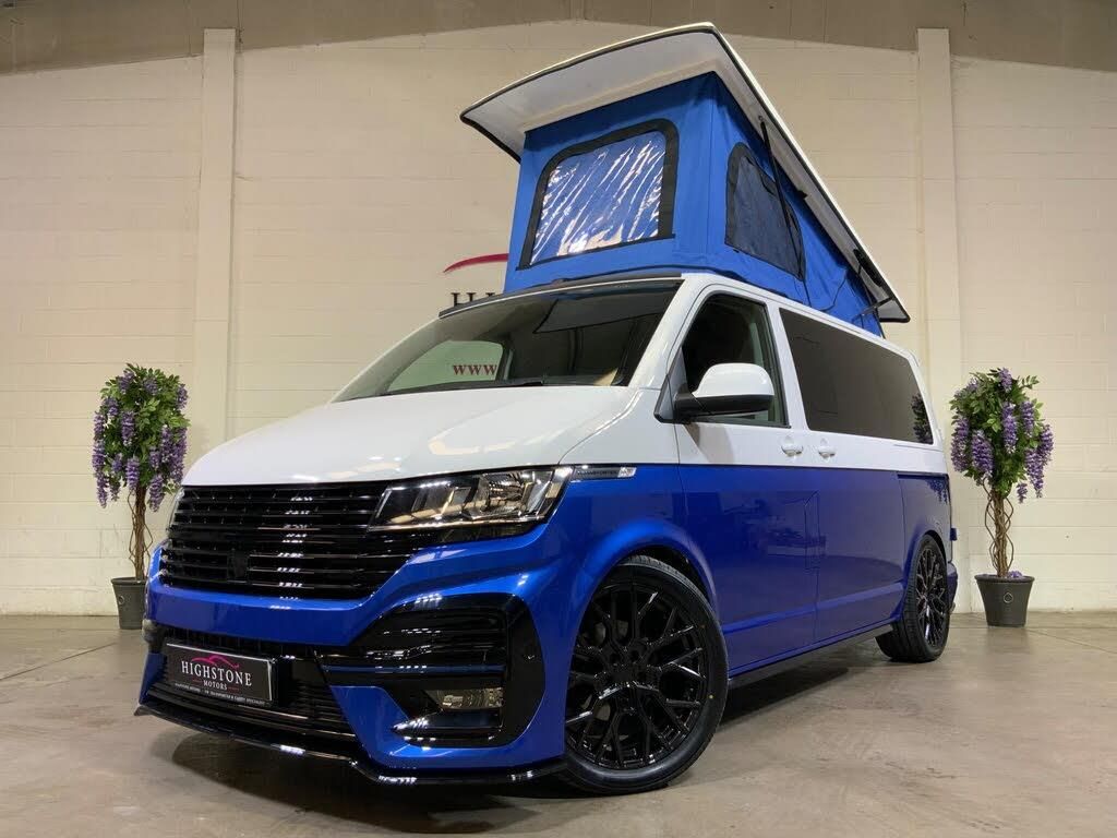HERE WE HAVE A BRAND NEW CONVERSION VOLKSWAGEN TRANSPORTER T6.1 SPORTLINE EDITION R,FINISHED IN RAVENNA BLUE OVER CANDY WHITE.WE CAN DELIVER THIS VAN ANYWHERE MAINLAND UK.OR VISIT OUR INDOOR SHOWROOM WITH OVER 30 VW VANS ON STOCK.-20+ROCK N ROLL BED+POPTOP A/C-Visit our indoor showroom for the lowest prices in the uk and high level of service