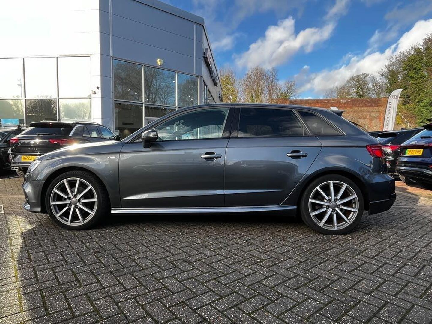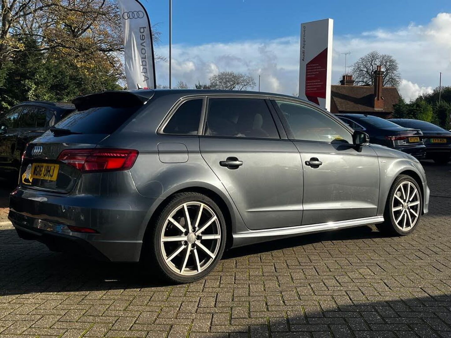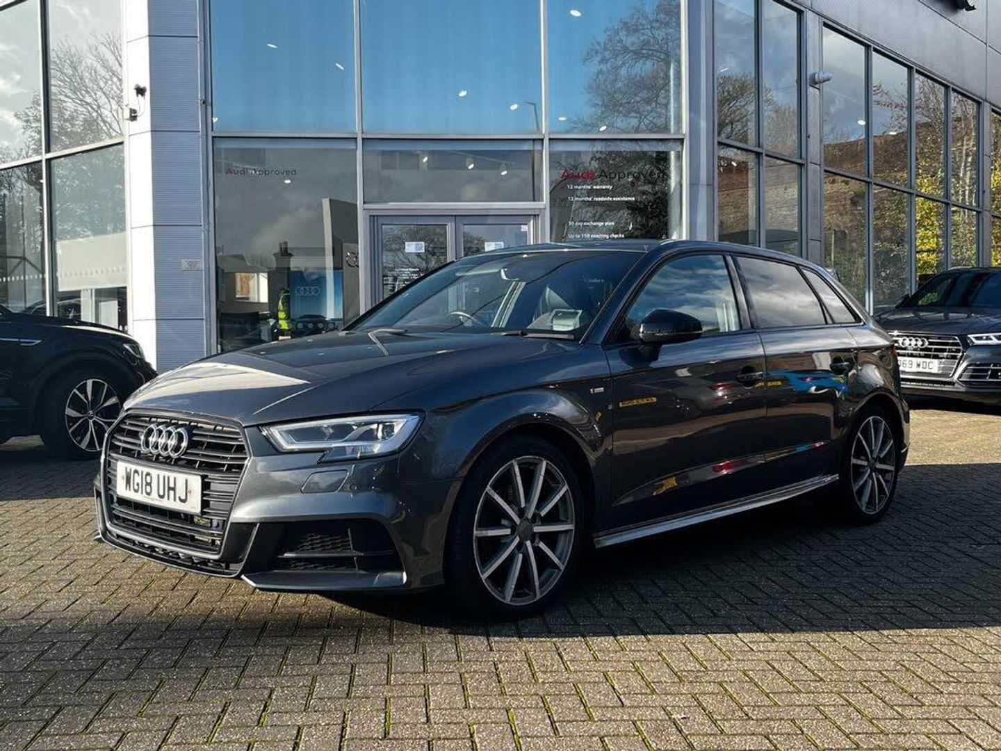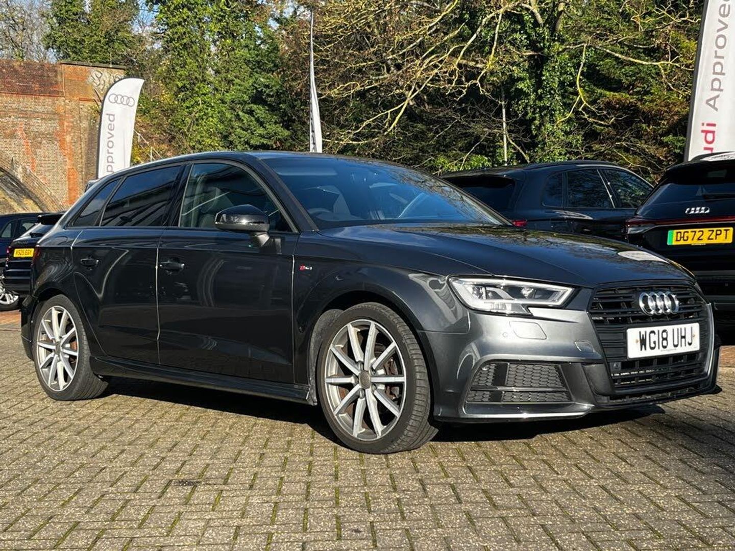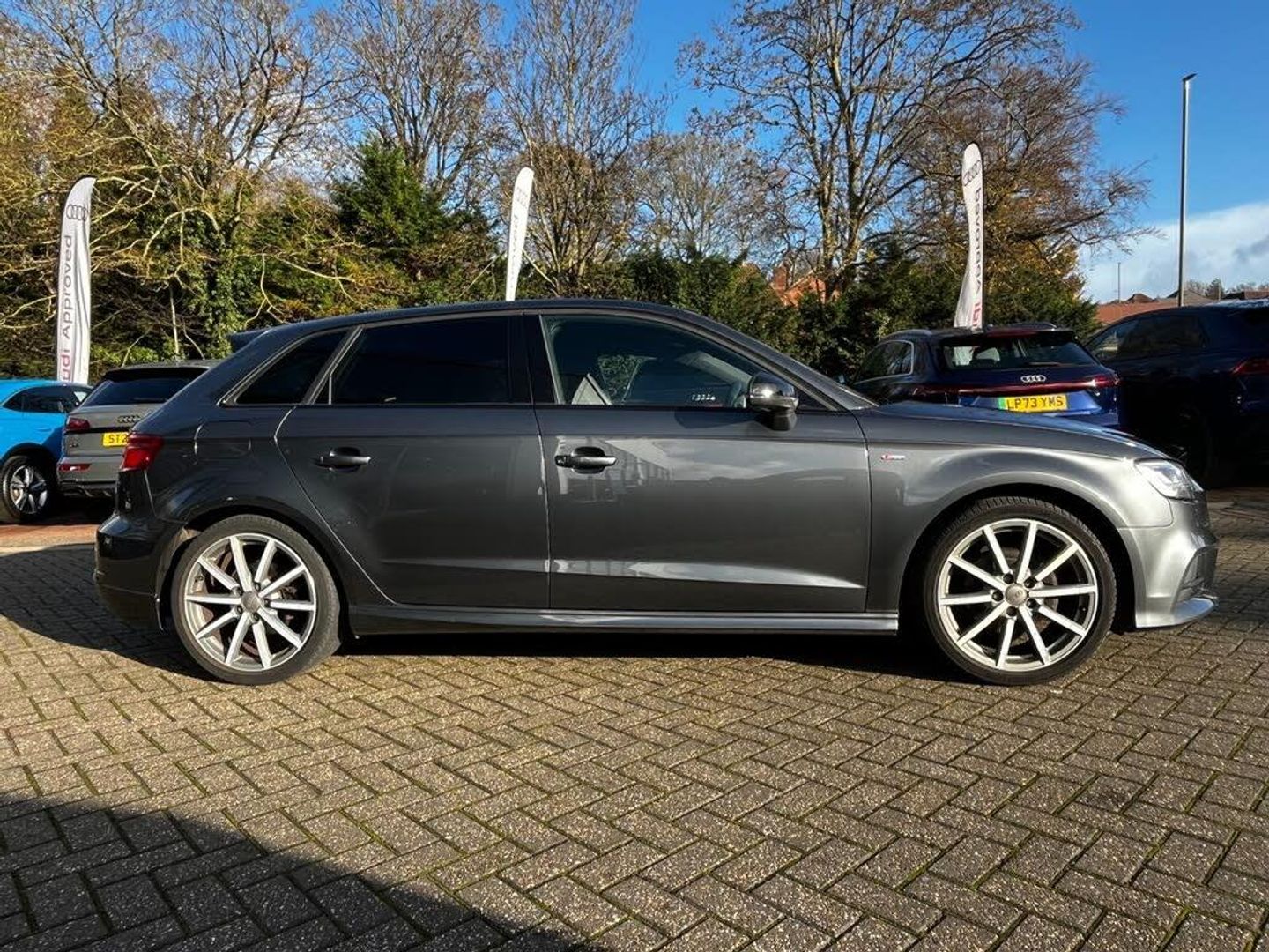 Operating permit, alteration, 18" x 7.5J '10-spoke' design alloy wheels in matt titanium look, diamond cut finish with 225/40 R18 tyres, Sequence cloth/leather with S embossed logo, S line design body styling, LED headlights with LED rear lights and dynamic rear indicators, Storage Pack, LED Interior Lighting Pack, Front Sport seats, Hill hold assist, Pedals in stainless steel, Illuminated door sill trims with S logo, Privacy glass, Comfort and Sound Pack, S line Pack, S line logo, Space-saver spare wheel, S line bumpers, Flat-bottomed 3-spoke leather multi-function Sport steering wheel, Sport suspension, Heated front seats, Windscreen sunband, Black Styling Pack, S line roof spoiler, Matt brushed aluminium, Black door mirrors, S emblem for the steering wheel, Cloth headlining - black, Audi Parking System Plus, LED headlights, Light and rain sensors, Automatic headlight adjustment, LED rear lights and dynamic rear indicators, LED headlights with LED rear lights and dynamic rear indicators, Bang & Olufsen Sound System, Equipment options subset for Great Britain