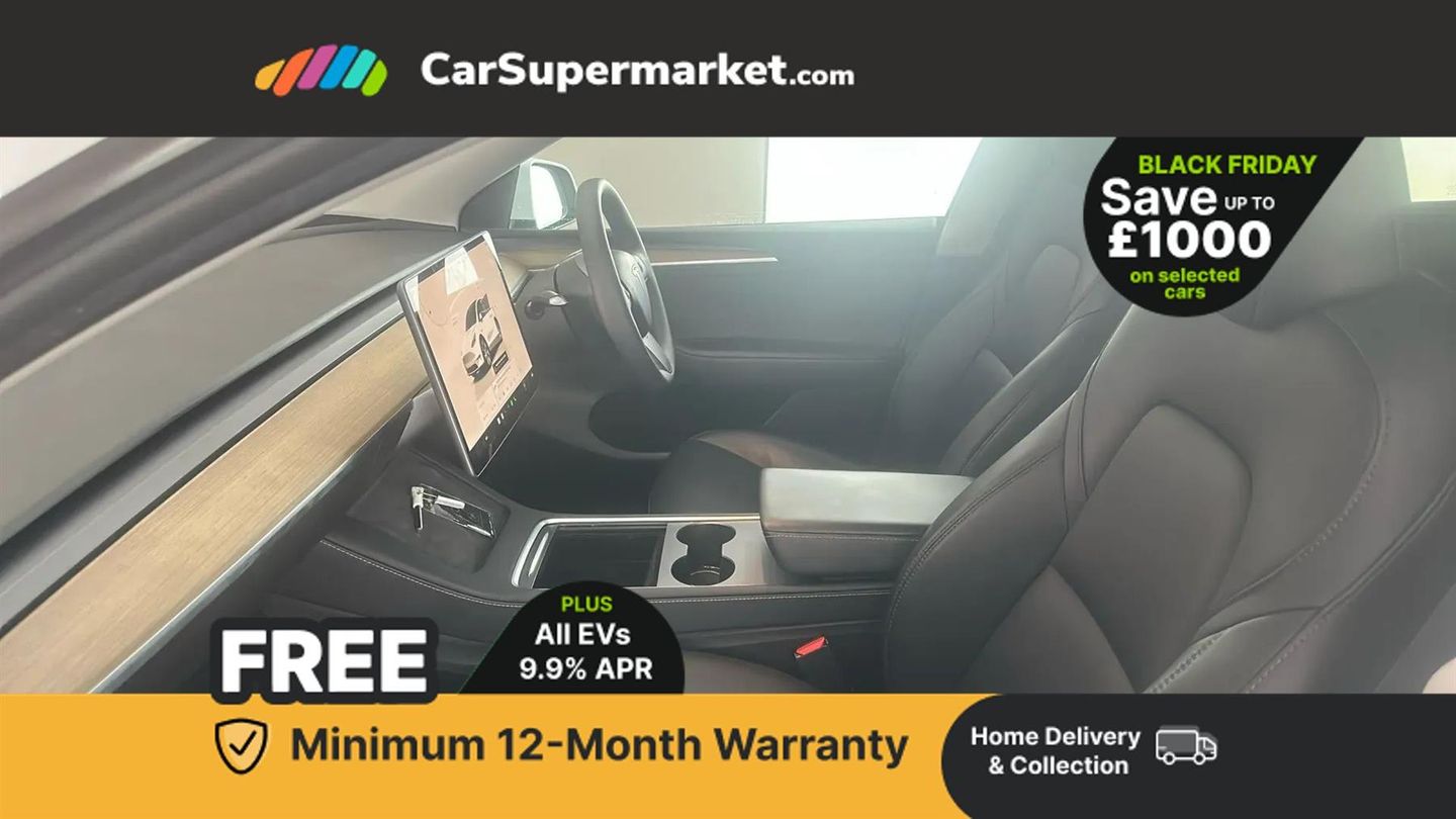 15" Touchscreen display,Acoustic seat-belt warning,Blind spot monitoring,Bluetooth hands free phone with voice control system,Custom driver profiles,Electric assisted front and rear doors,Emergency call service,Front and rear parking sensors,Homelink (programmable garage door opener),Mobile App interface,Navigation system,Power lift tailgate,Reversing camera,Service indicator,Software updates over WiFi,Speed limit recognition,Speed sensitive power steering,11 kW AC onboard charger,CCS charging connector,Dual motor AWD wheel drive,Tesla mobile connector + domestic adapter (British 3-pin),Type 2 connector,4 USB C ports,DAB Digital radio,Music and media via bluetooth,Premium audio 14 speakers, 1 subwoofer, 2 amps and full immersive sound,3rd brake light,Auto headlights,Auto high beam,Automatic headlights and wipers,Daytime running lights,Electric windows with one touch open,LED fog lights,LED Headlights,LED tail lights,Power folding, auto dimming and heated wing mirrors,Rain sensitive windscreen wipers,Rear side wing doors,Rear view mirror auto dimming,Rear window defroster,12 way Power adjustable driver seat with lumbar support,2 fixed rear headrests,3 seat bench in 2nd row,Auto dual-zone climate control system,Center console with storage, 2 cup holders and armrest,Driver and front passenger sunvisors with illuminated vanity mirrors,Electronic fold flat seat release 40/20/40,Expansive glass roof with ultraviolet and infrared protection,Front head restraints,Glovebox, lockable with illumination,Heated front seats,Heated rear seats,Heated steering wheel,HEPA filtration system - "Bioweapon defence mode",Interior ambient lighting,Map and reading lights,Power adjustable steering wheel,Rear centre armrest with 2 cup holders,Single front passenger seat,Type 2 cable,3 point front seatbelts with pre-tensioners,3x3 point rear seatbelts,ABS + traction control,Active safety technologies including collision avoidance and automatic emergency braking,Collision warning,Driver/Front Passenger airbags,EBD + Brake Assist,Electronic parking brake,Electronic stability control,Emergency braking,Rear door child safety locks,Side curtain airbags,Tyre pressure monitoring system,Anti theft alarm,Dashcam,Keyless driving and keyless entry,Wireless phone charging,Premium open pore wood decor