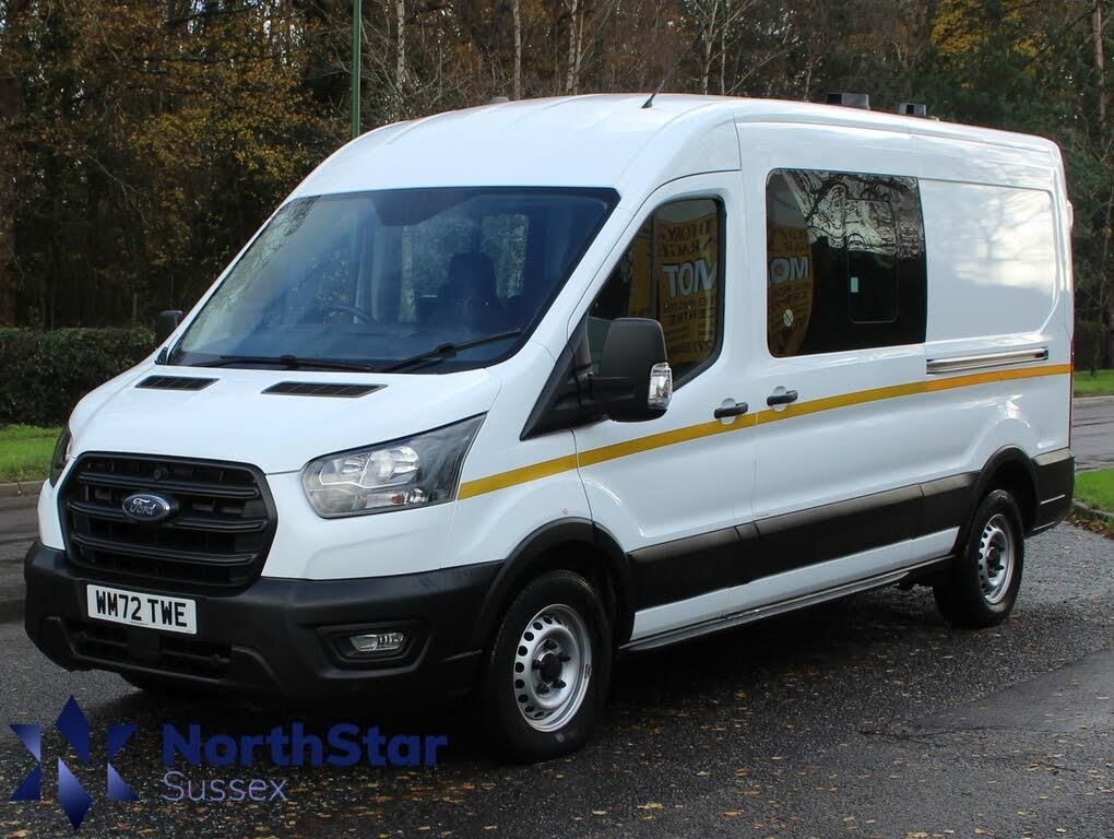 For sale is a practically brand new 2023 Ford Transit 2.0 350 EcoBlue Leader Crew WELFARE Van MESSING UNIT with TOILET Double Cab with just 29100 miles on the clock. This powerful diesel Combi Van comes with 6 seats and 6 doors, Toilet and all ancilaries making it the perfect vehicle for transporting a crew and their equipment. With a gross weight of 3500kg, it can handle heavy loads with ease. The double cab design provides ample space for both passengers and cargo, making it a versatile option for commercial use. This Transit is equipped with the Basics Pack 2, including parking sensors for added safety. The exterior features 16in steel wheels and black dual manual signal mirrors, with a front body colour partial bumper. In a timeless frozen white finish, this van is ready to take on any job with style and efficiency., OPEN 7 DAYS A WEEK - A SELECTION OF UP TO 200 CARS AND VANS AVAILABLE. Click on dealer 'VISIT WEBSITE' link for many more large photographs of this car. We are a West Sussex Trading Standards Approved 'Buy with Confidence Dealership'.